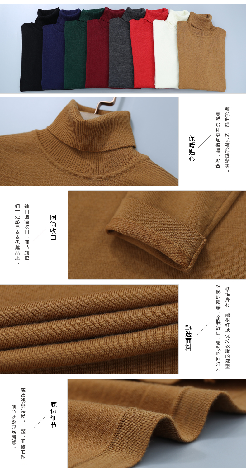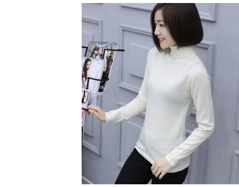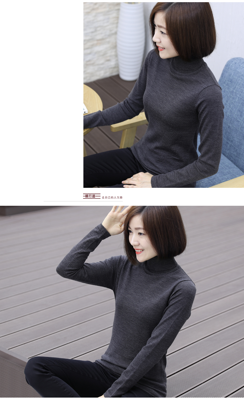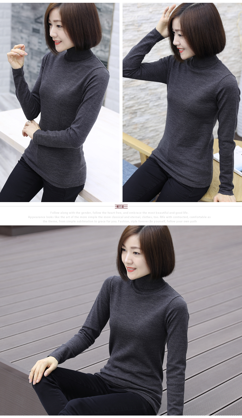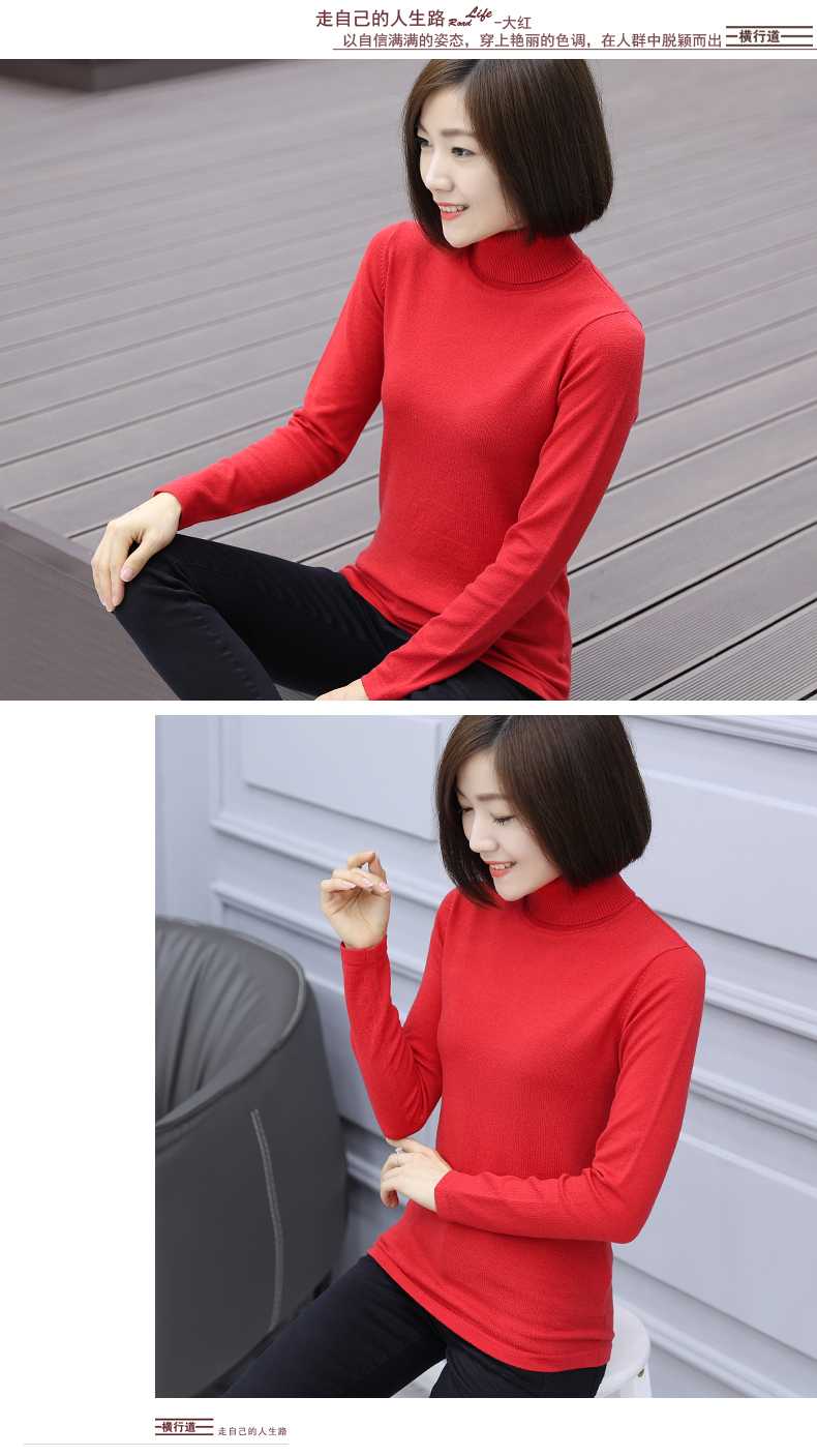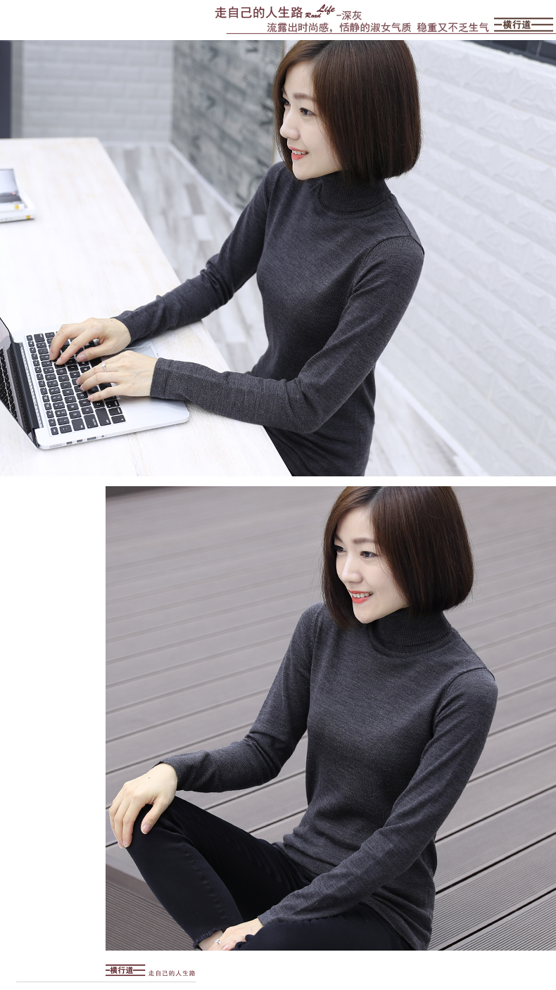2019秋裝羊毛衫針織衫高領打底衫寬松套頭毛衣純色長袖上衣服女裝1入