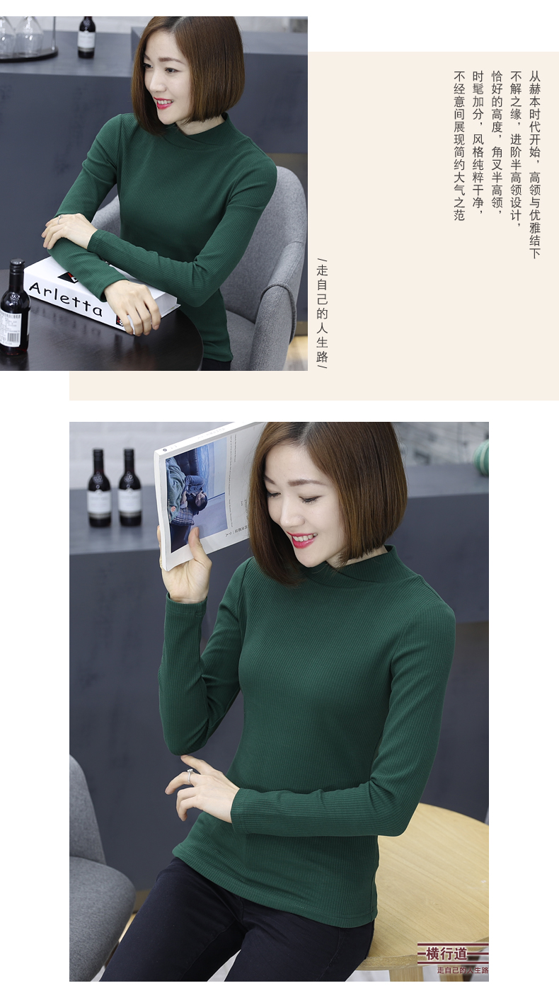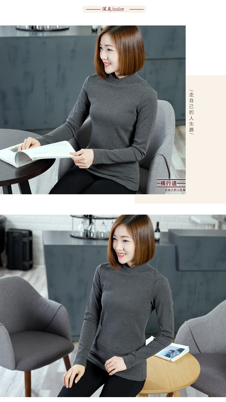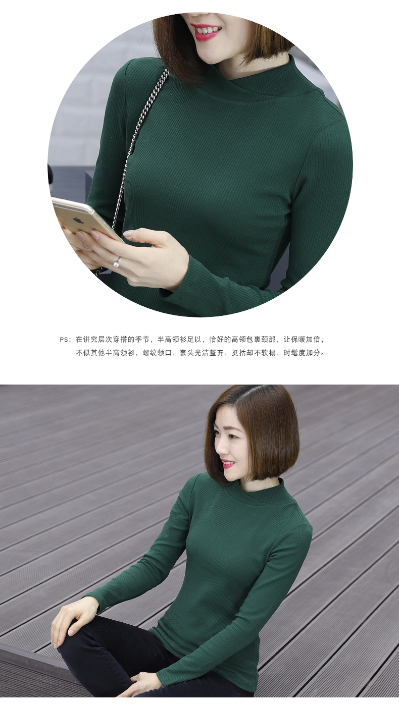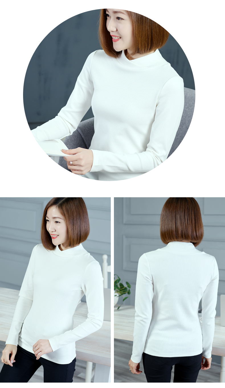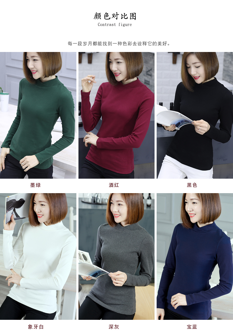 2019秋冬裝新款大碼女裝秋裝半高領棉打底衫女士長袖套頭上衣T恤1入