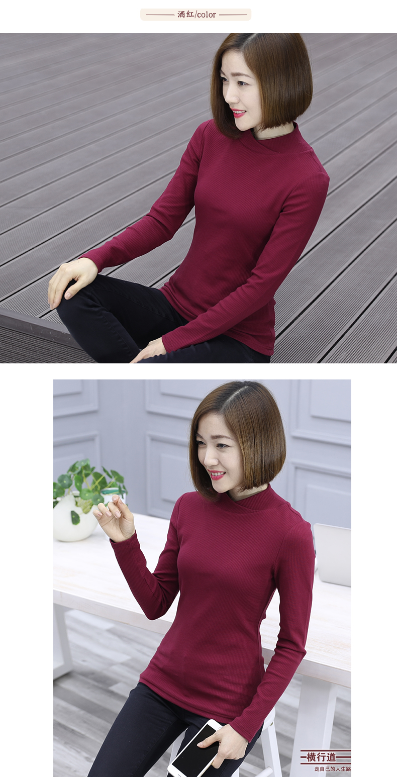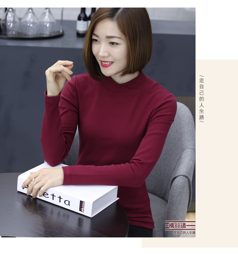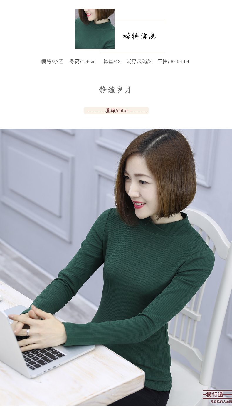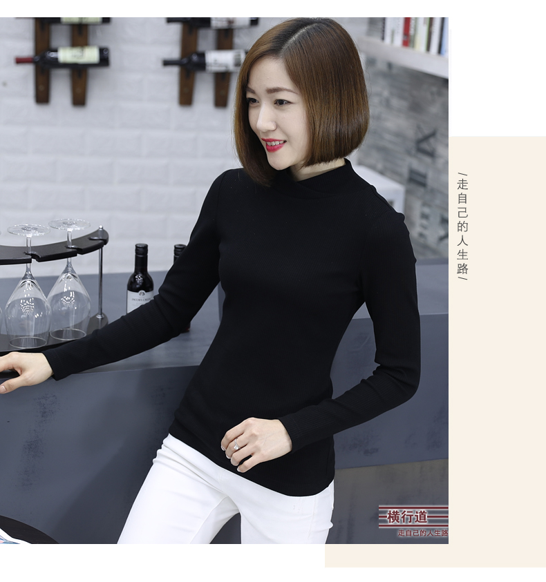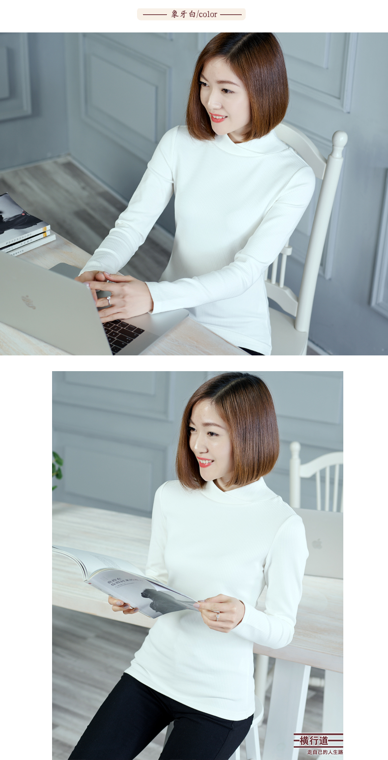 2019秋冬裝新款大碼女裝秋裝半高領棉打底衫女士長袖套頭上衣T恤1入