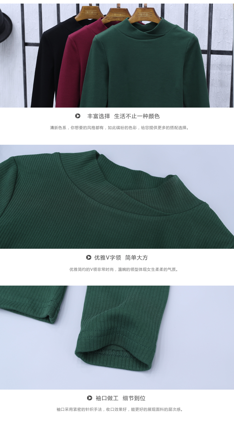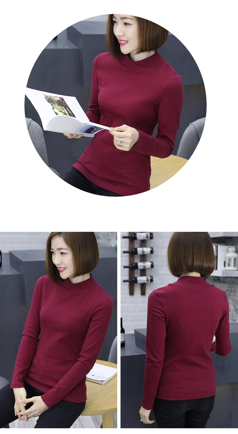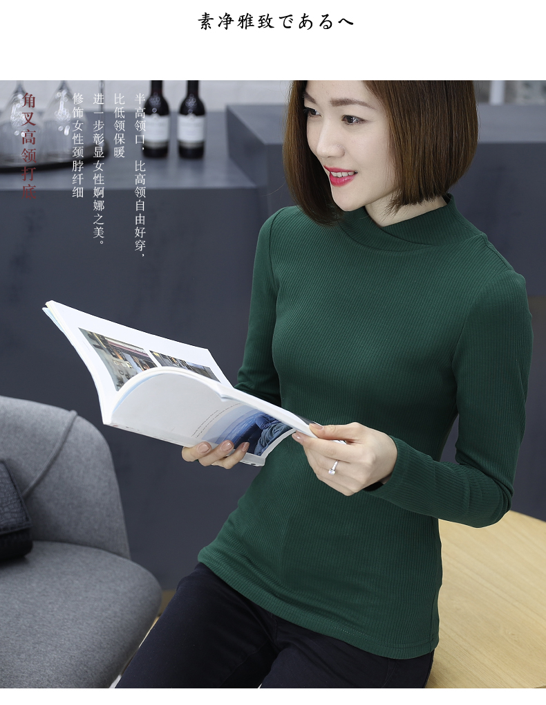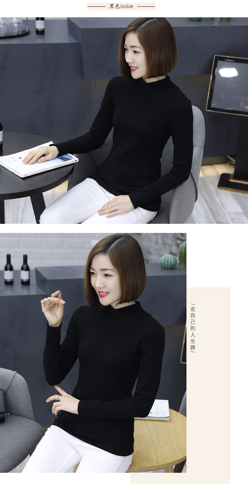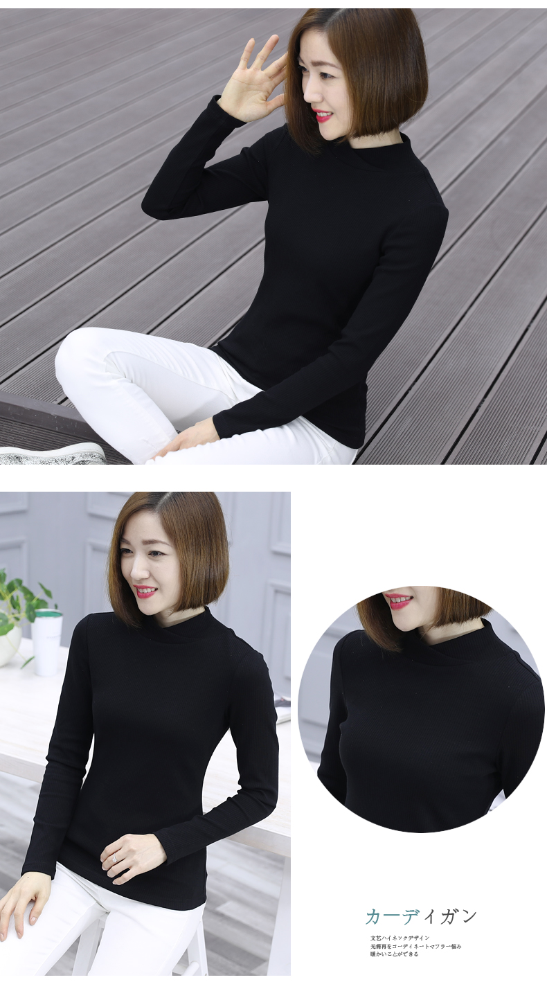 2019秋冬裝新款大碼女裝秋裝半高領棉打底衫女士長袖套頭上衣T恤1入