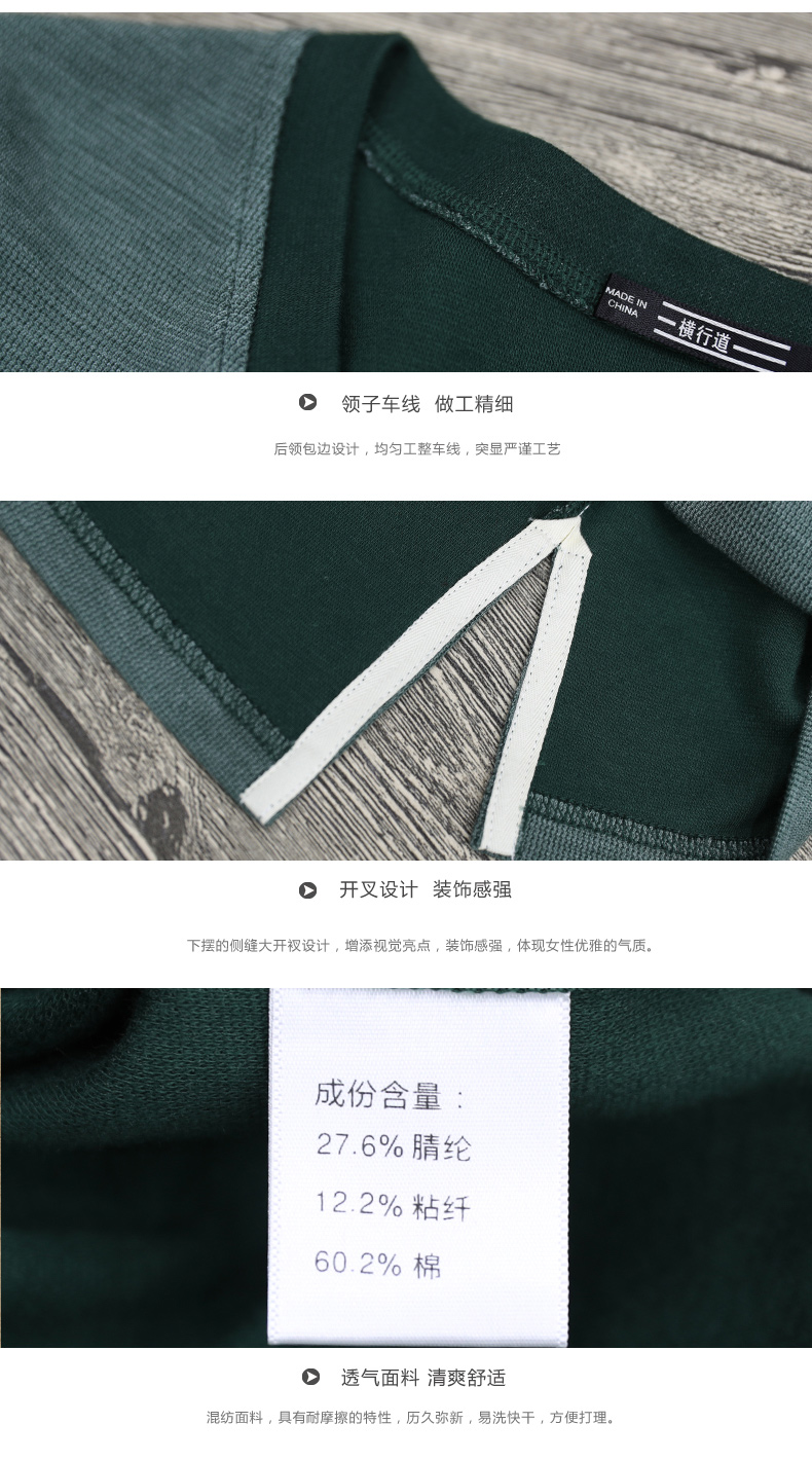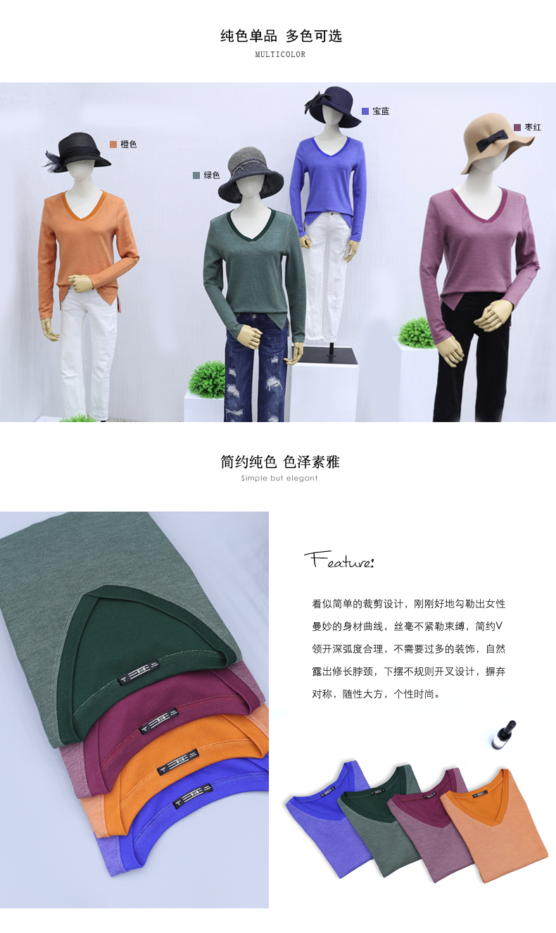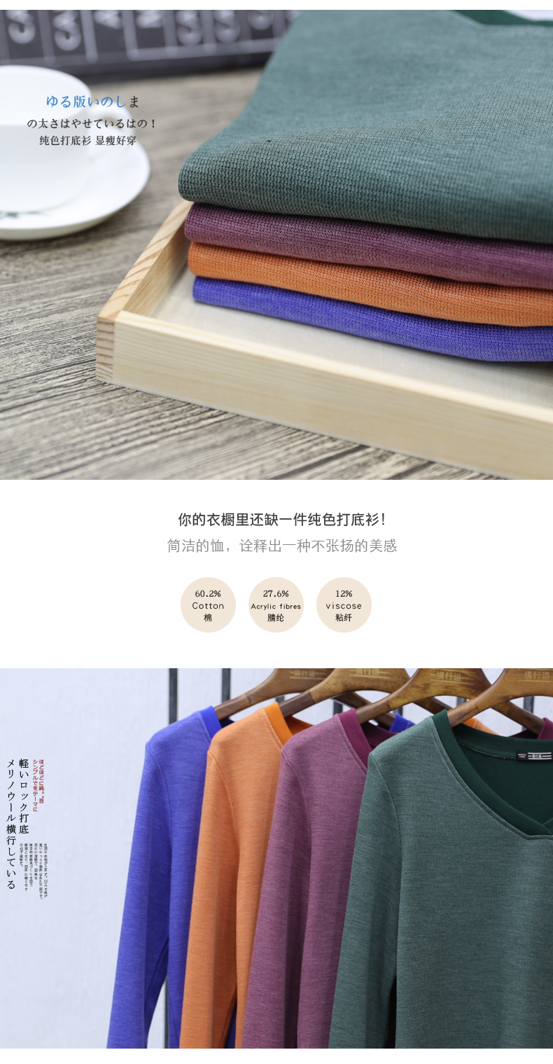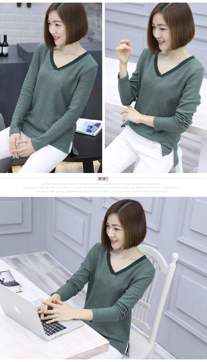 2019秋裝大碼女裝新款長袖t恤寬松外穿打底衫開叉撞色v領上衣服1入
