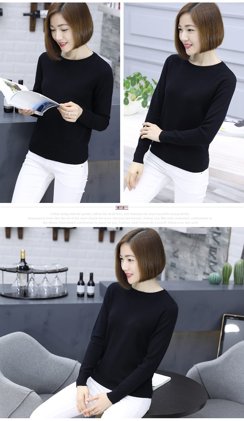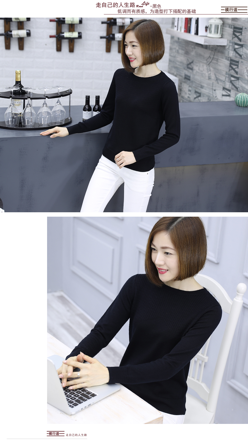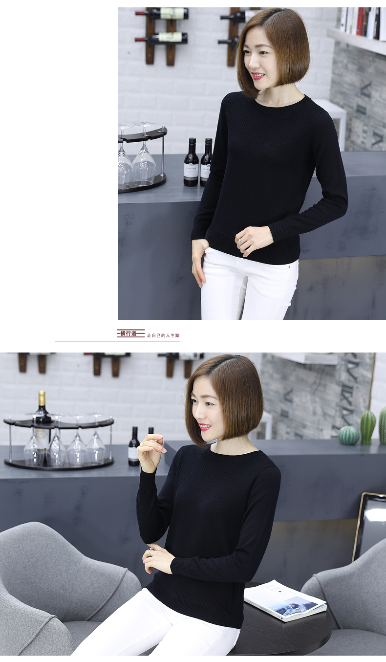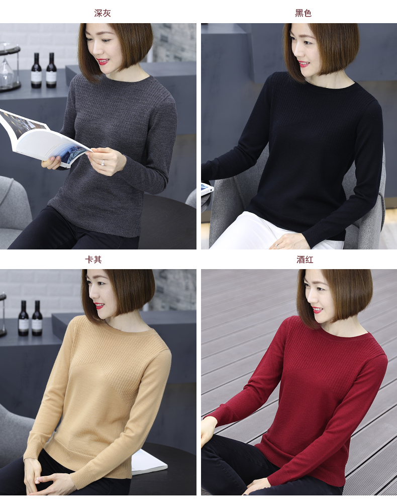 2019秋裝新款女裝純羊毛衫打底衫長袖女上衣服針織毛衣寬松外穿1入