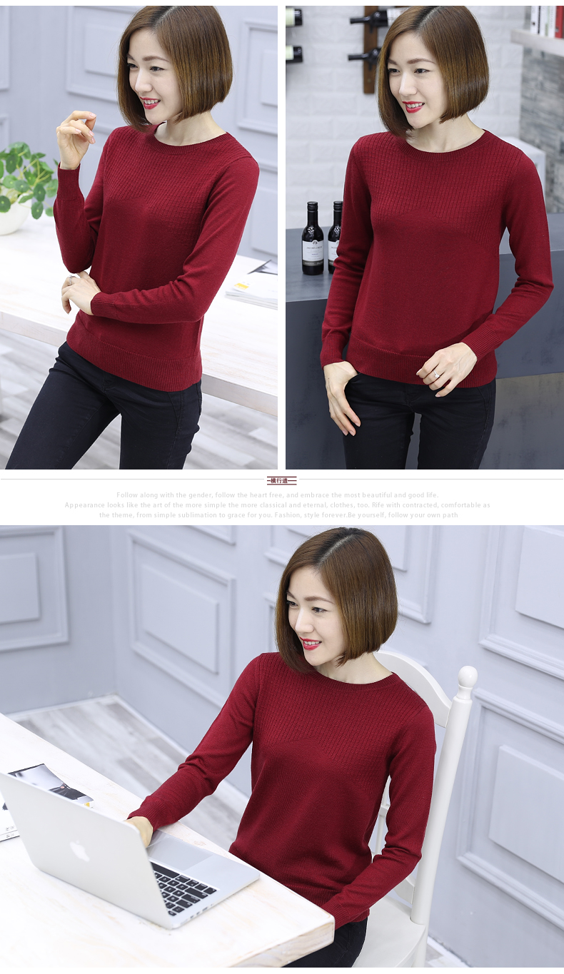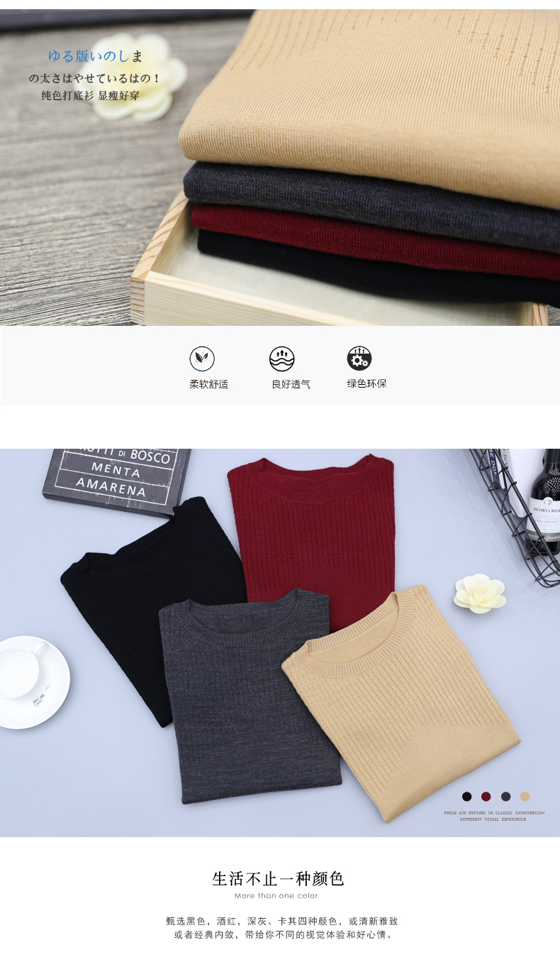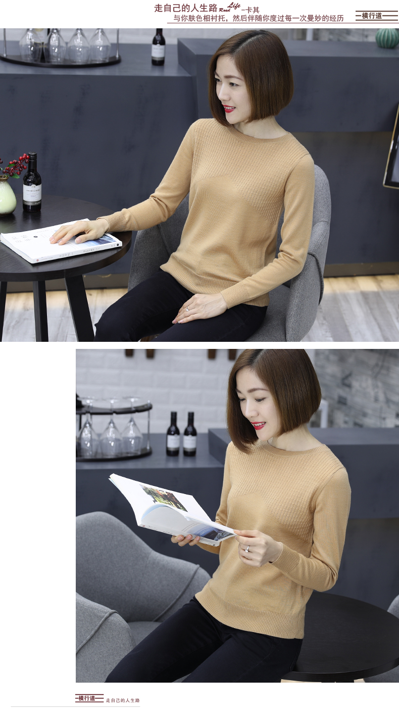 2019秋裝新款女裝純羊毛衫打底衫長袖女上衣服針織毛衣寬松外穿1入
