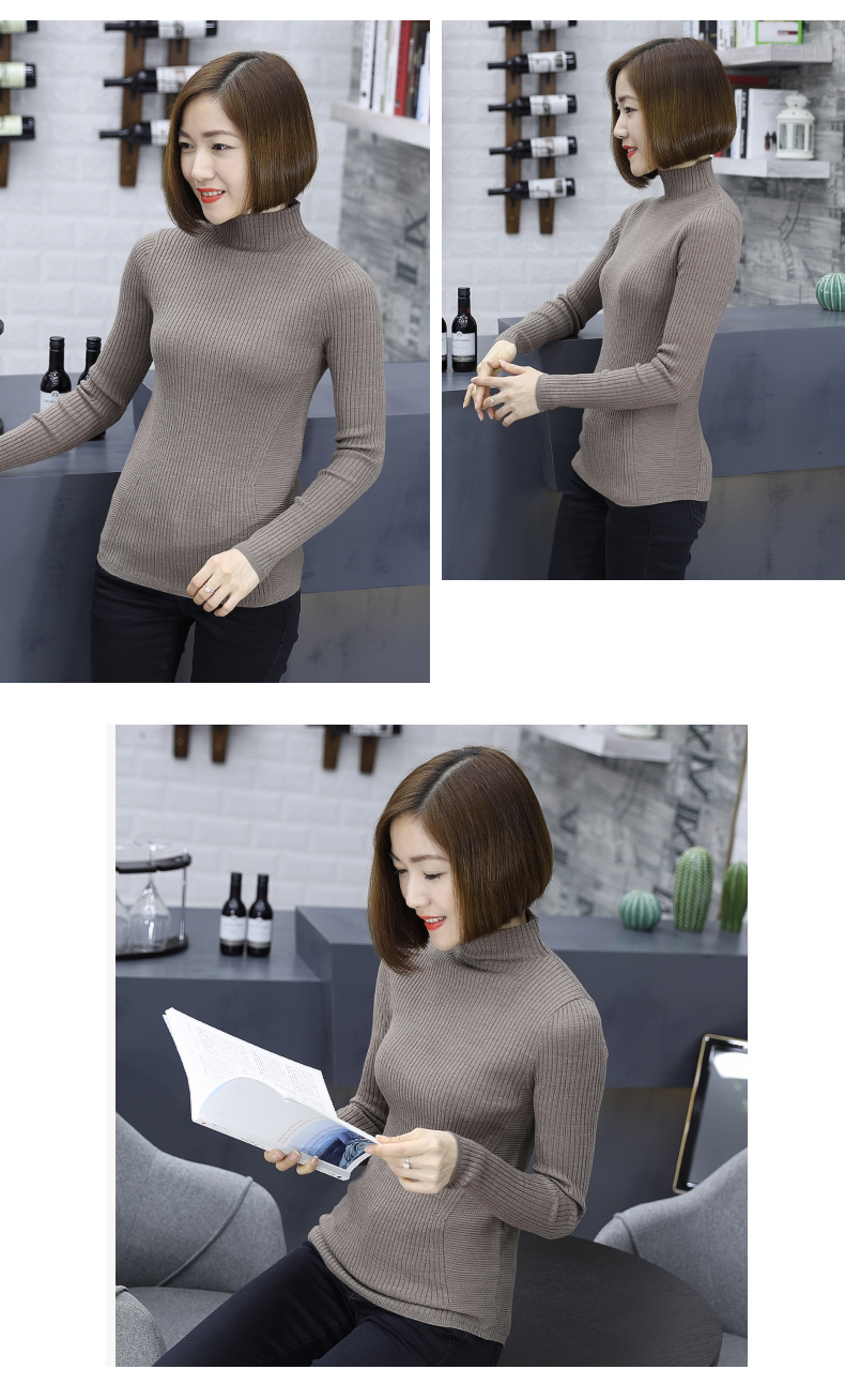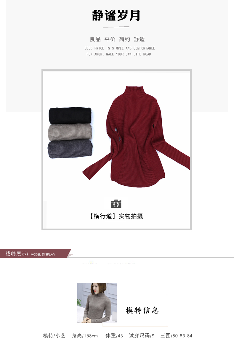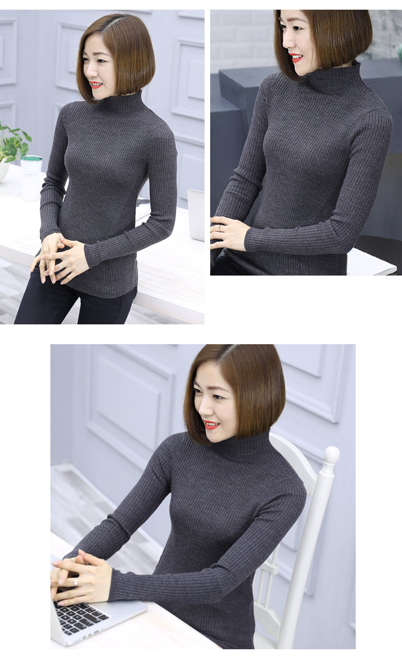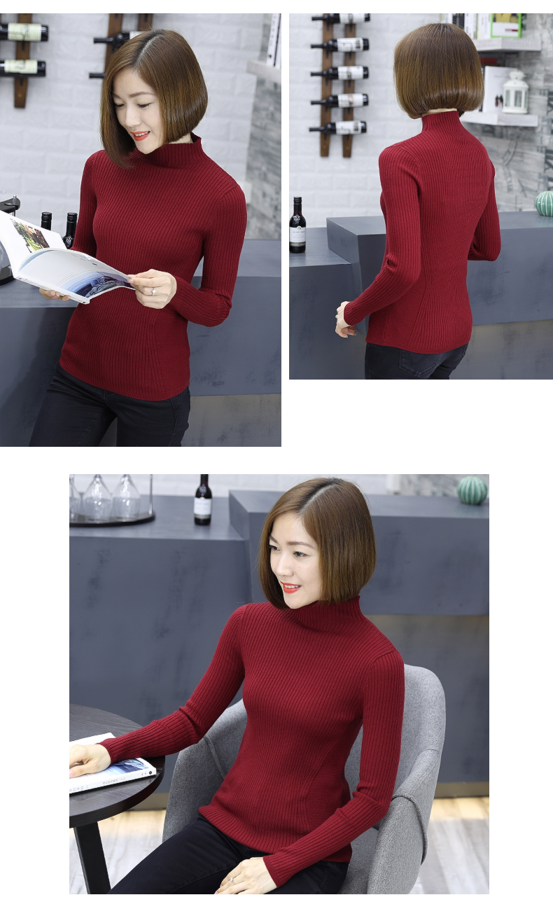 2019秋裝套頭半高領羊毛打底衫內搭毛衣修身長袖女士上衣針織衫1入