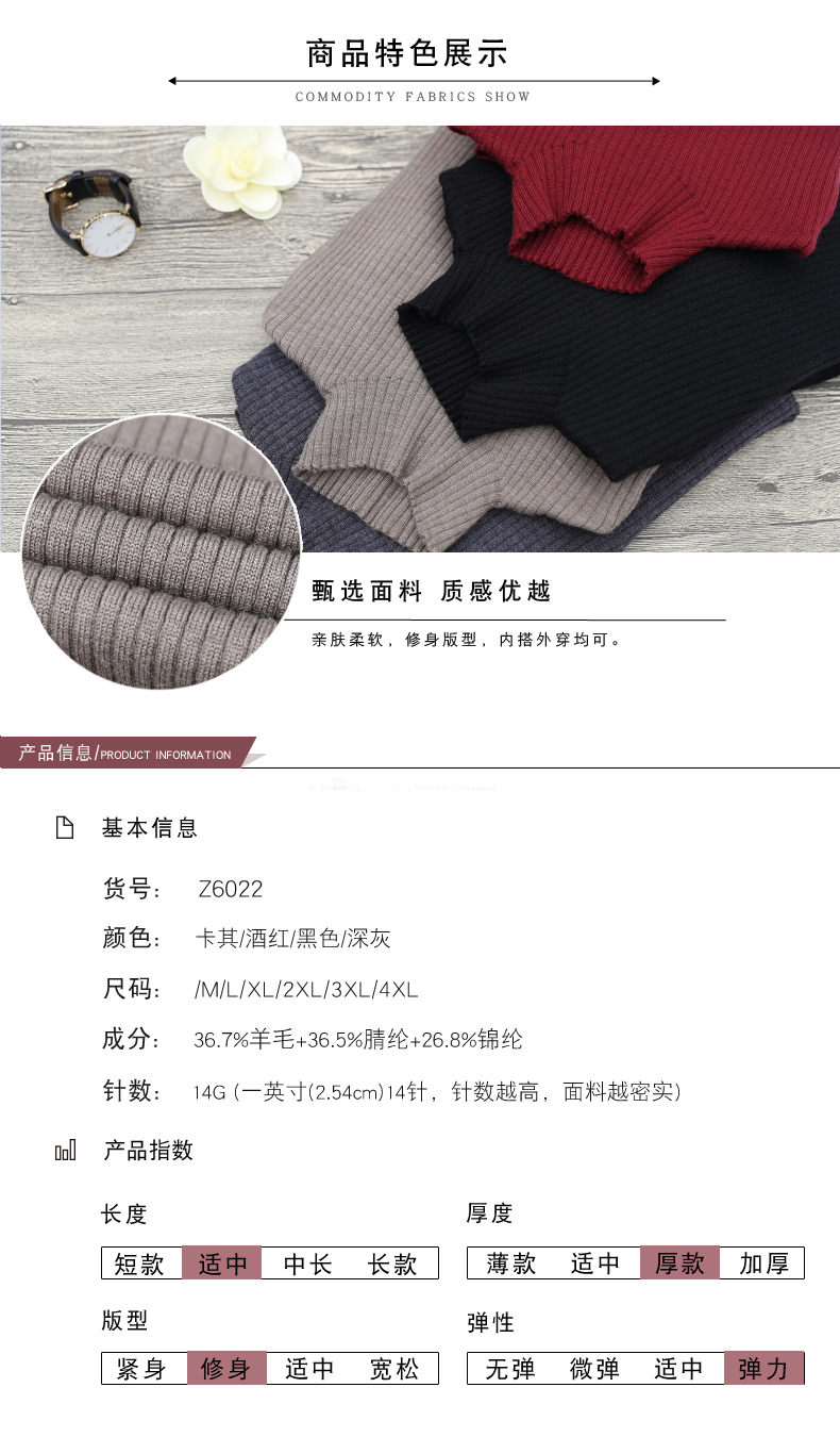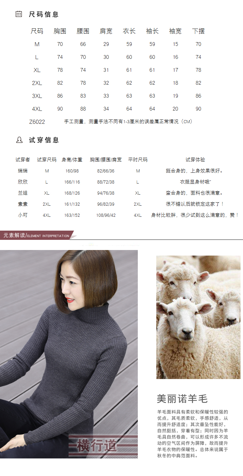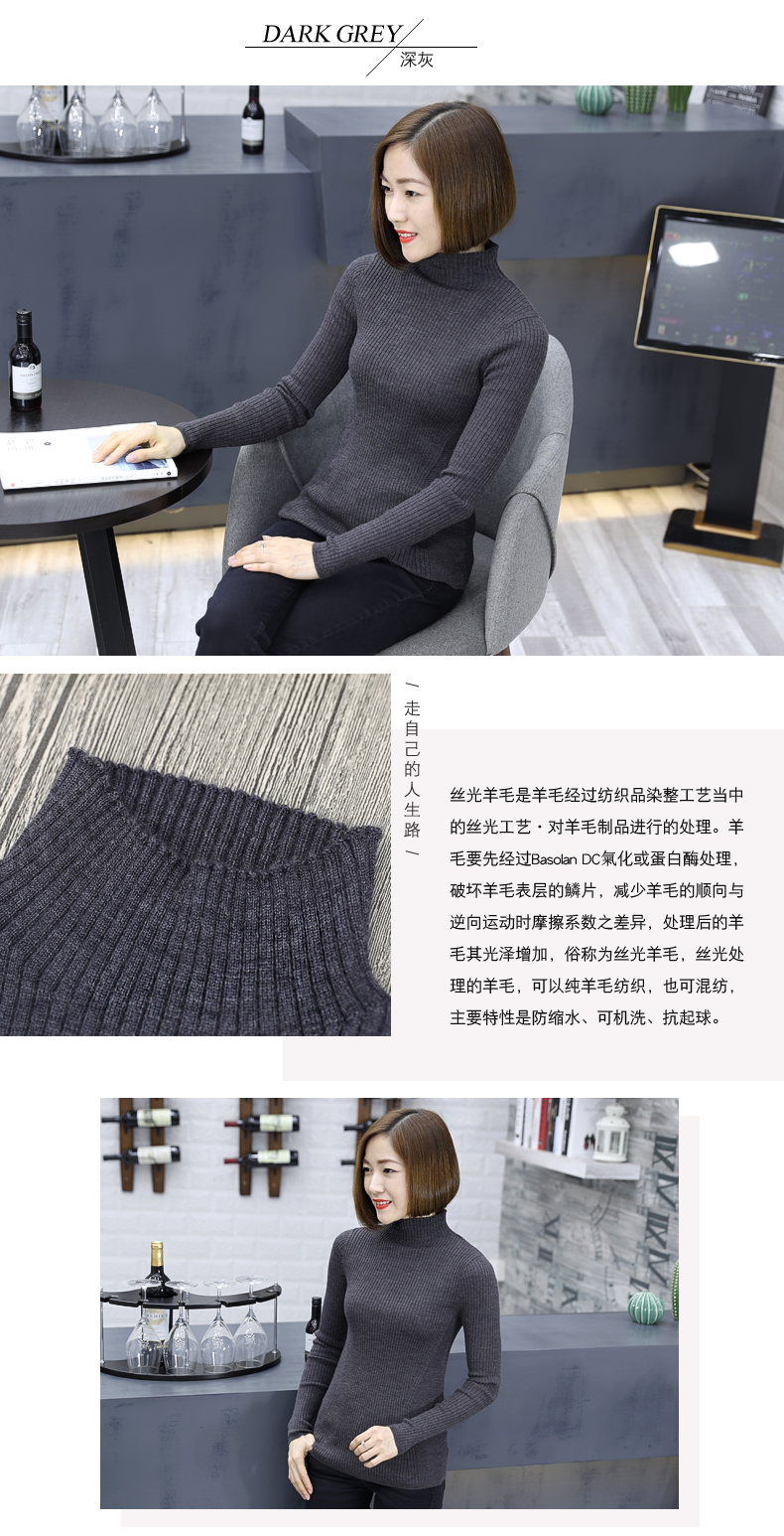 2019秋裝套頭半高領羊毛打底衫內搭毛衣修身長袖女士上衣針織衫1入