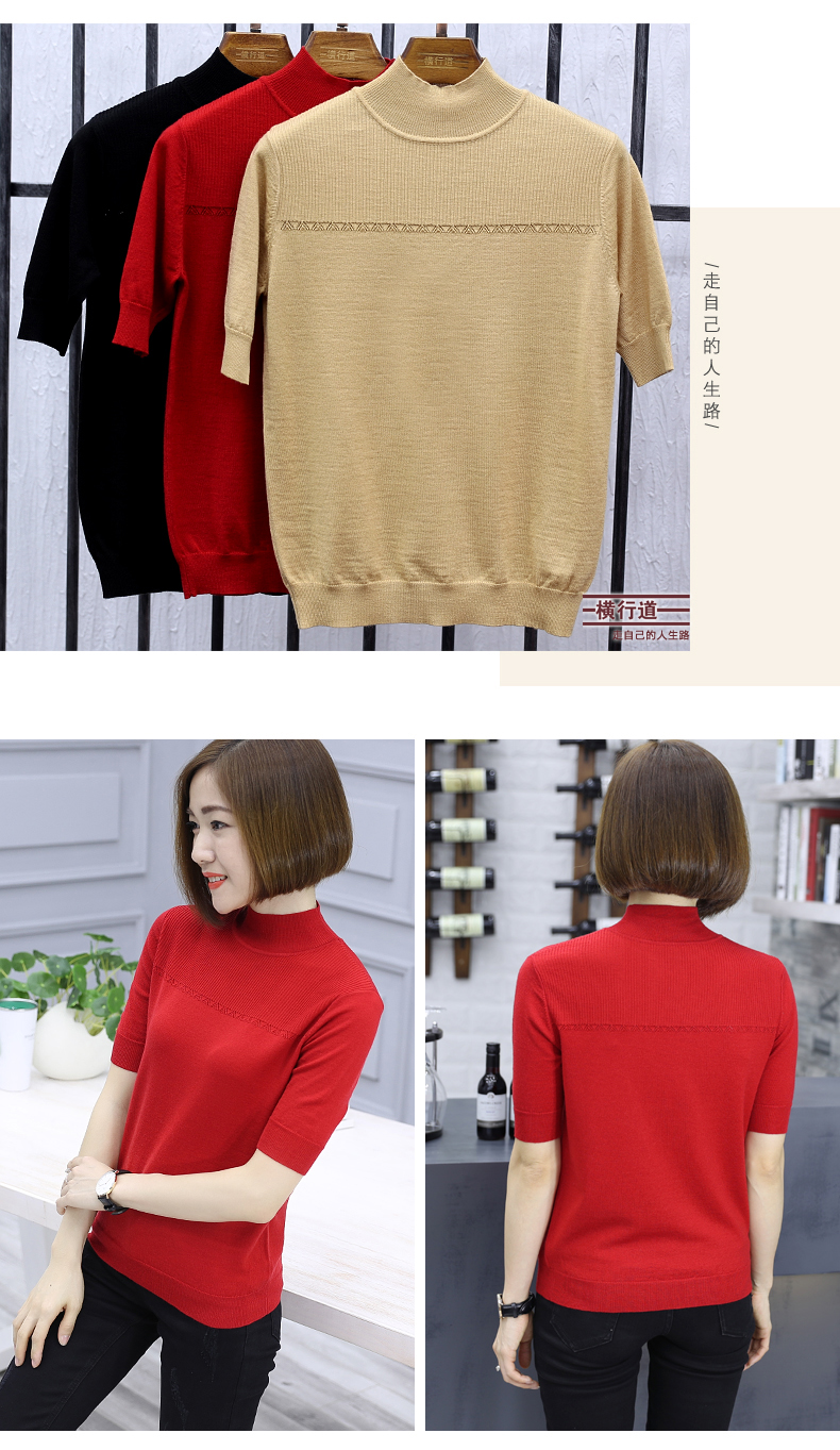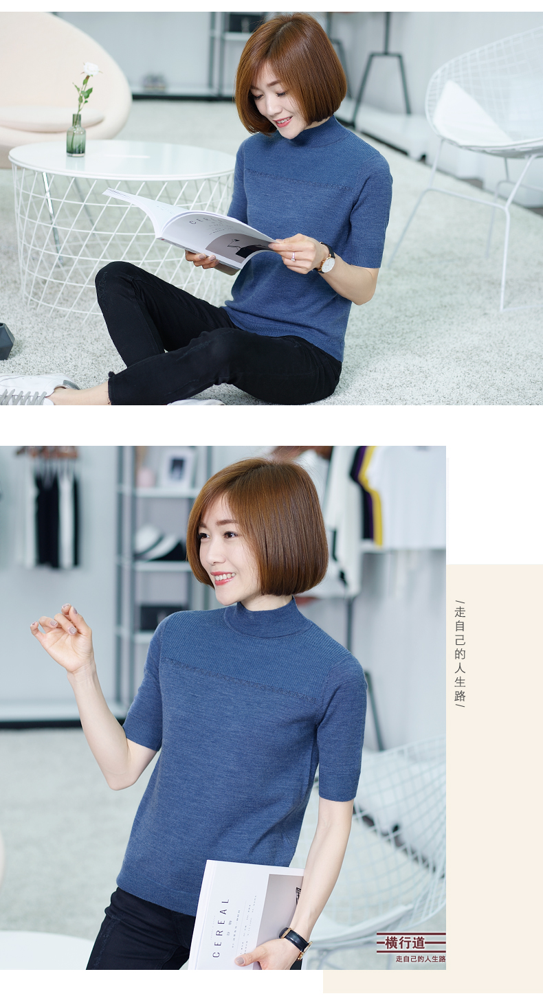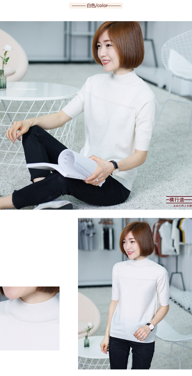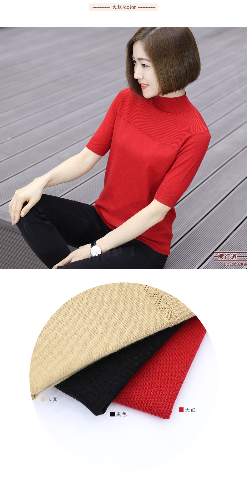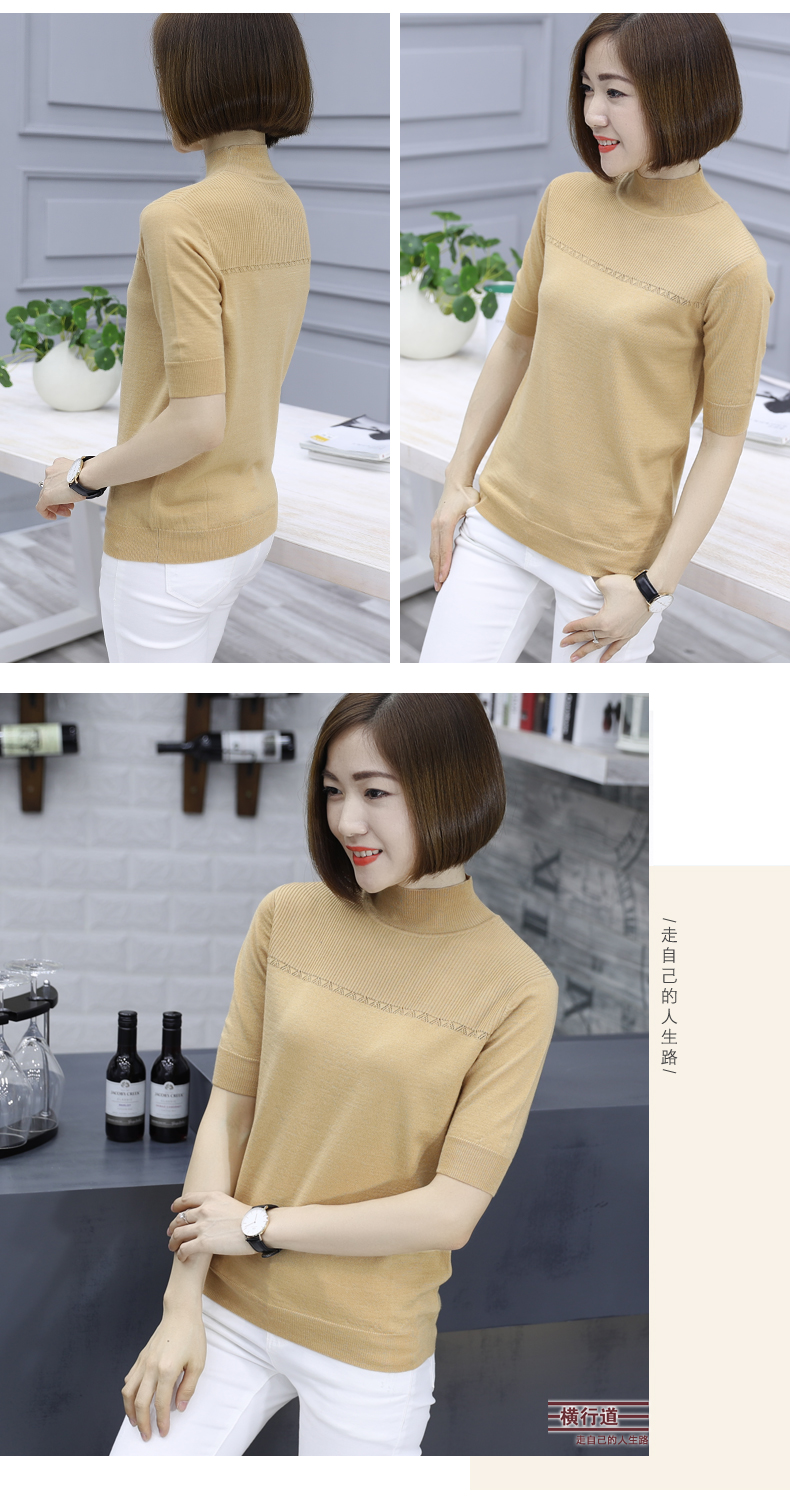 2019秋裝新款五分袖半高領羊毛衣針織衫打底寬松女裝外穿中袖上衣1入