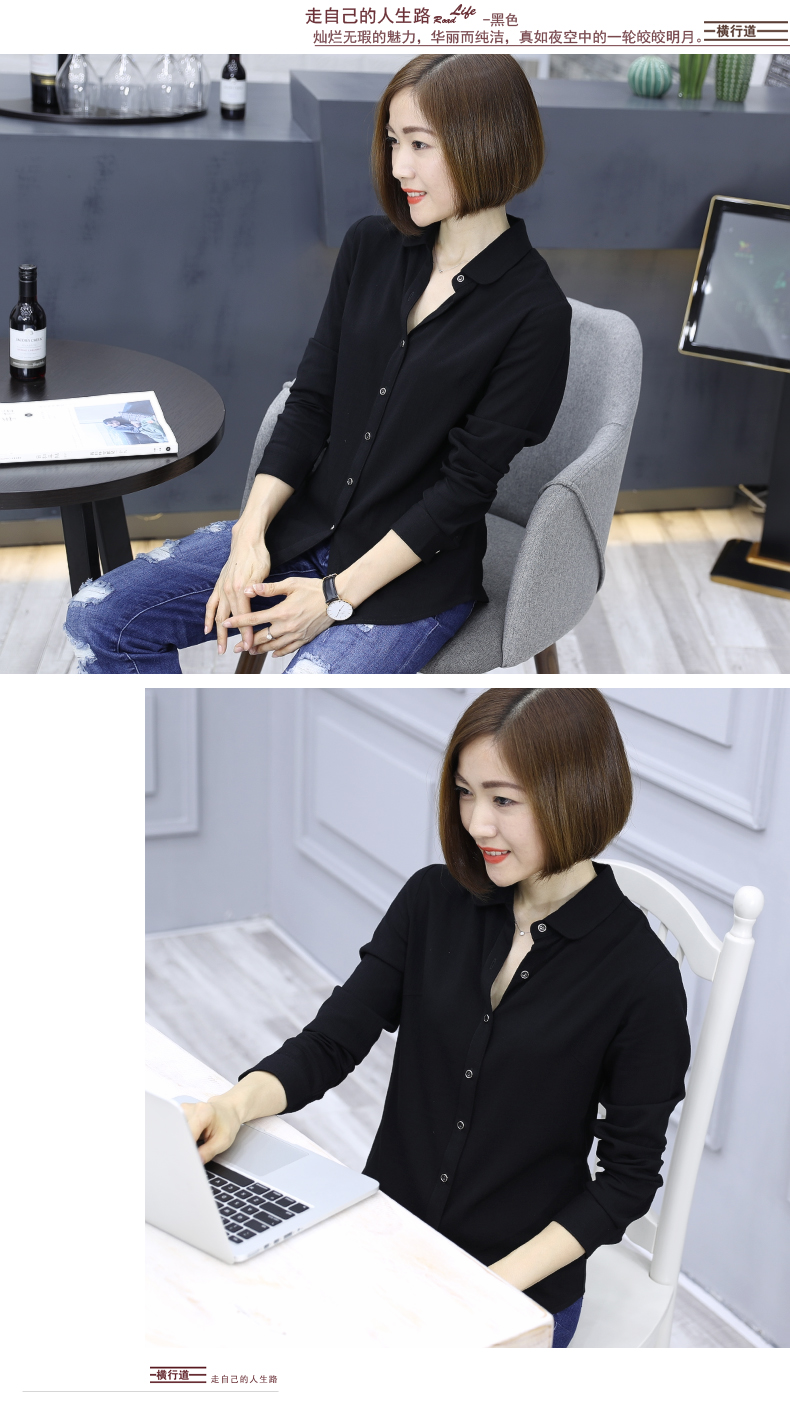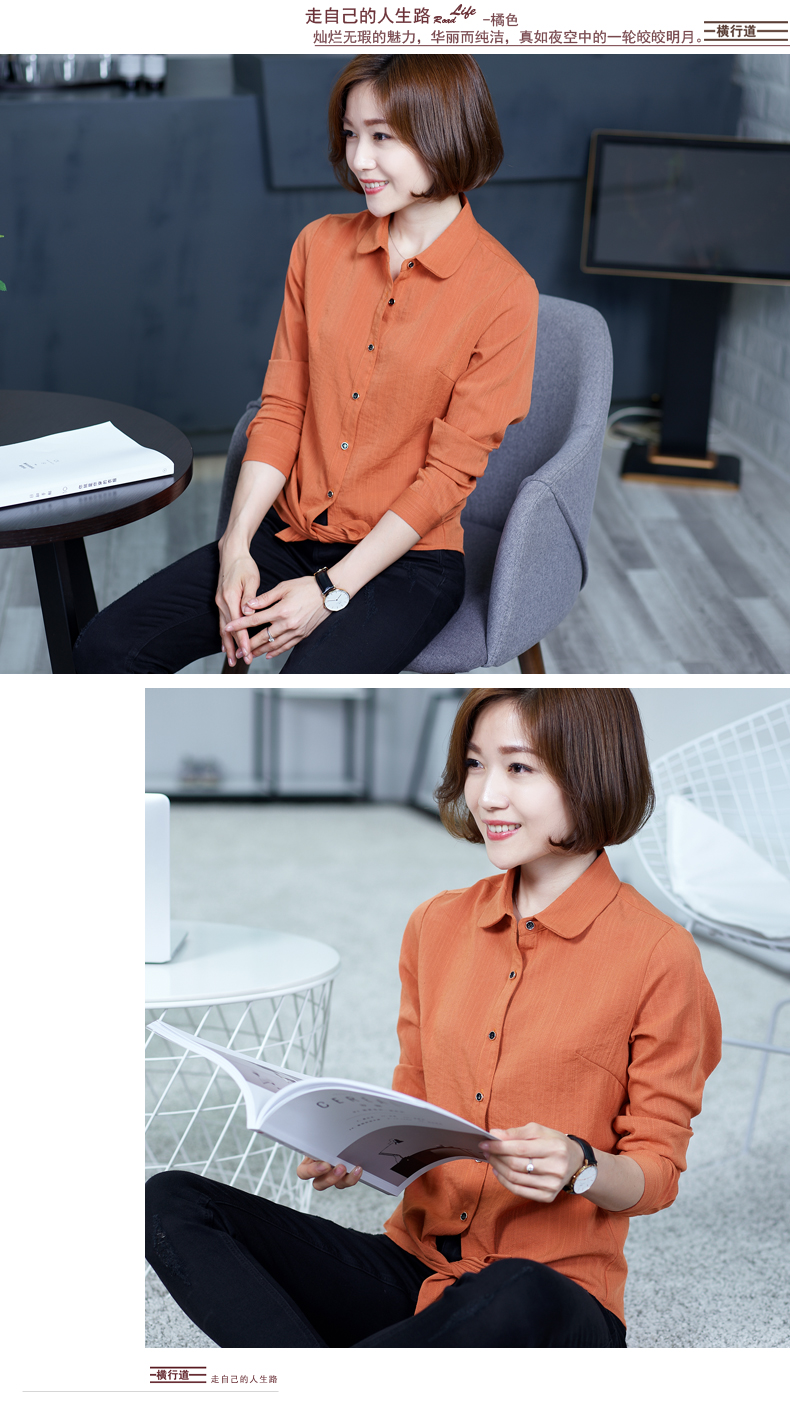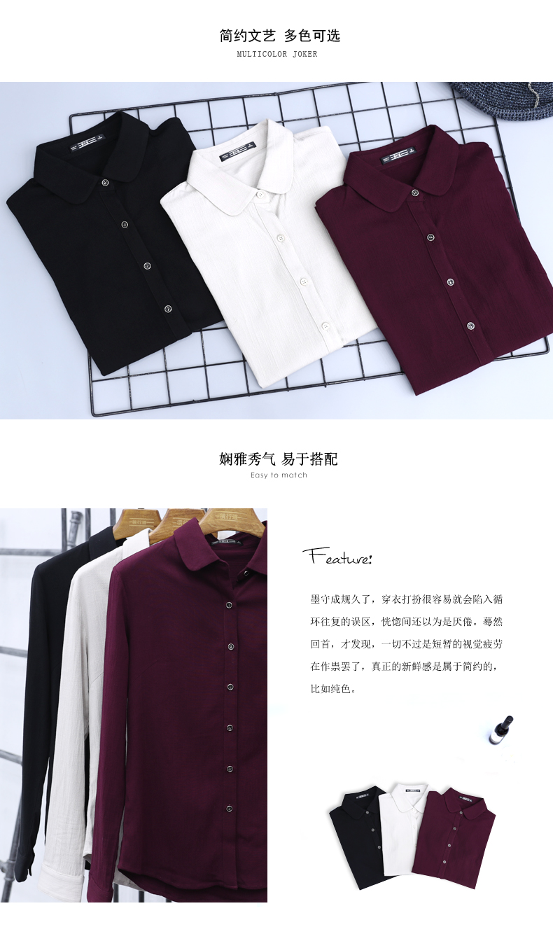 2019秋裝襯衫女裝上衣服大碼休閑寬松外套長袖娃娃領韓版休閑襯衣1入