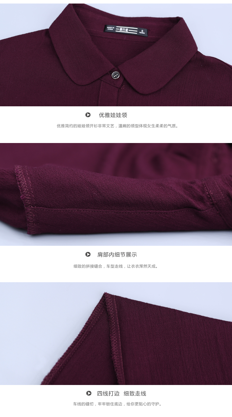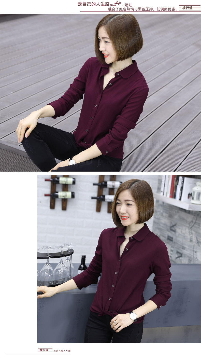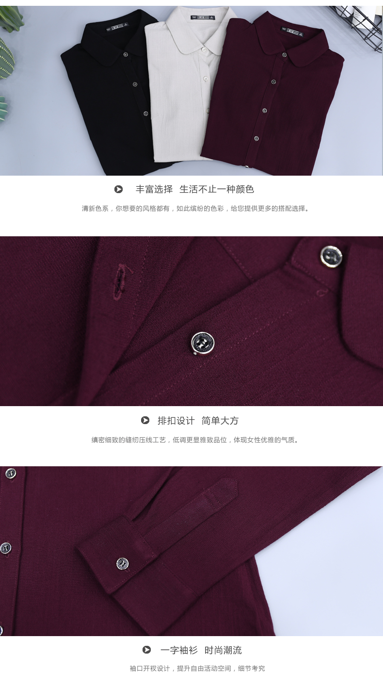 2019秋裝襯衫女裝上衣服大碼休閑寬松外套長袖娃娃領韓版休閑襯衣1入