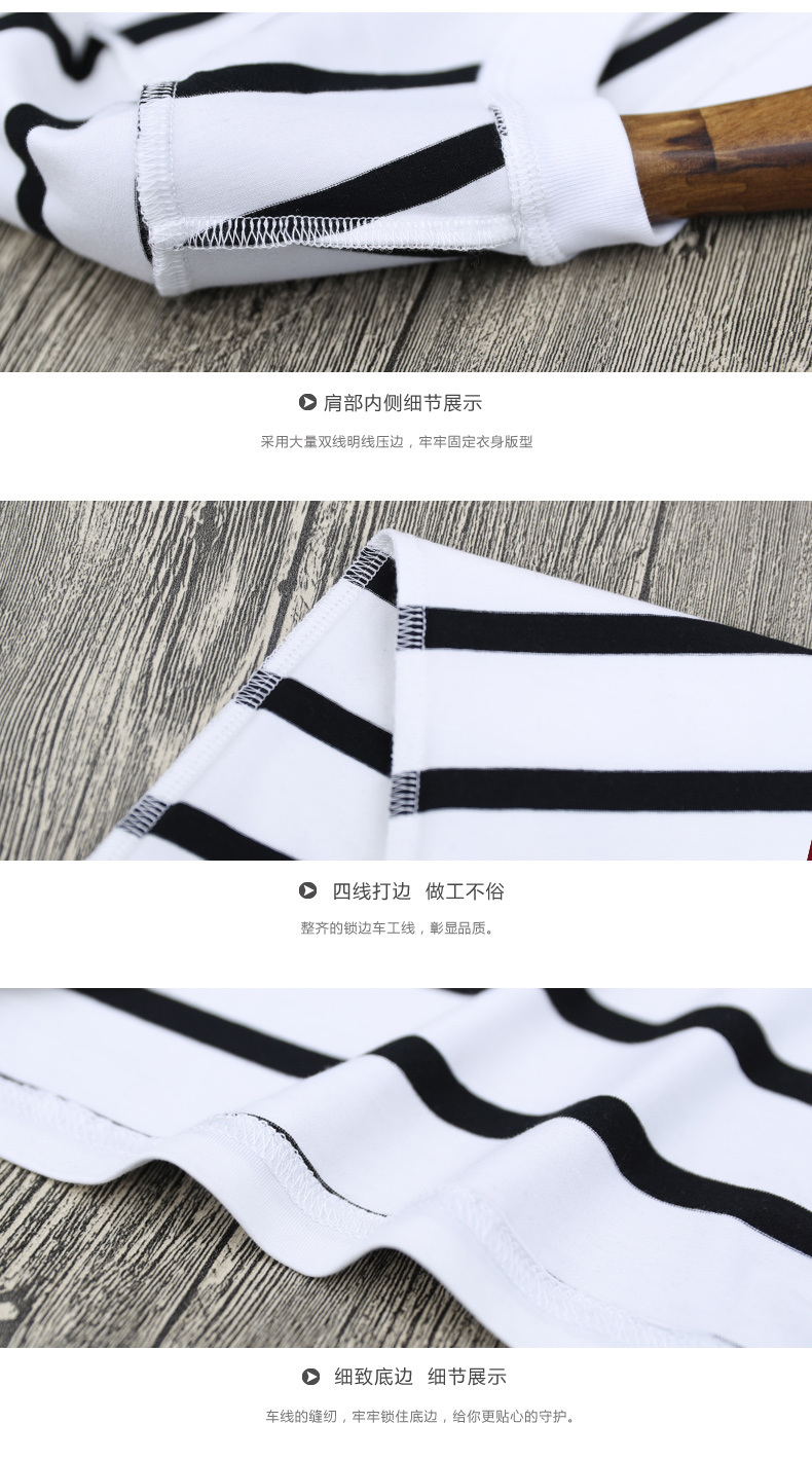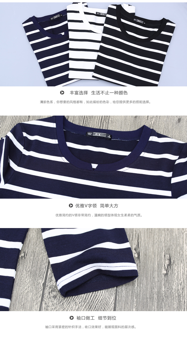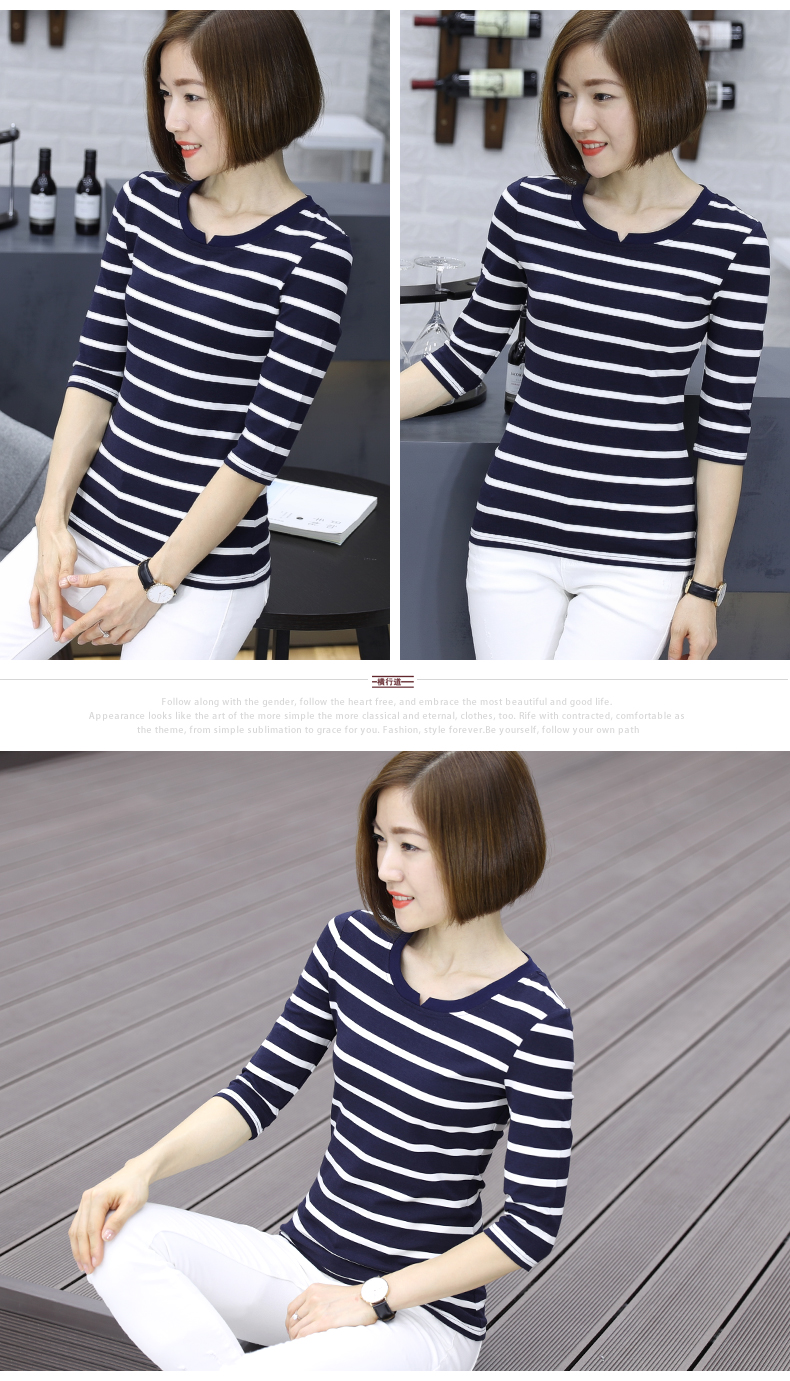 2019秋季新款衣服中袖黑白條紋t恤七分袖女士上衣打底衫女裝外穿1入