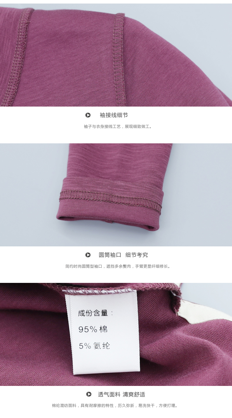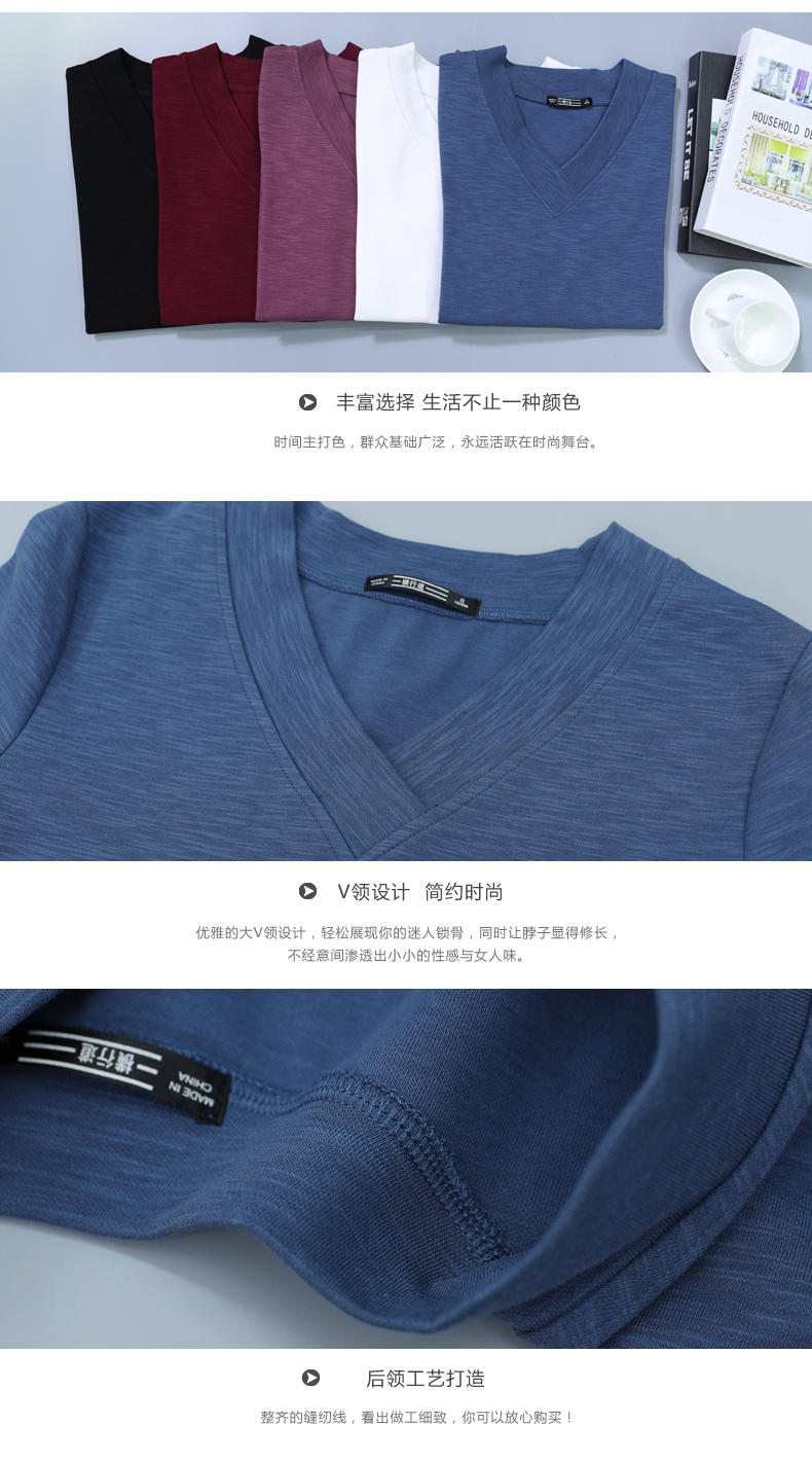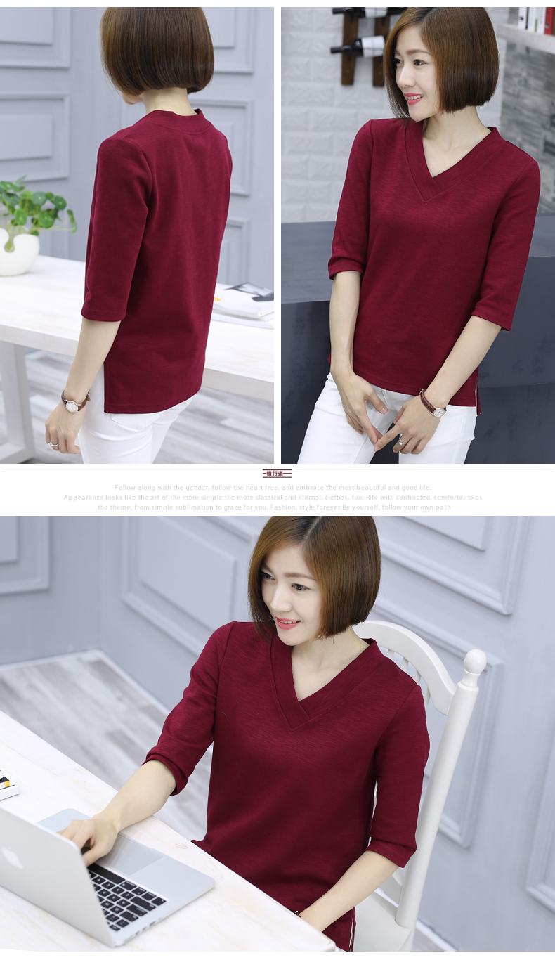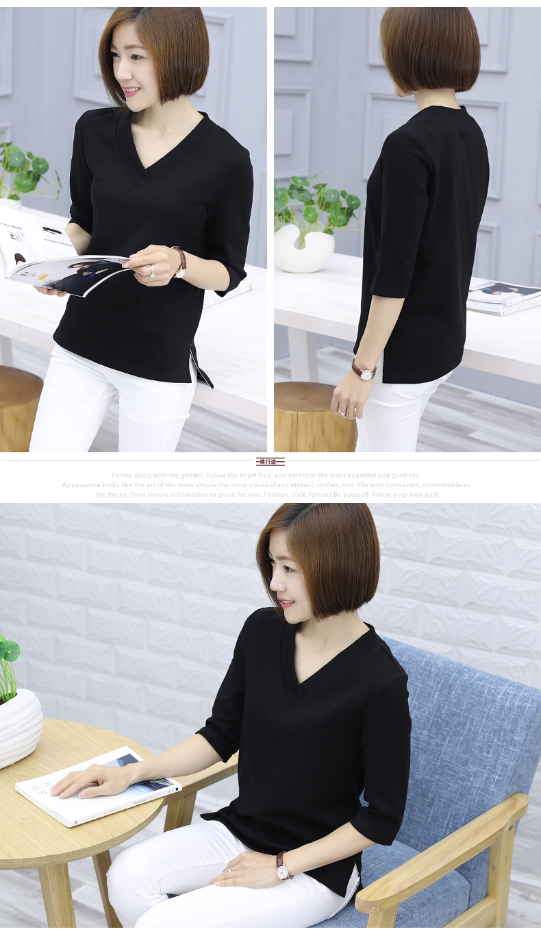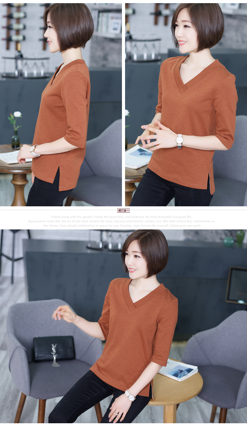 2019秋裝新款女裝竹節棉寬松上衣服七分袖打底衫中袖v領t恤大碼1入