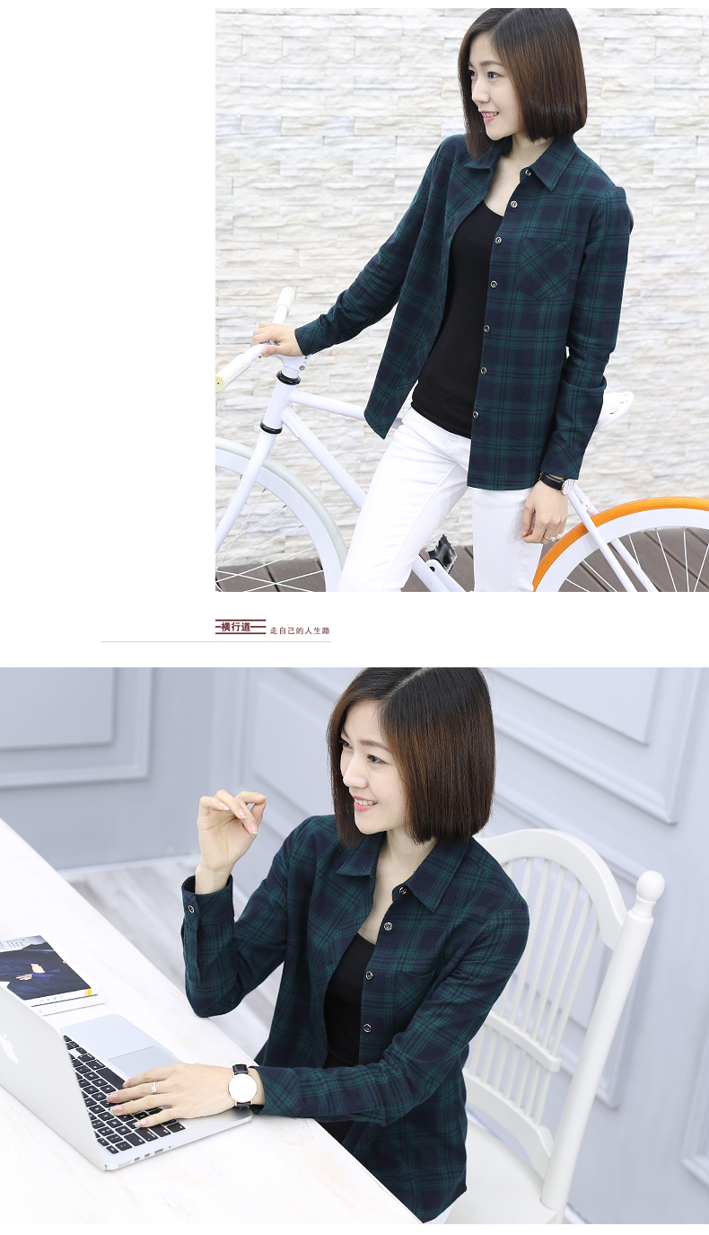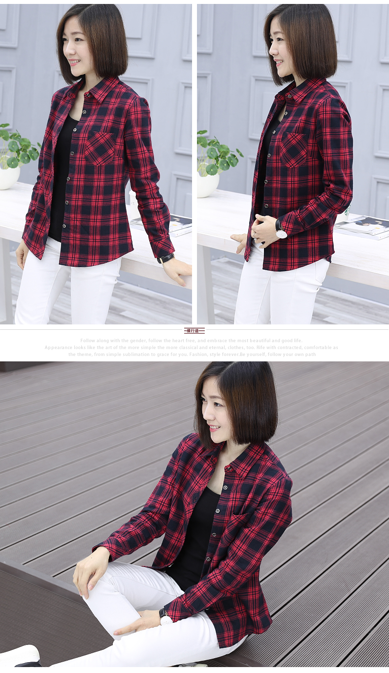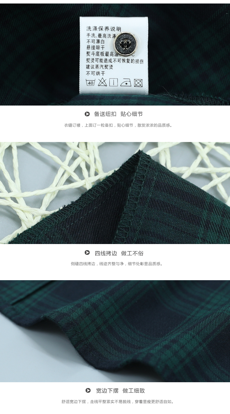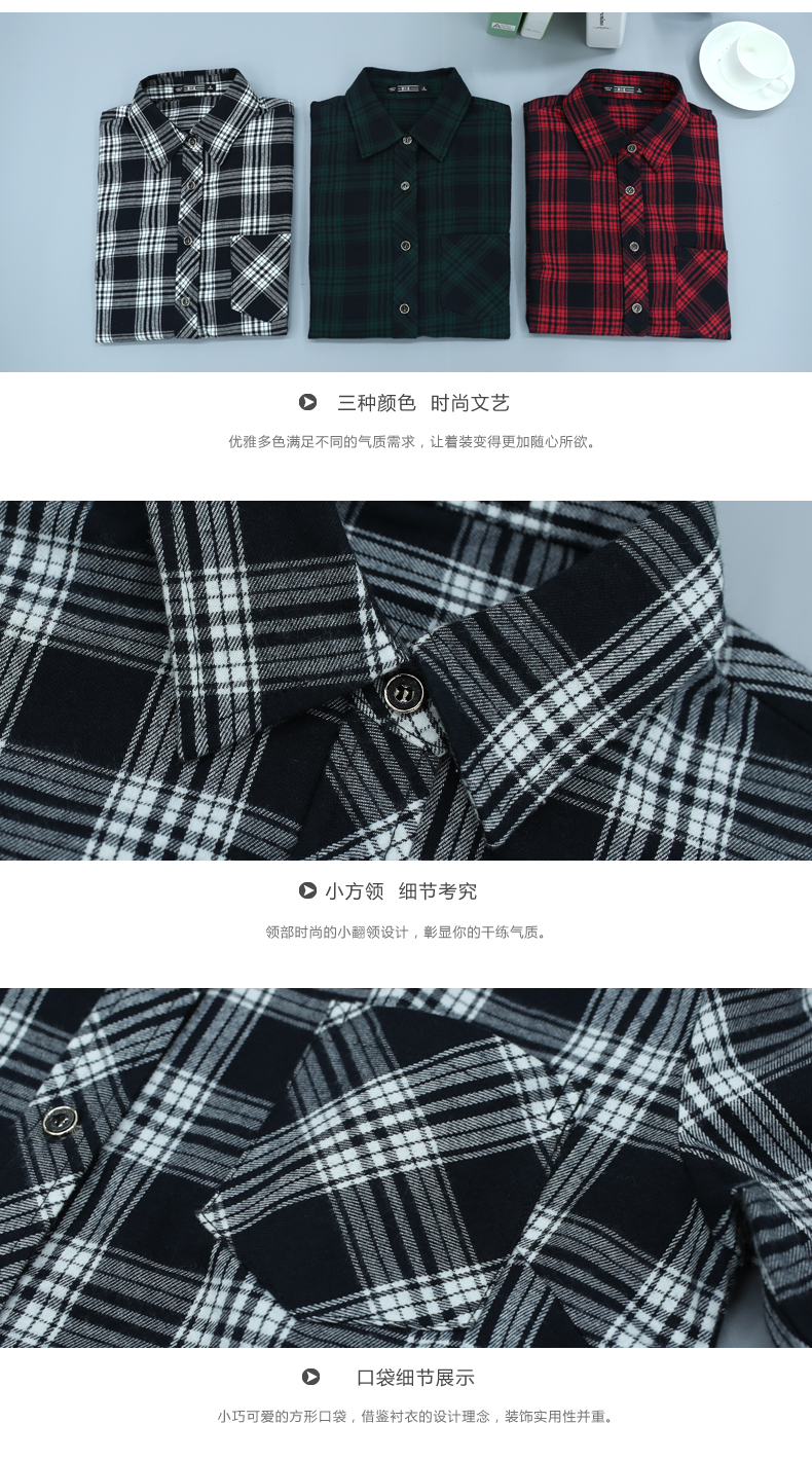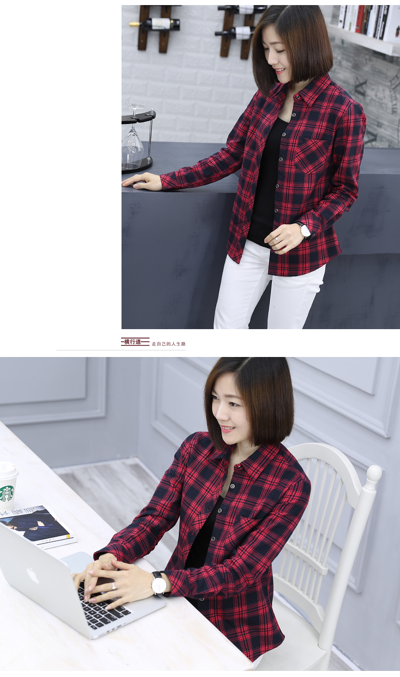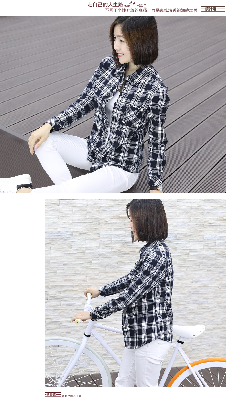 2019秋裝新款大碼純棉格子襯衫寬松上衣服外穿打底衫女裝休閑長袖1入