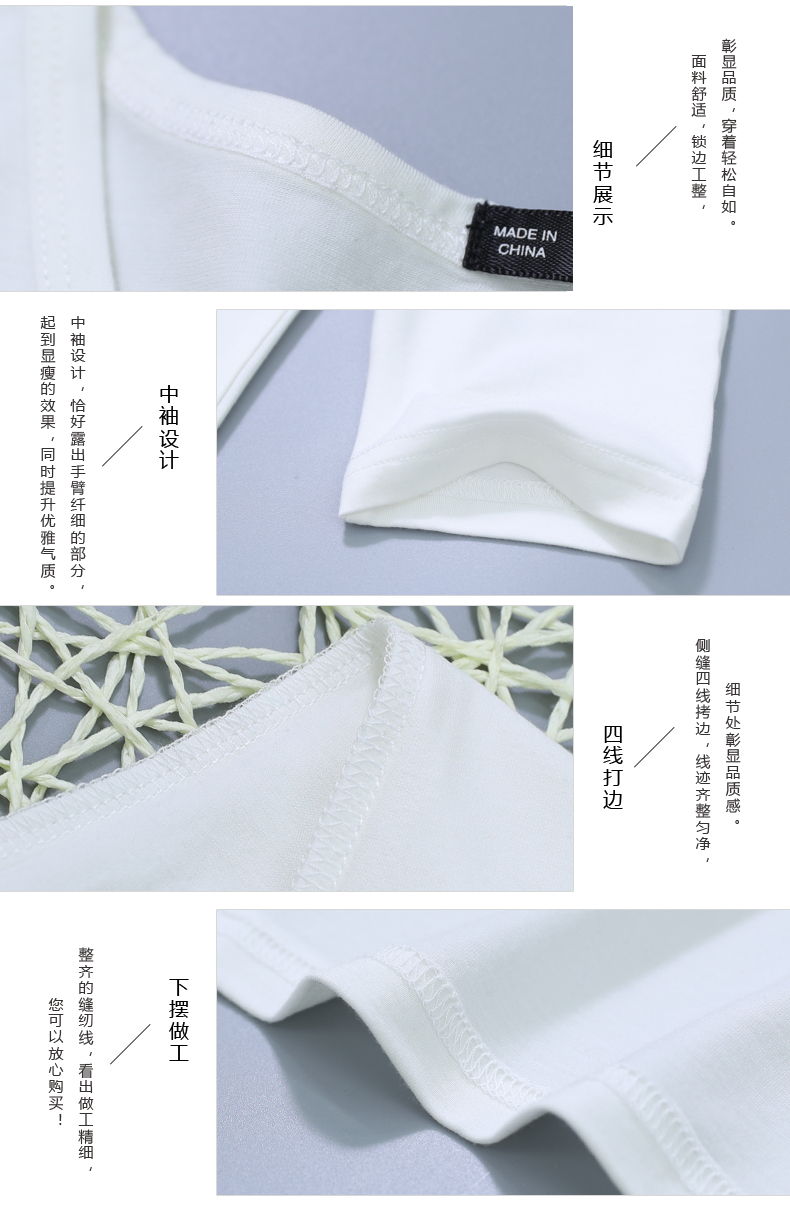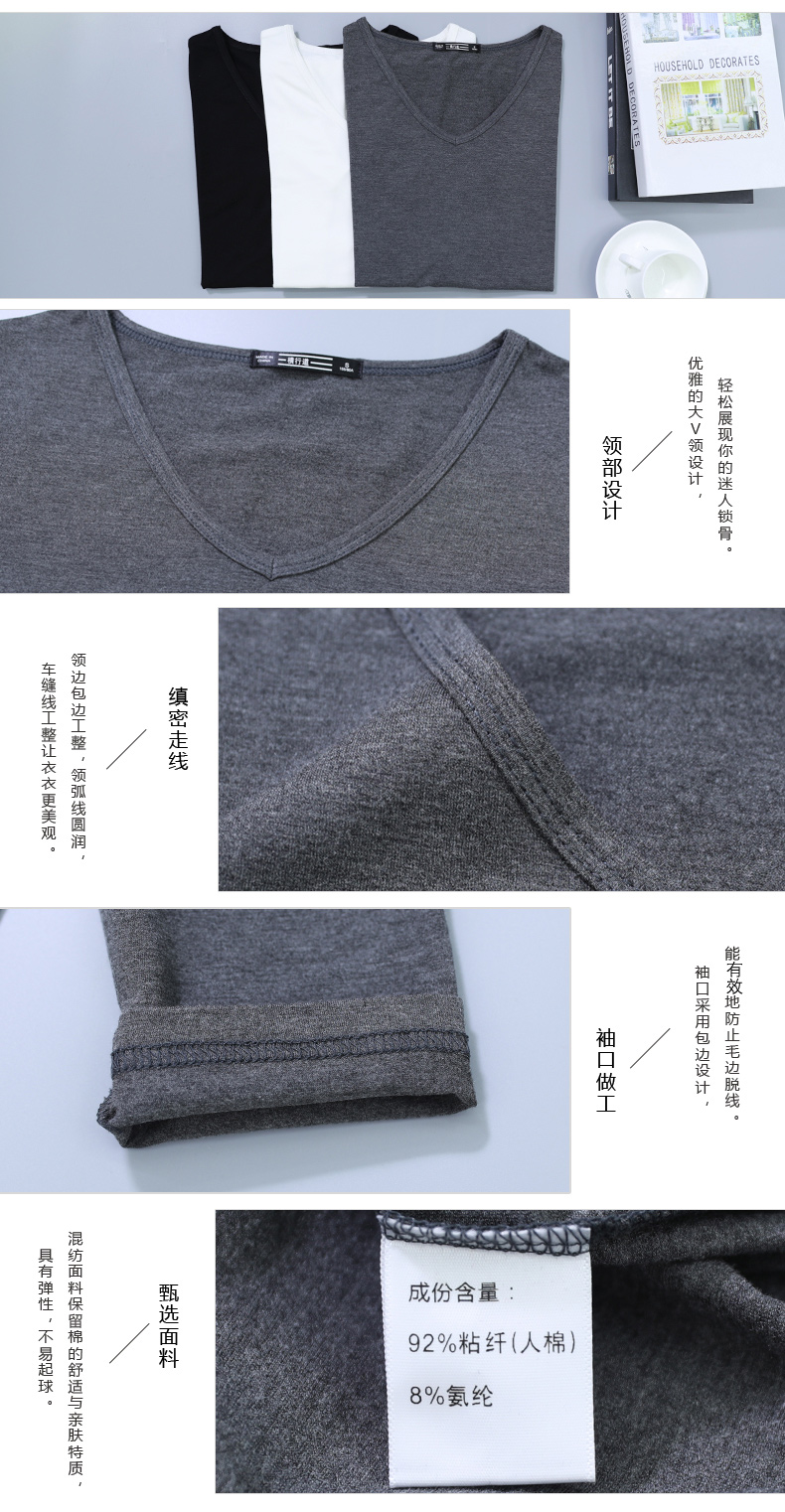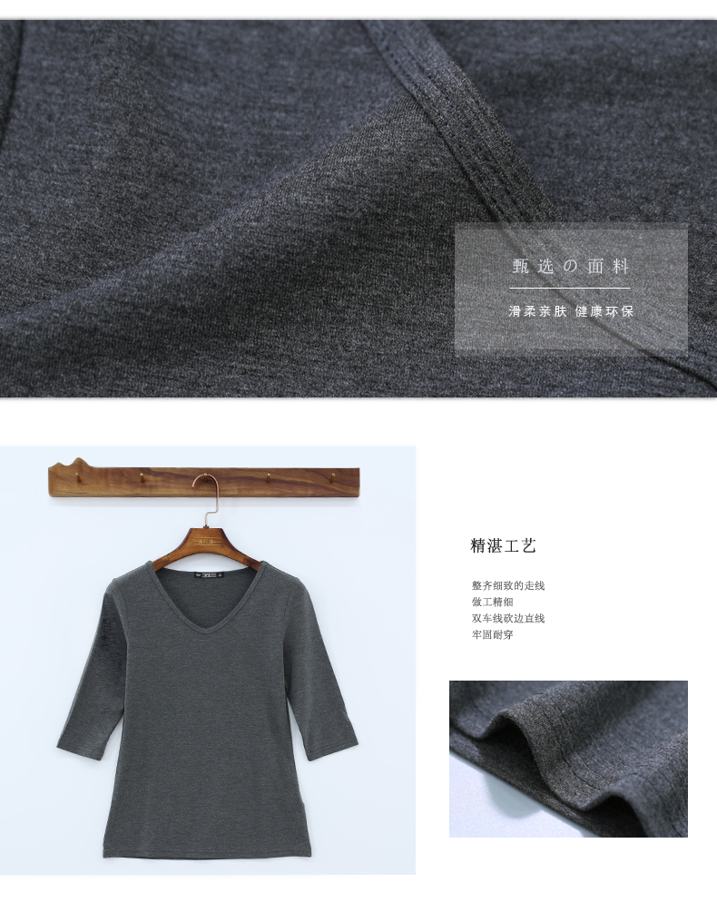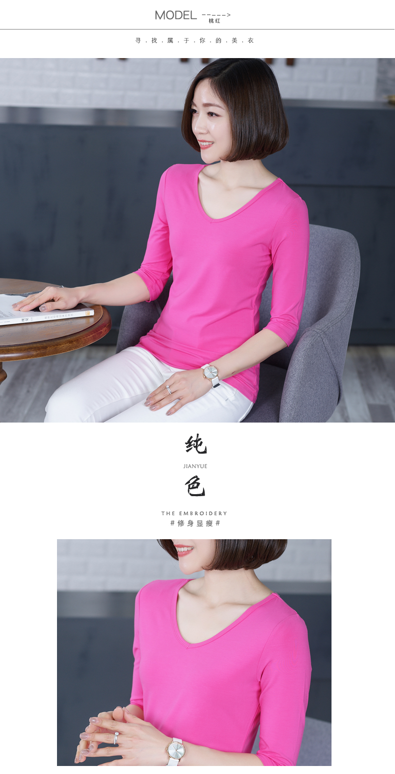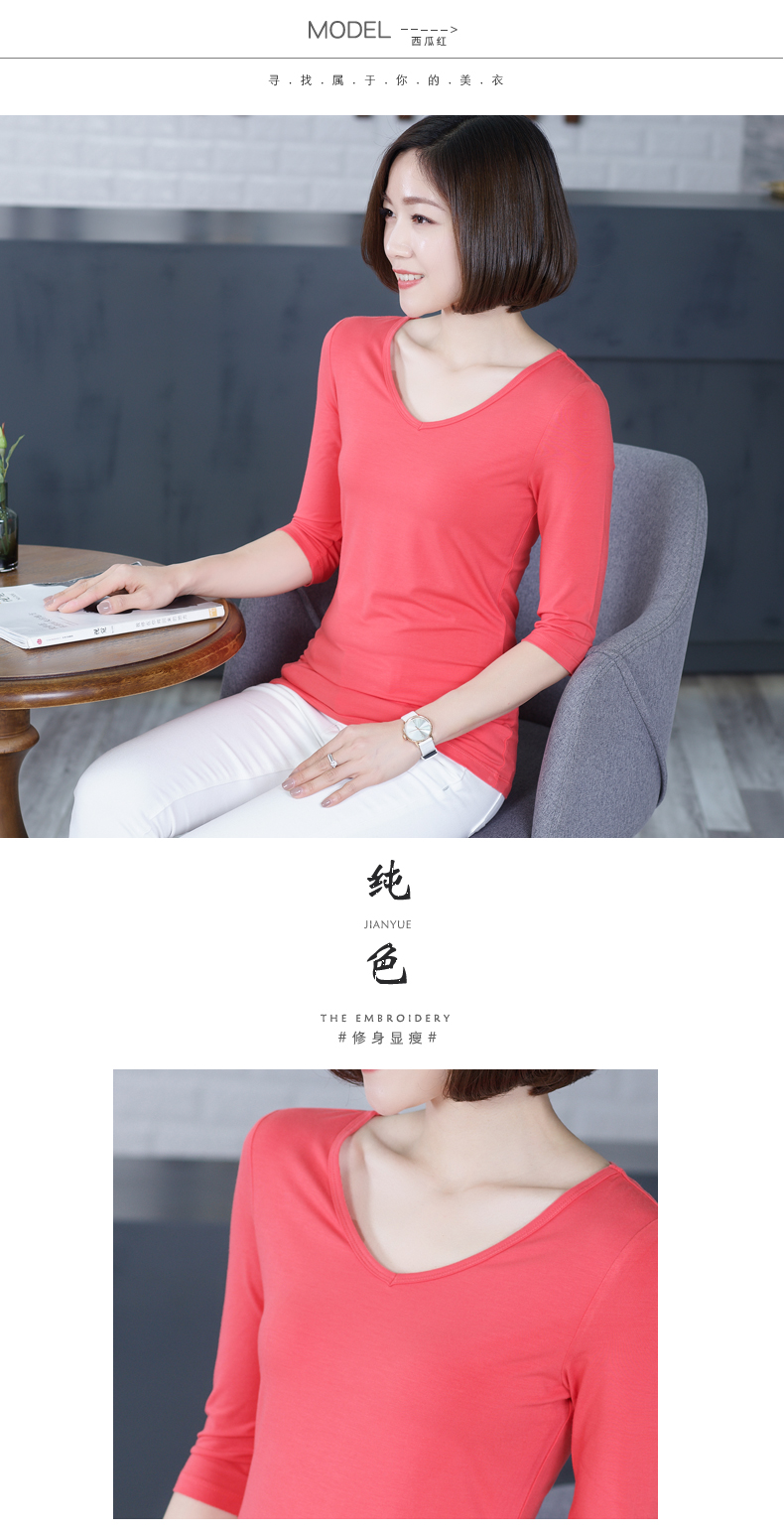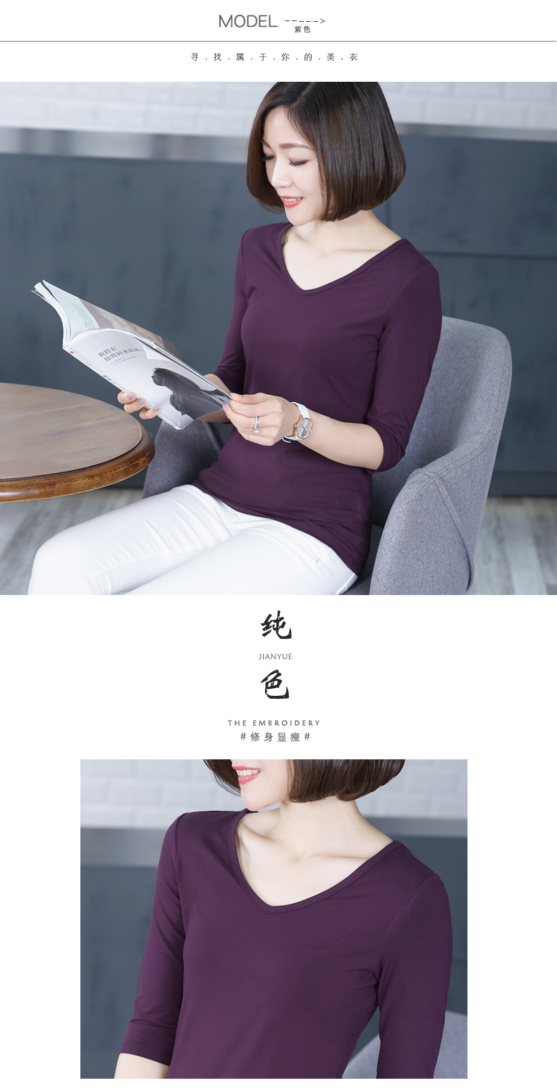 2019秋季五分中袖打底衫女修身七分袖v領t恤黑色秋裝韓版體恤女裝1入