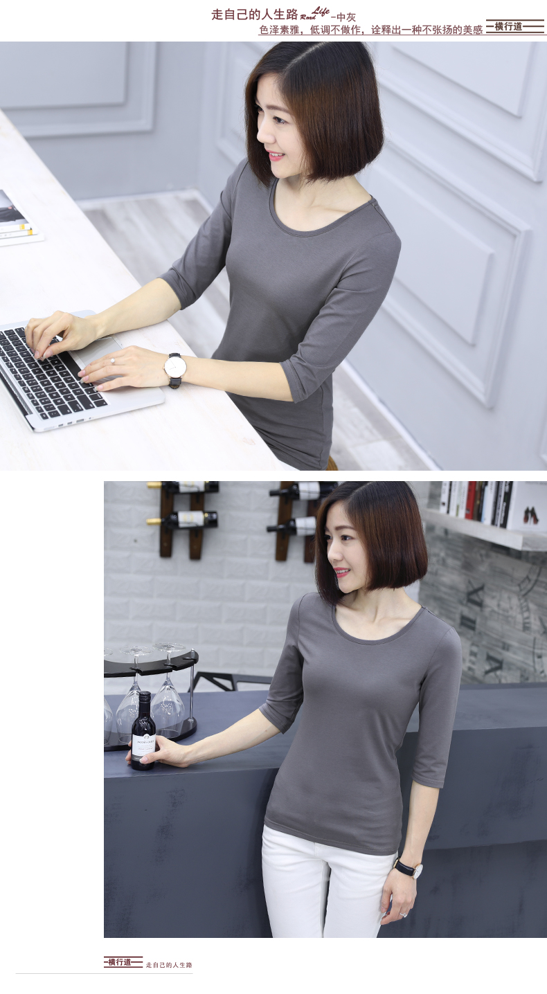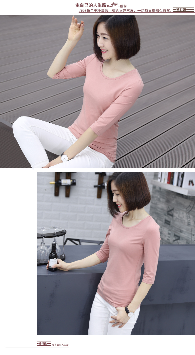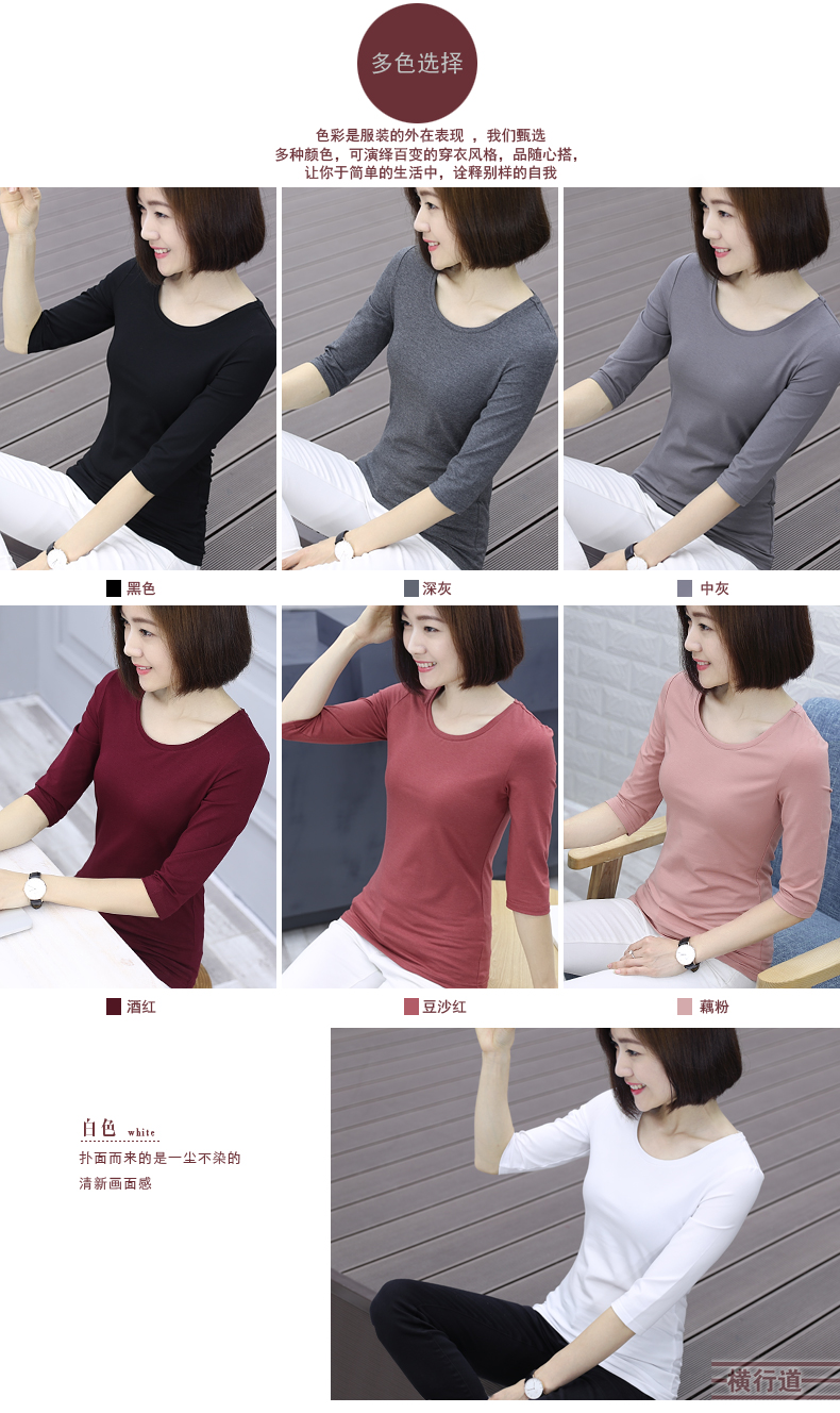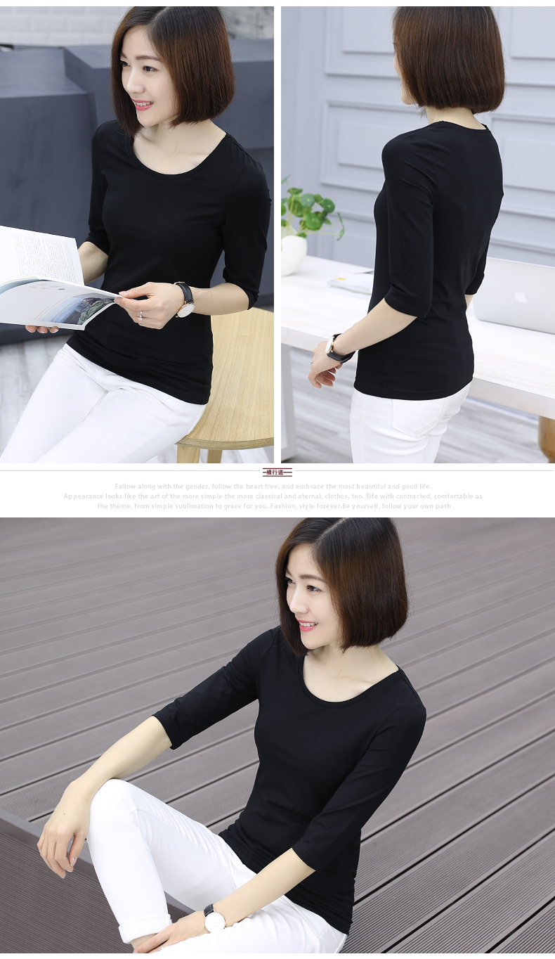 2019秋裝新款五分袖中袖黑色修身打底衫七分袖t恤女裝大碼上衣服1入