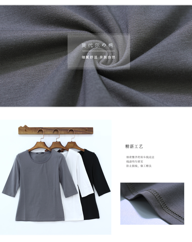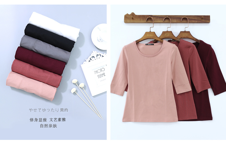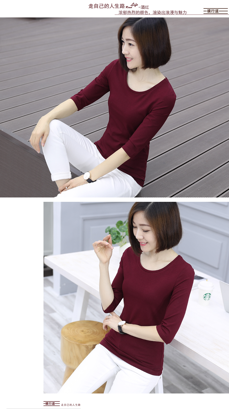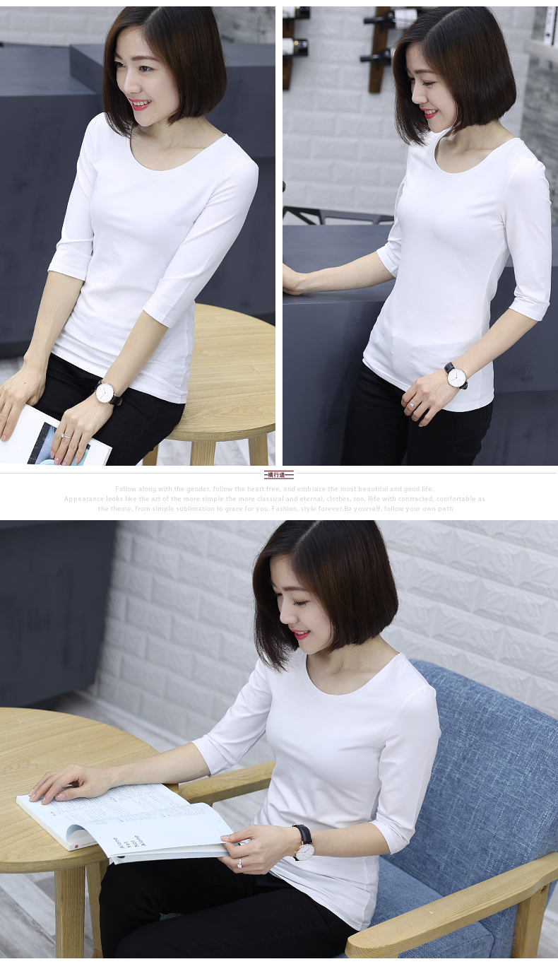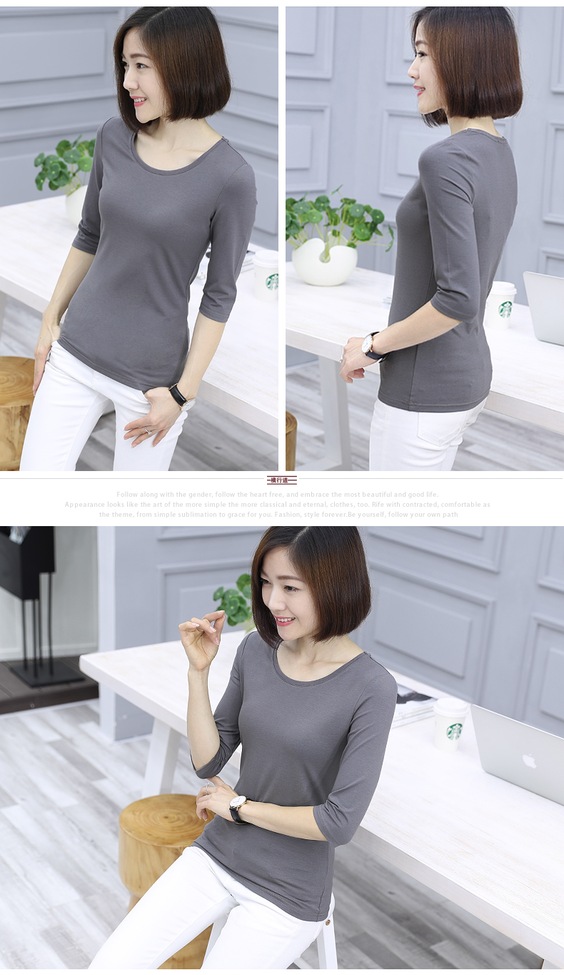 2019秋裝新款五分袖中袖黑色修身打底衫七分袖t恤女裝大碼上衣服1入