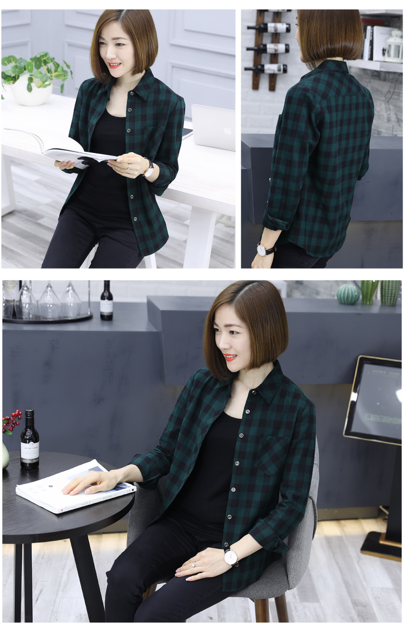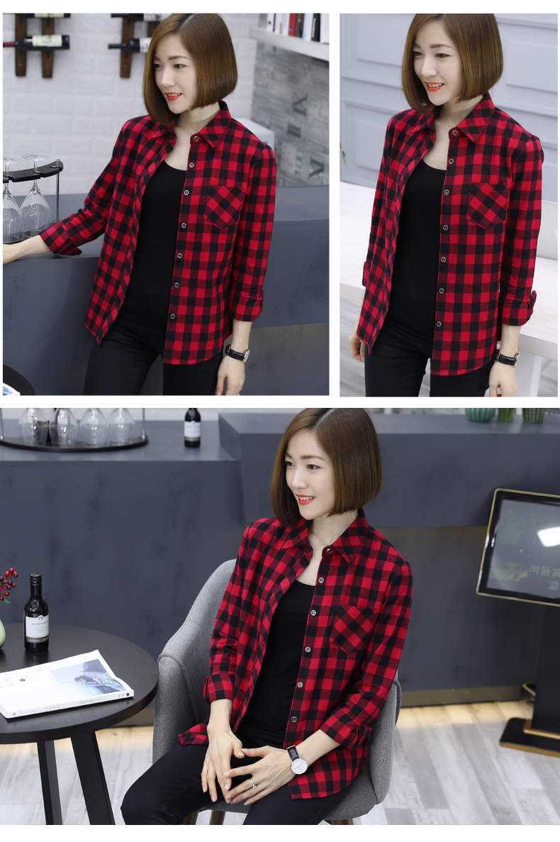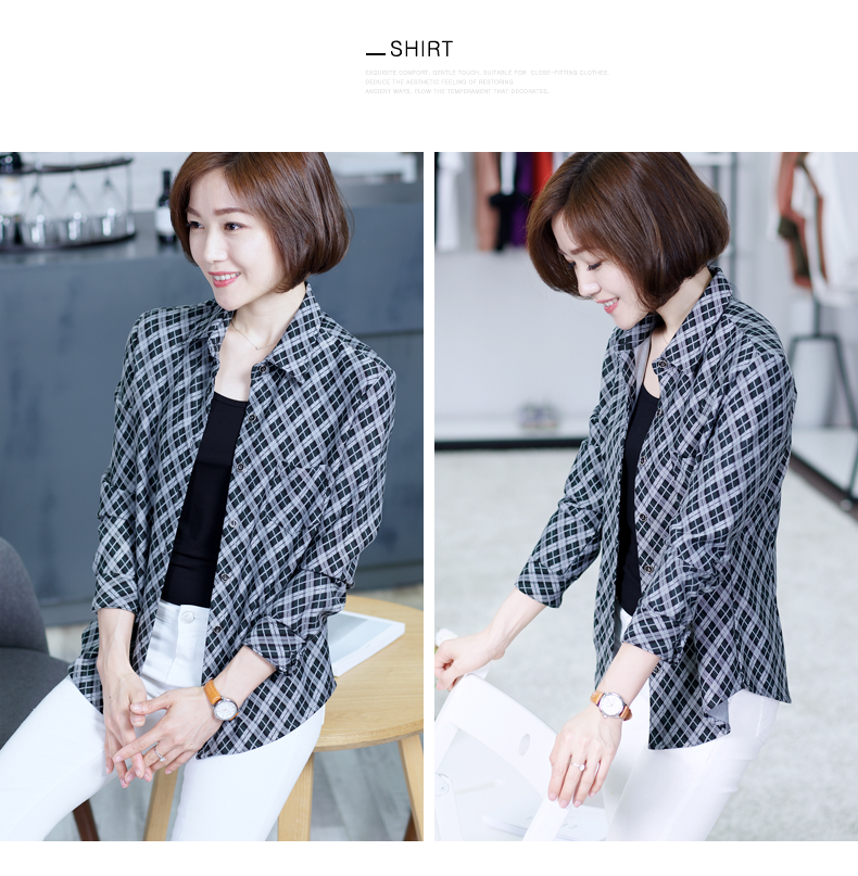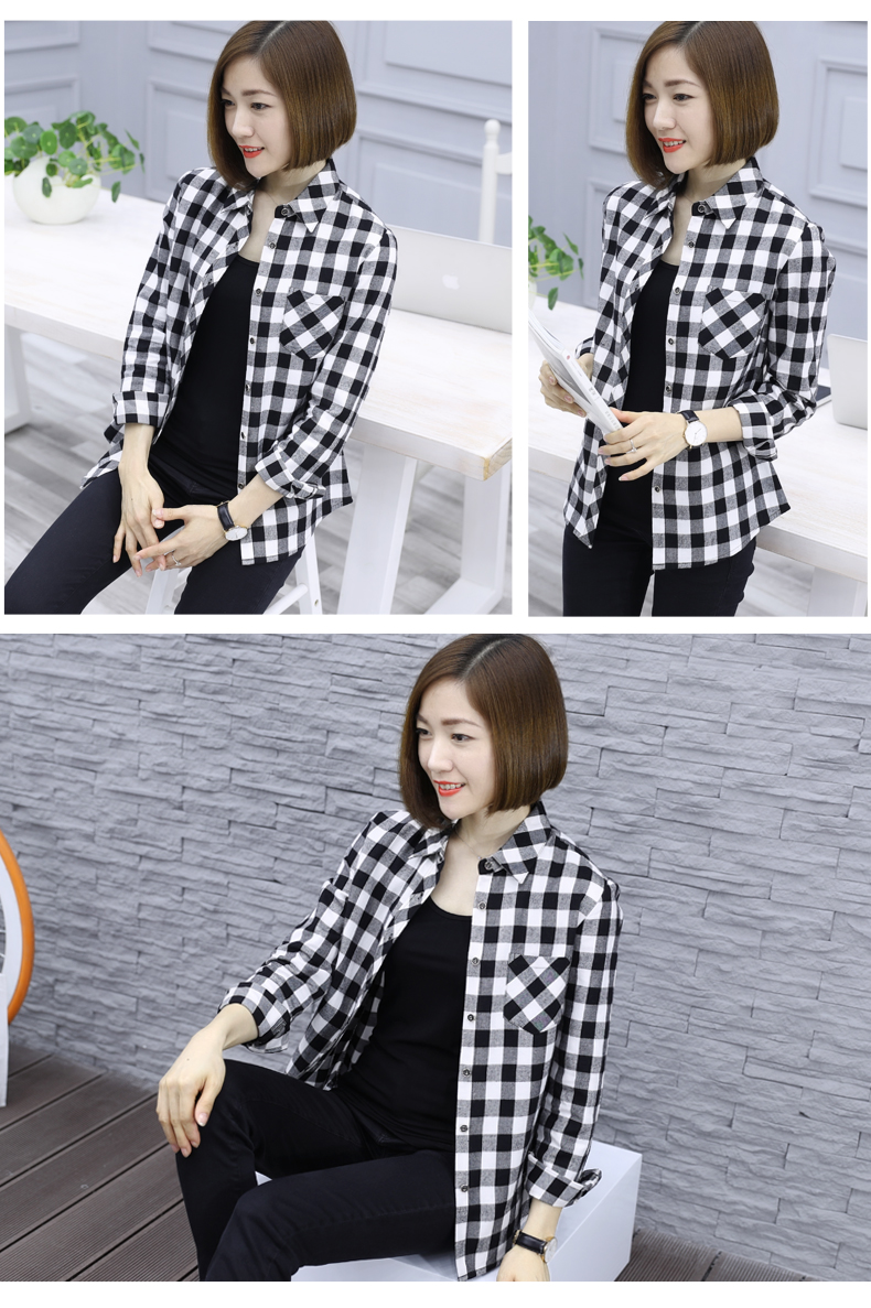 2019韓版秋裝方格襯衫薄款黑白格子外套女士休閑長袖襯衣寬松上衣1入