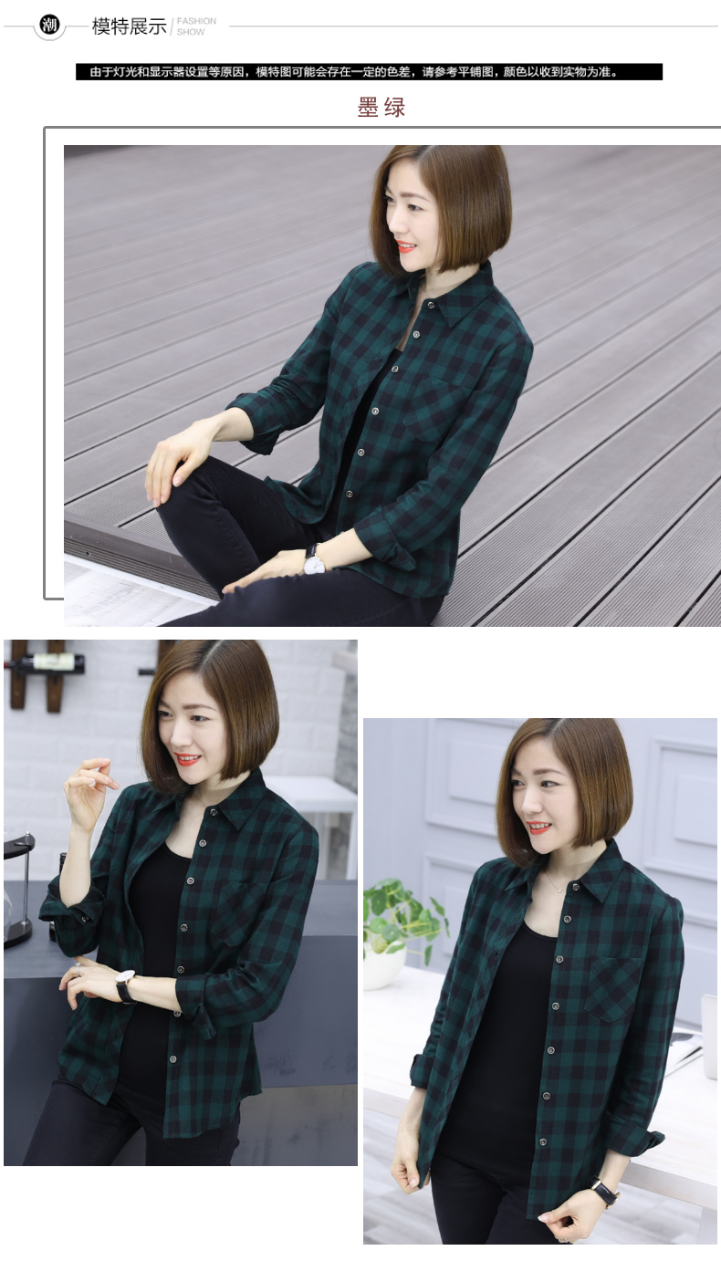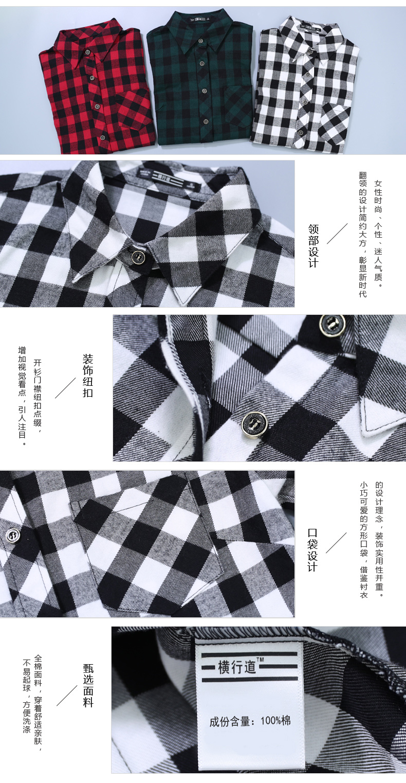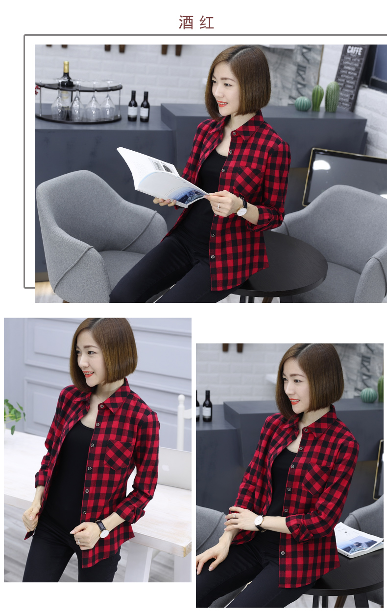 2019韓版秋裝方格襯衫薄款黑白格子外套女士休閑長袖襯衣寬松上衣1入