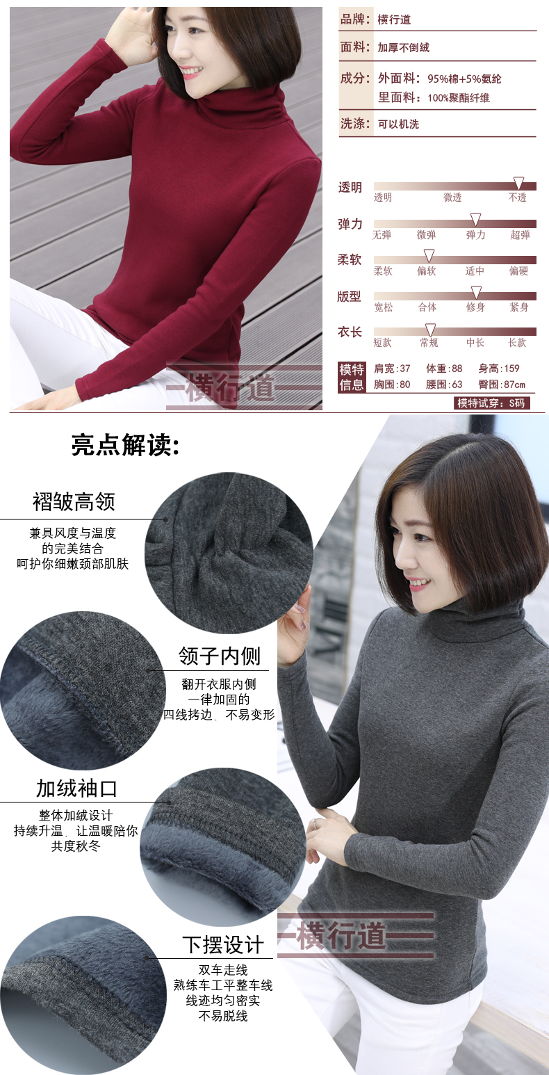 2019冬裝加絨堆堆高領棉純色打底衫套頭秋裝上衣服長袖韓版女裝1入