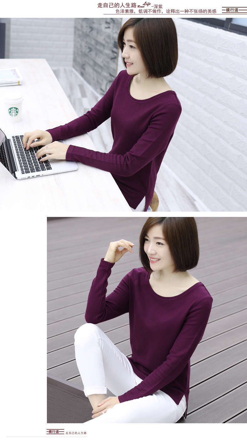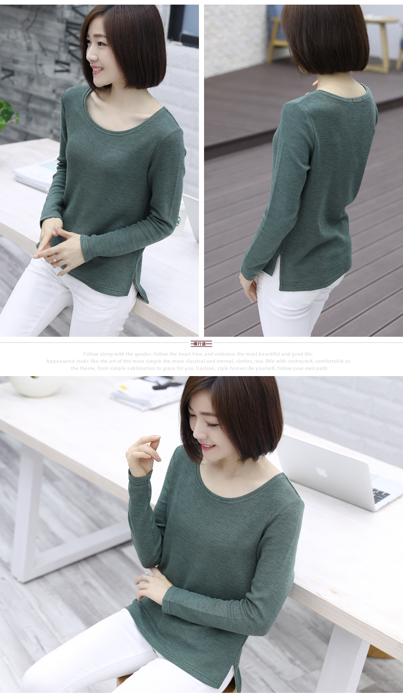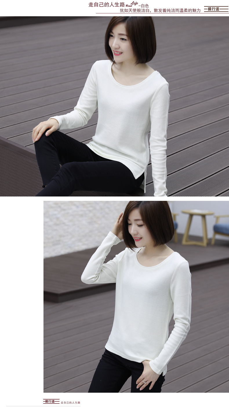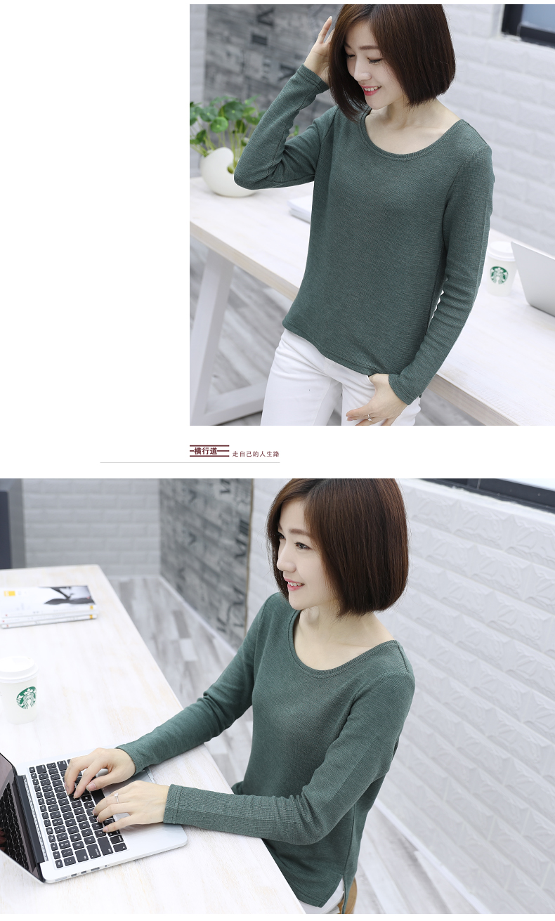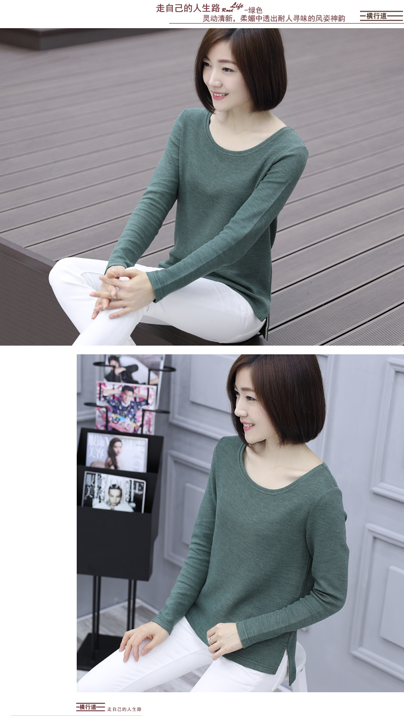2019秋裝新款圓領寬松針織打底衫長袖大碼女裝女士上衣服t恤外穿1入