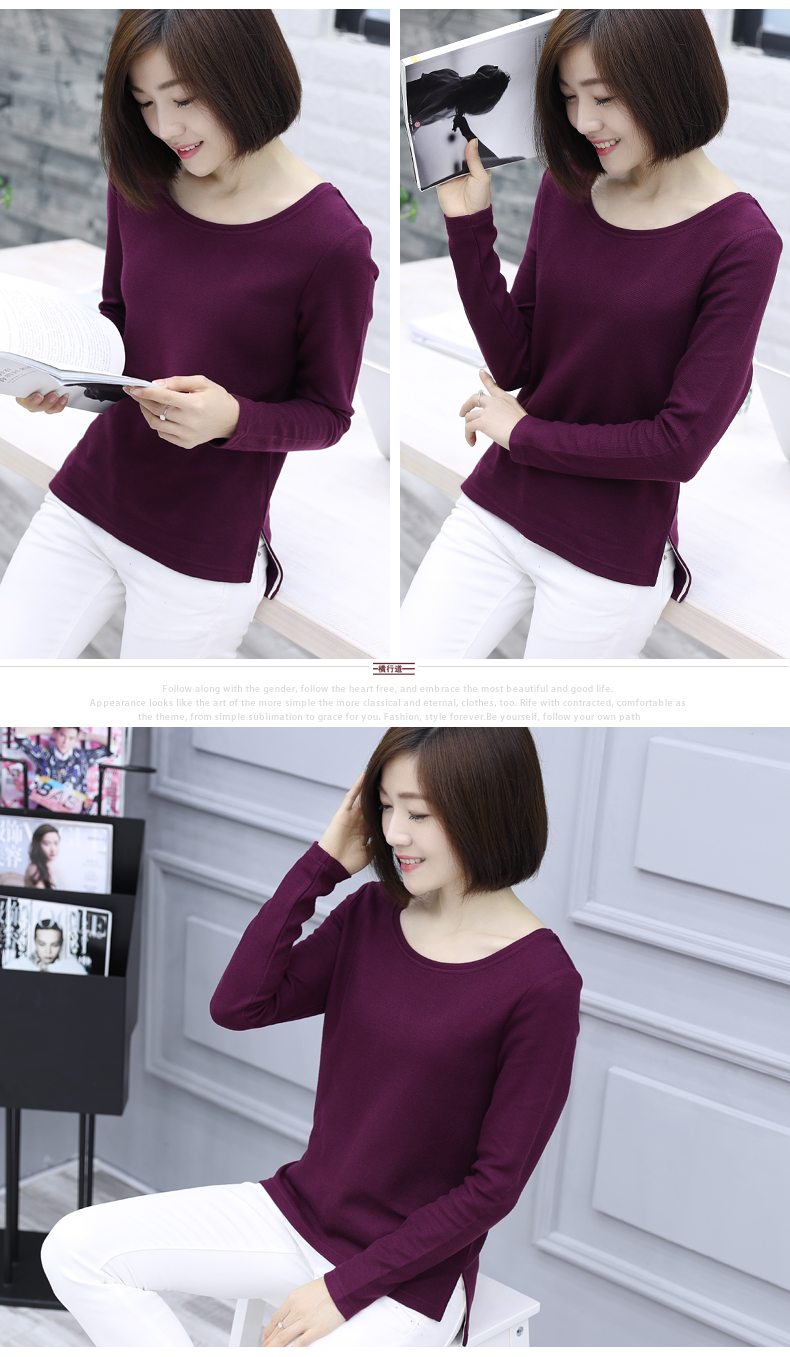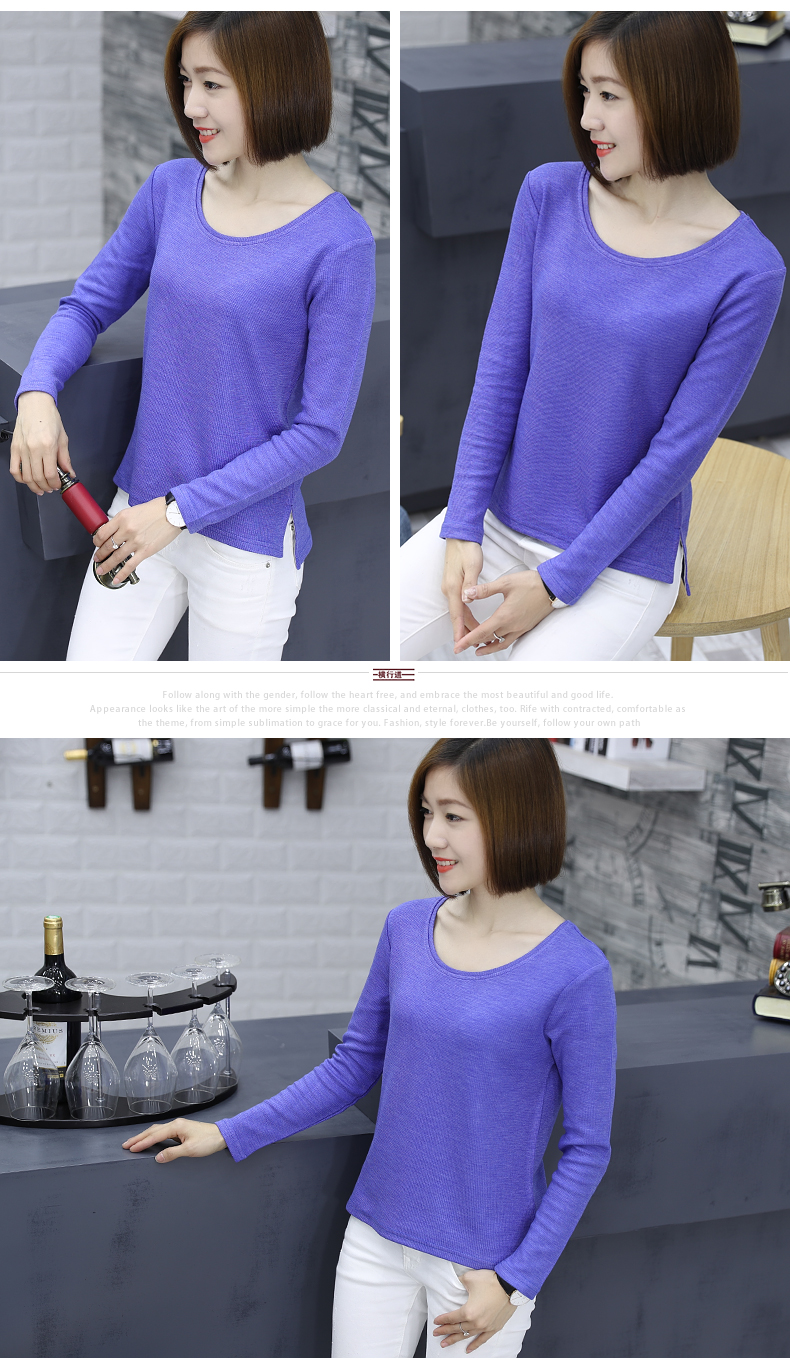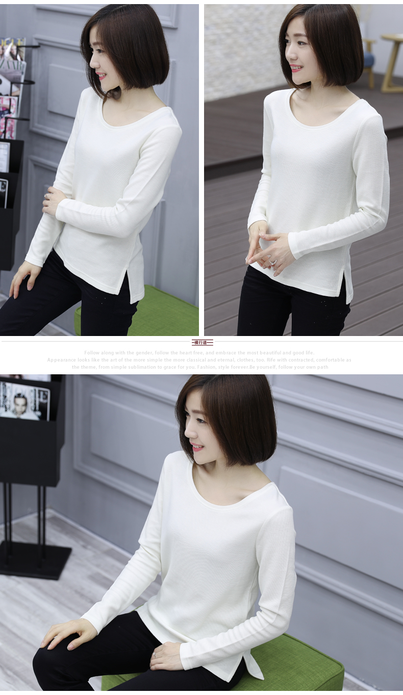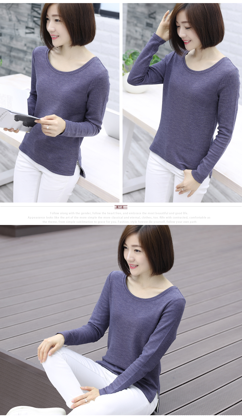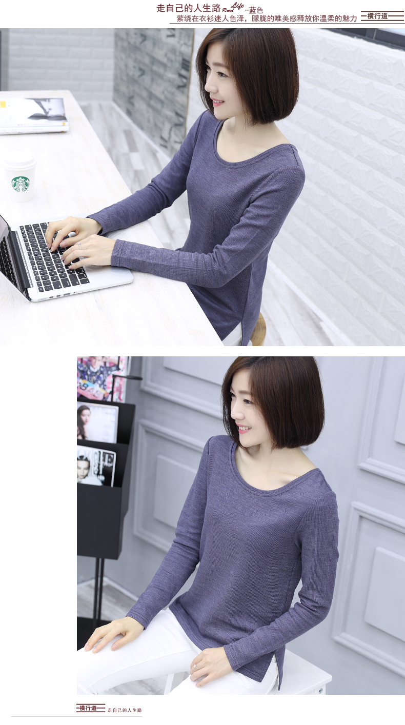 2019秋裝新款圓領寬松針織打底衫長袖大碼女裝女士上衣服t恤外穿1入