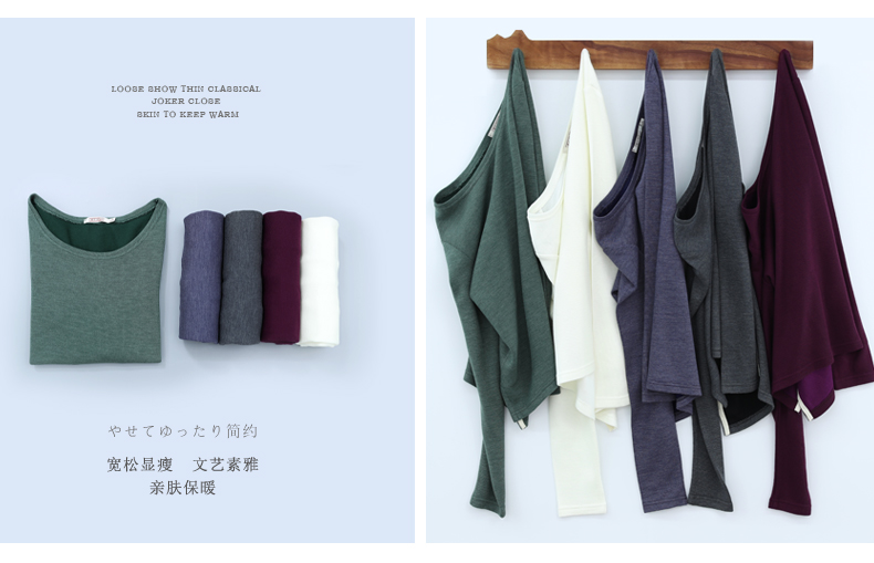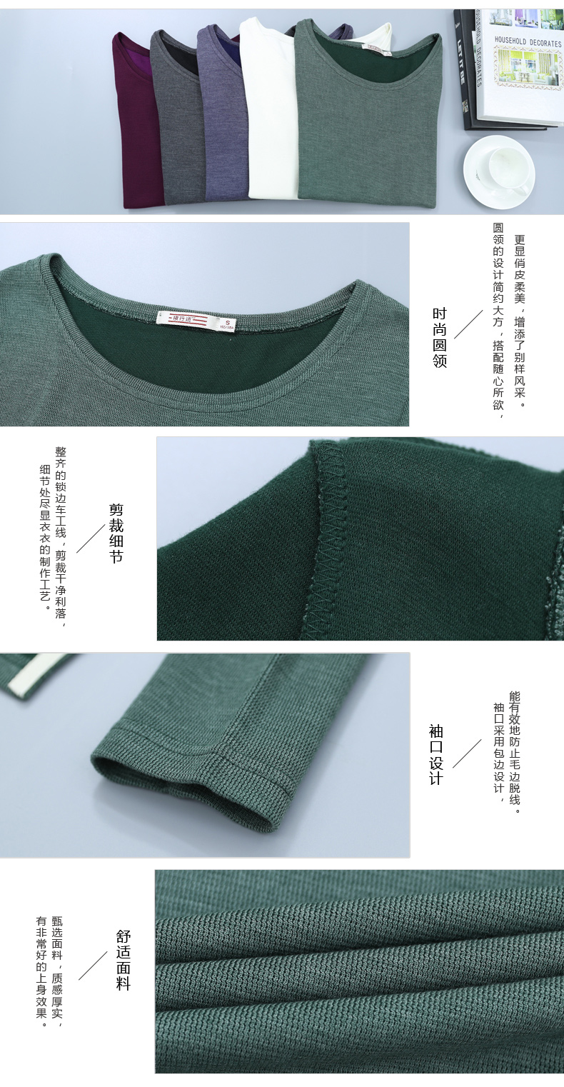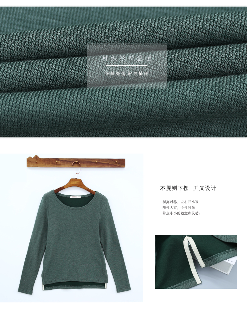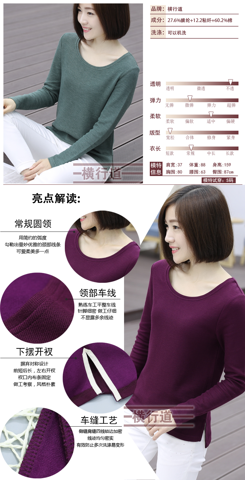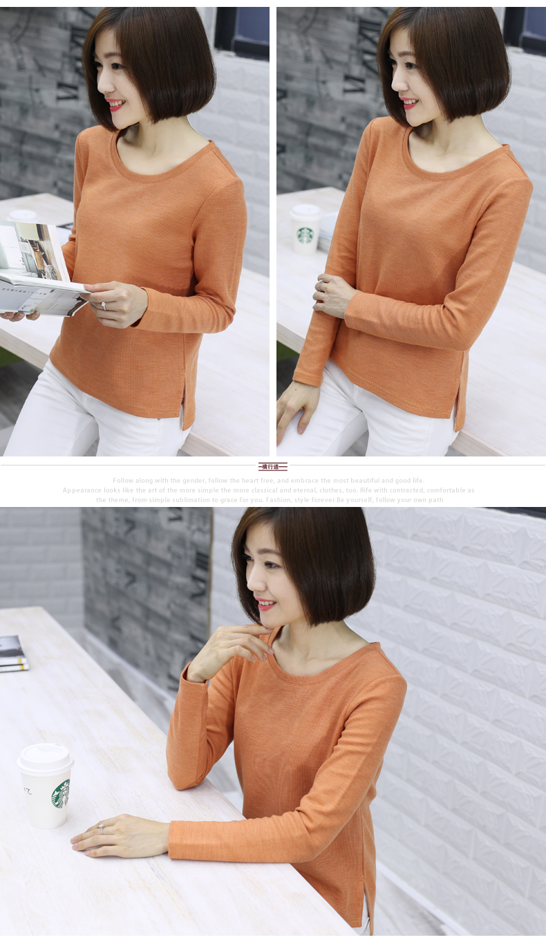 2019秋裝新款圓領寬松針織打底衫長袖大碼女裝女士上衣服t恤外穿1入