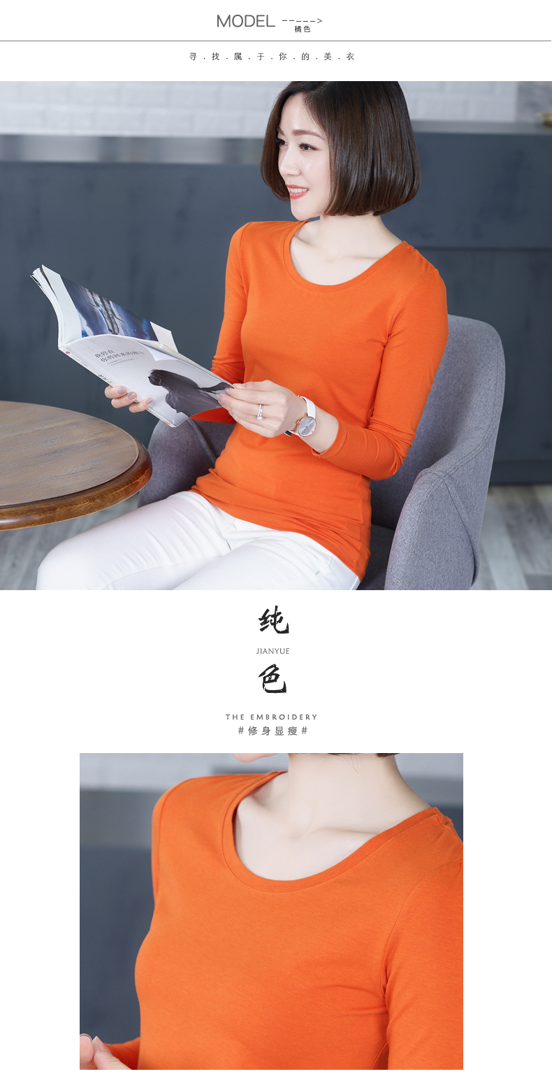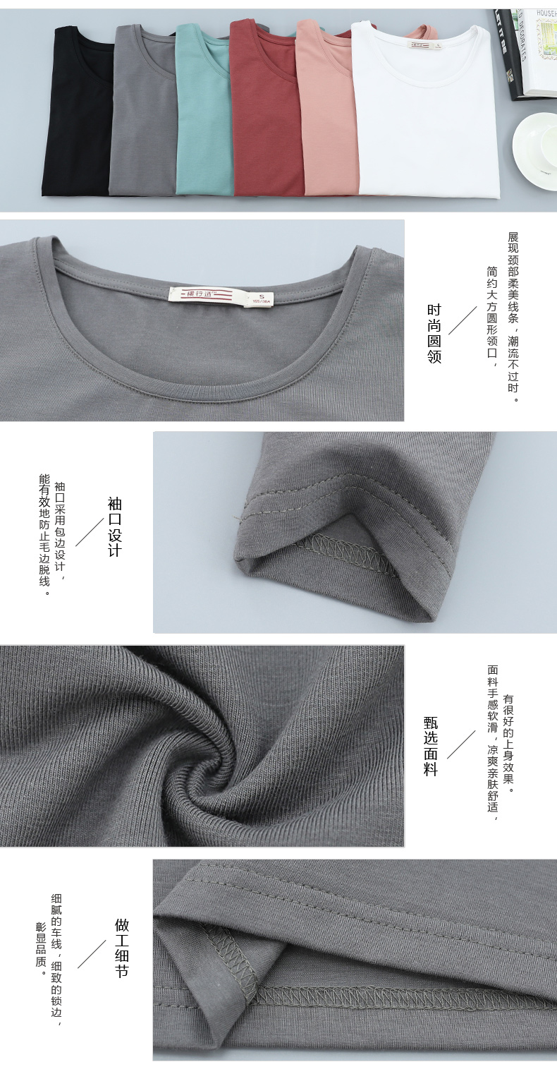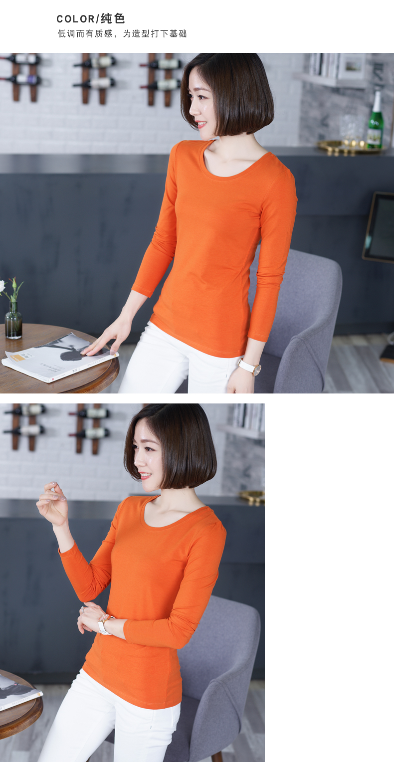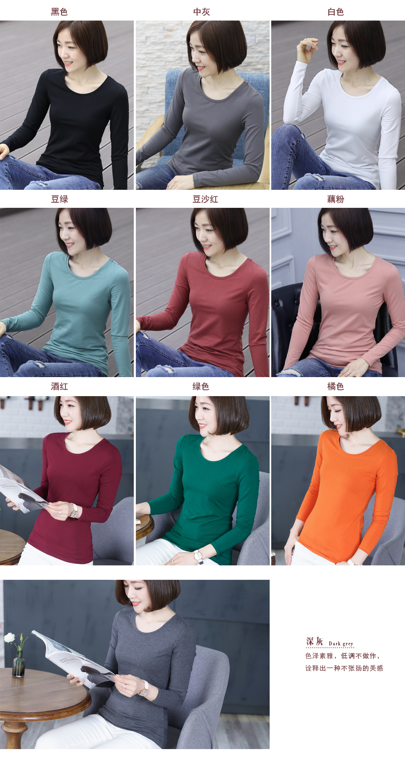 2019秋裝新款大碼莫代爾棉圓領長袖純色上衣服打底衫女裝t恤秋款1入