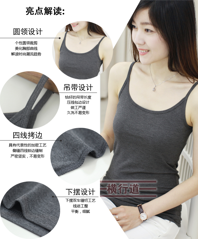 2019夏裝短款性感無袖小吊帶背心女裝黑色純色莫代爾顯瘦打底衫1入