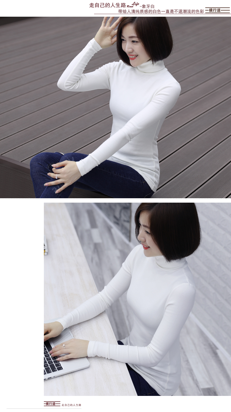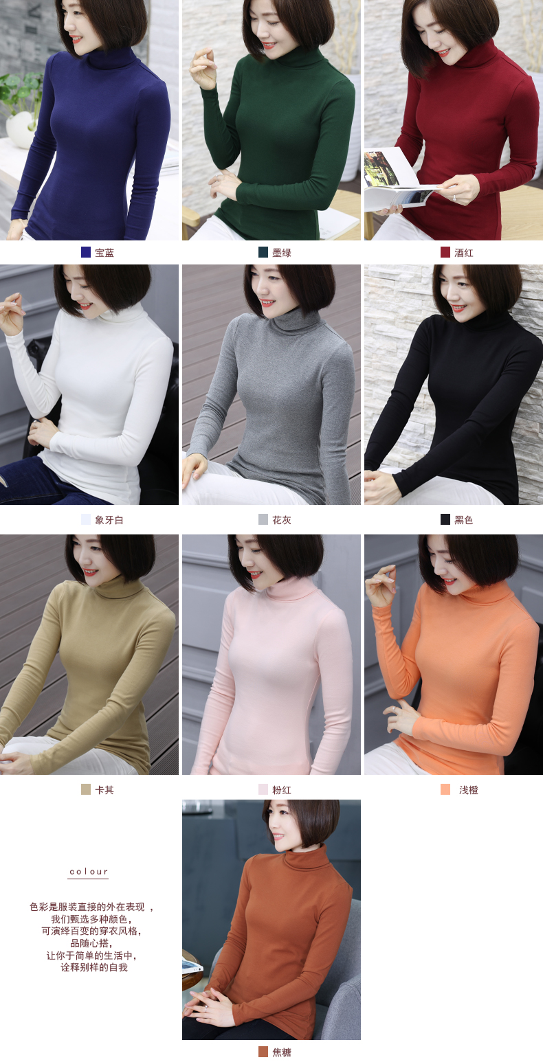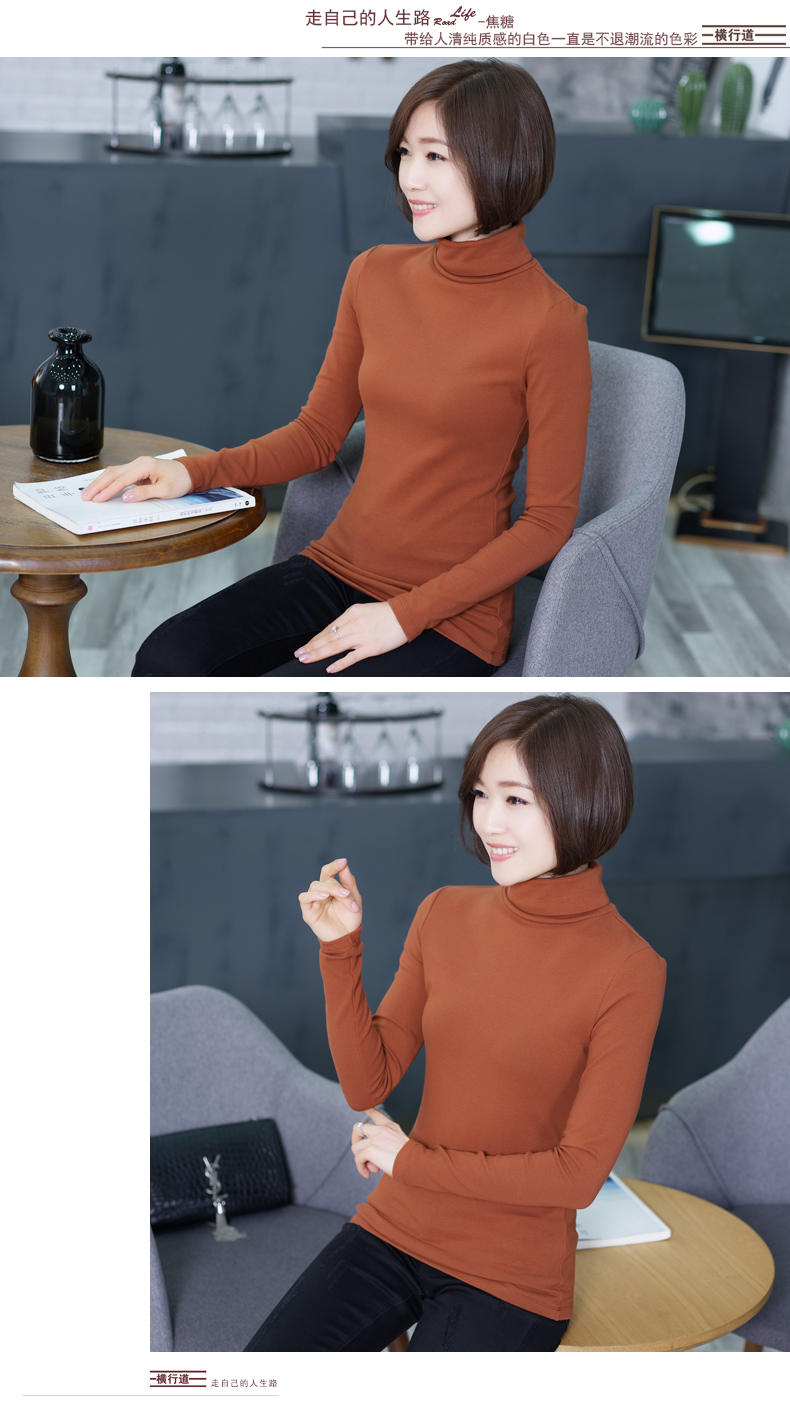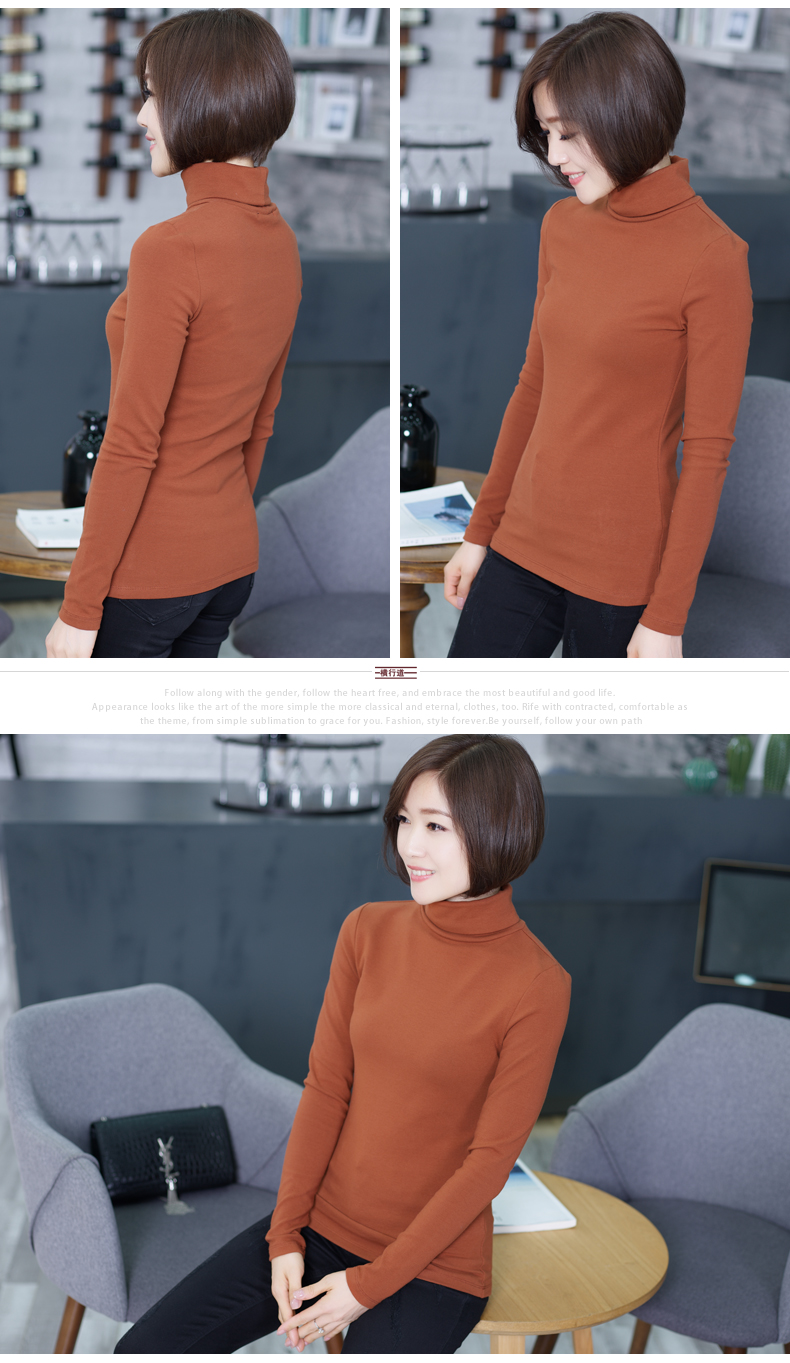 2019春裝新款韓版大碼長袖女裝t恤上衣秋冬裝高領純色加厚打底衫1入