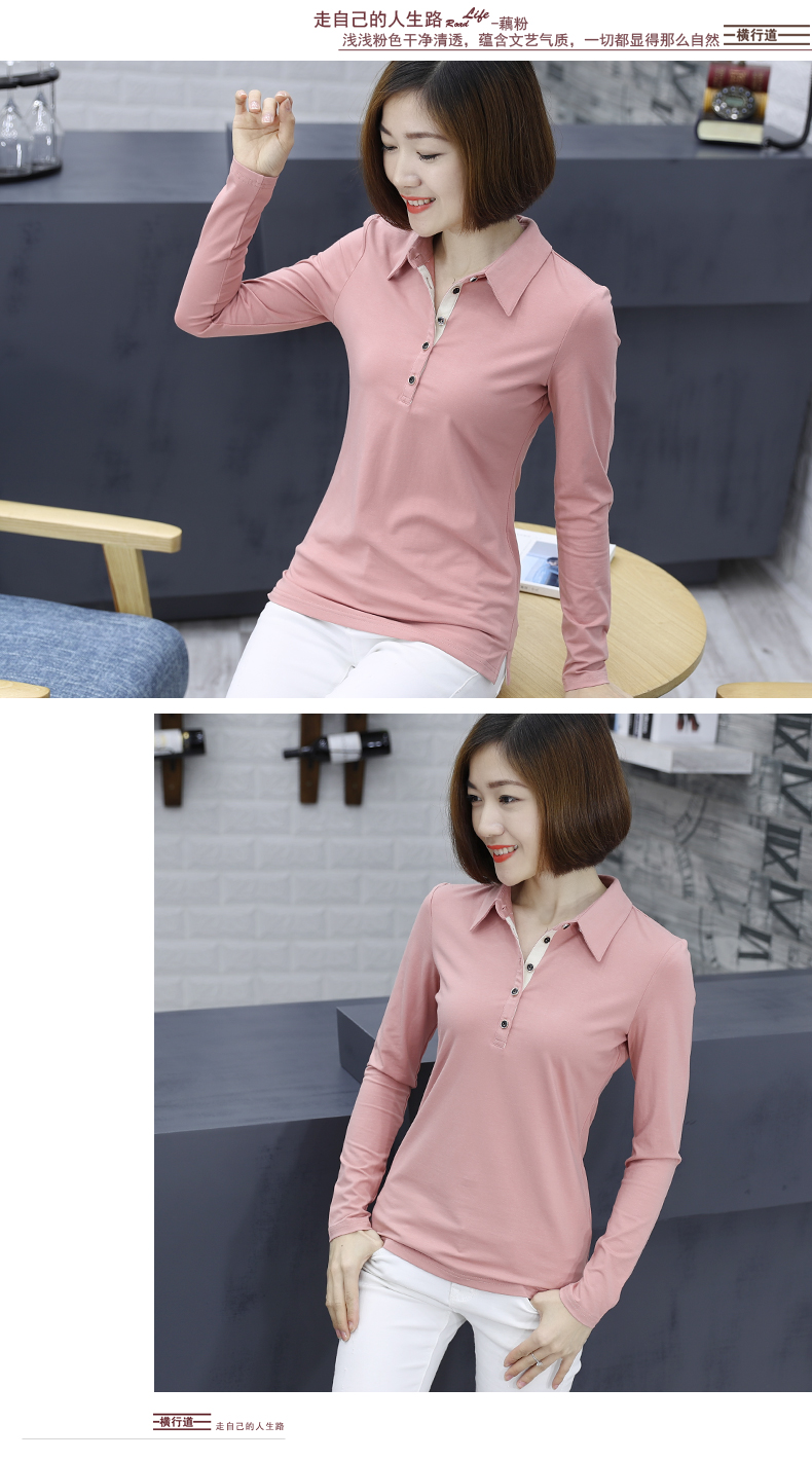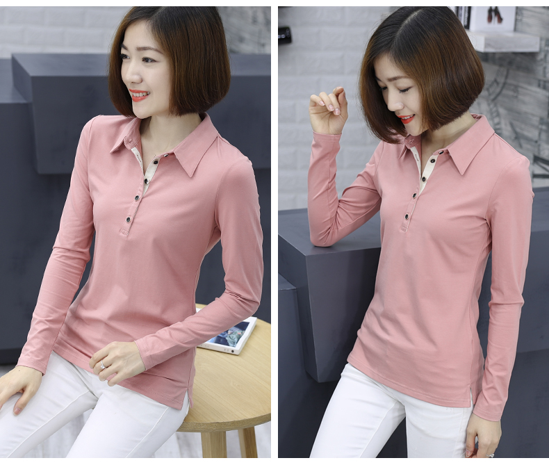2019秋裝新款帶領襯衫有領女裝長袖t恤上衣服翻領外穿黑色打底衫1入