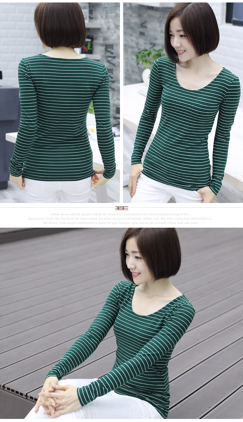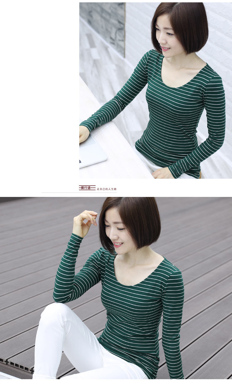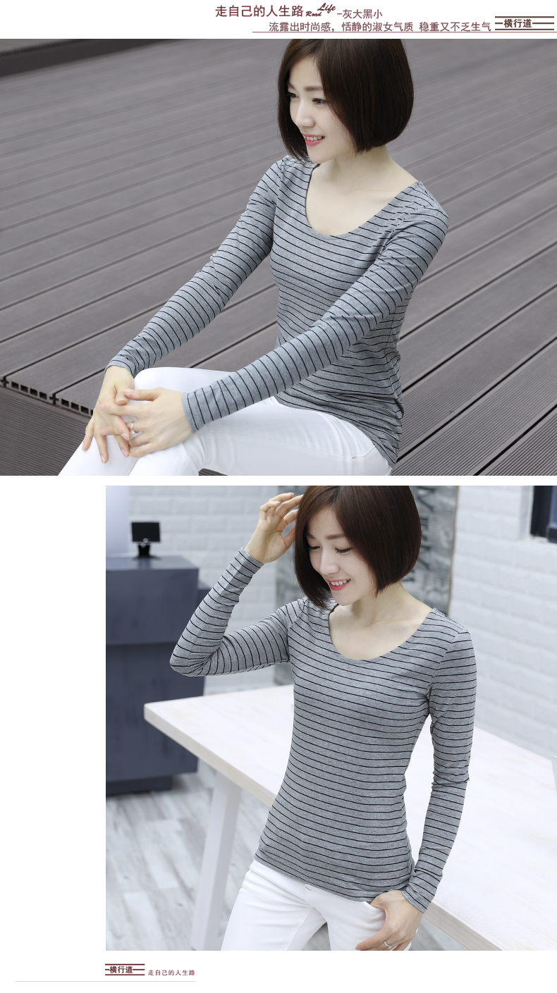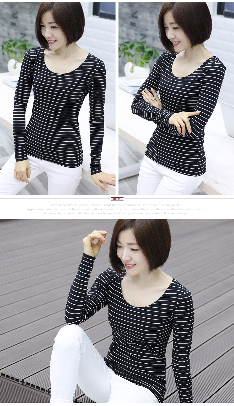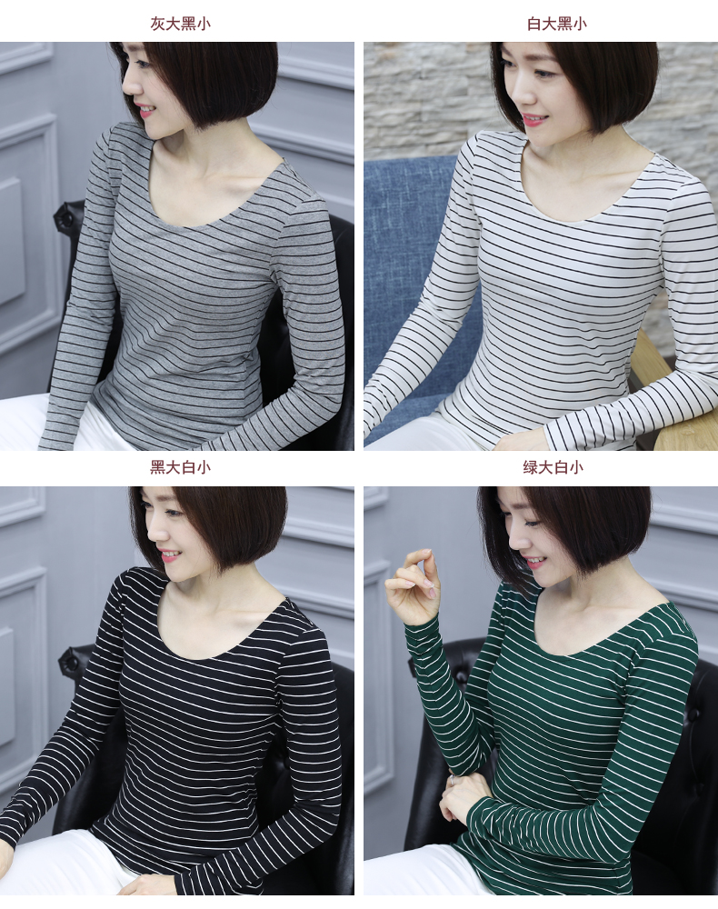 2019秋裝女裝顯瘦黑白條紋長袖女t恤胖mm大碼莫代爾棉女士打底衫1入