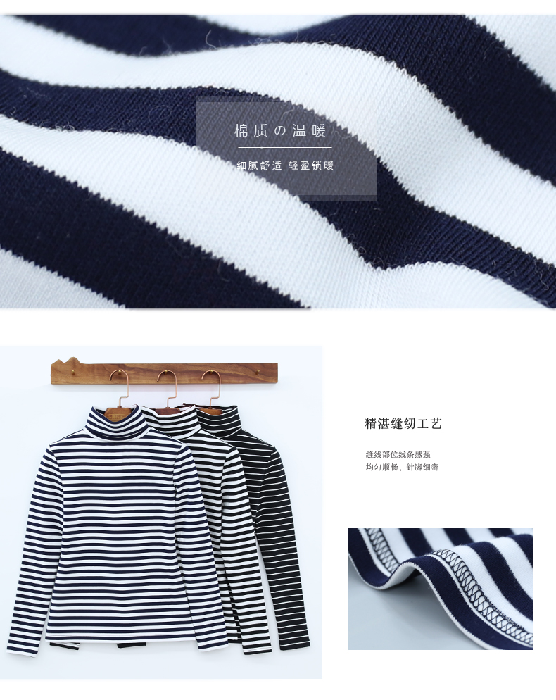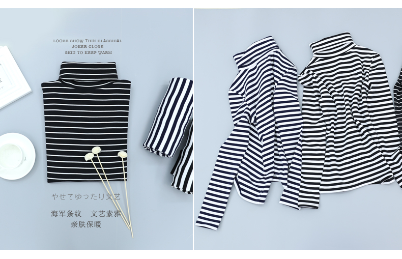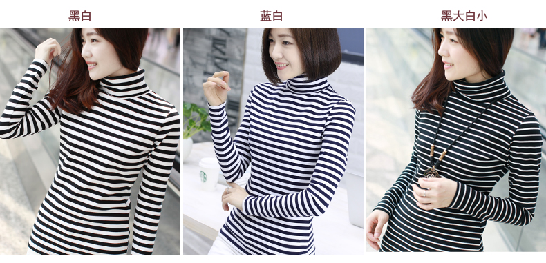 19秋裝秋冬裝大碼女裝保暖加厚長袖條紋T恤韓版高領打底衫上衣服1入