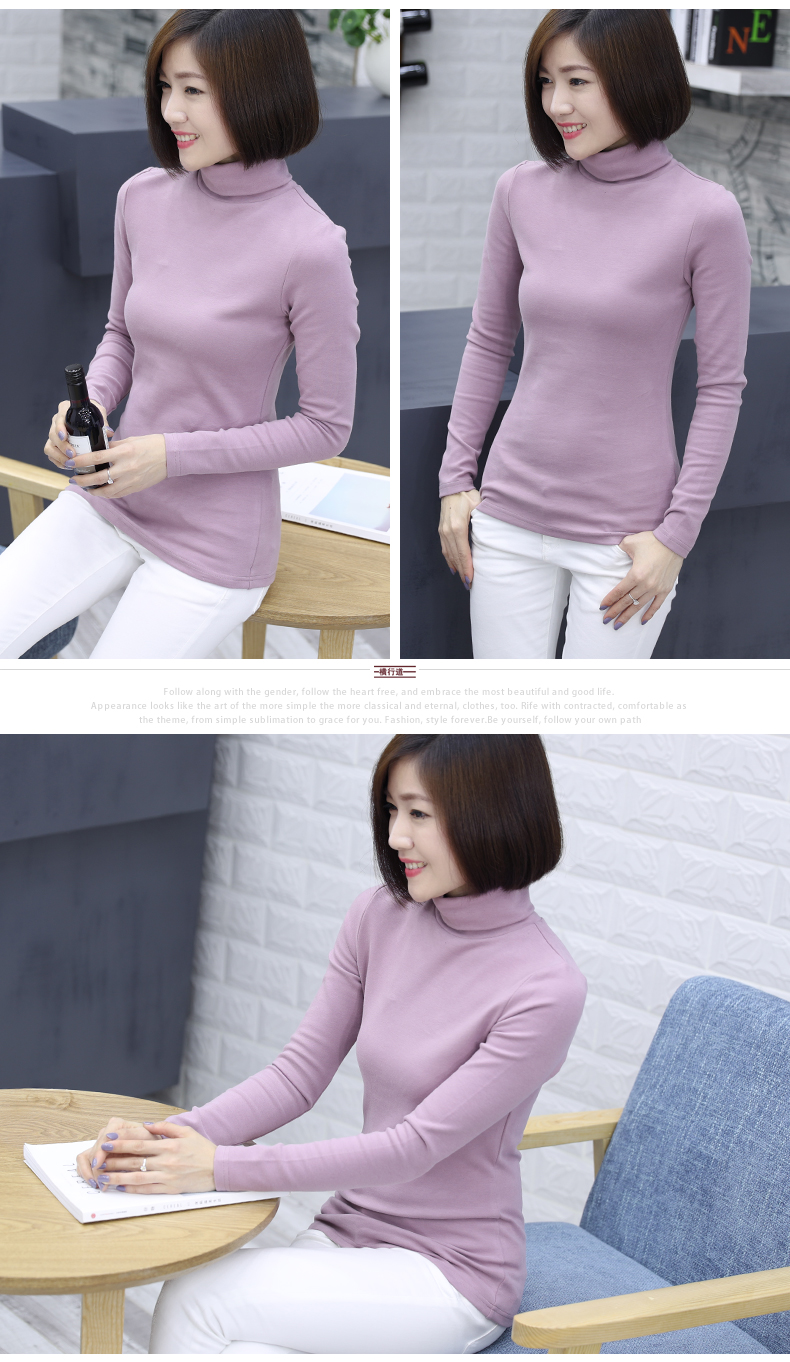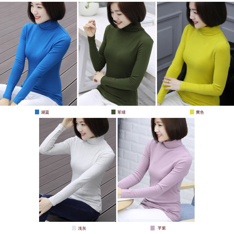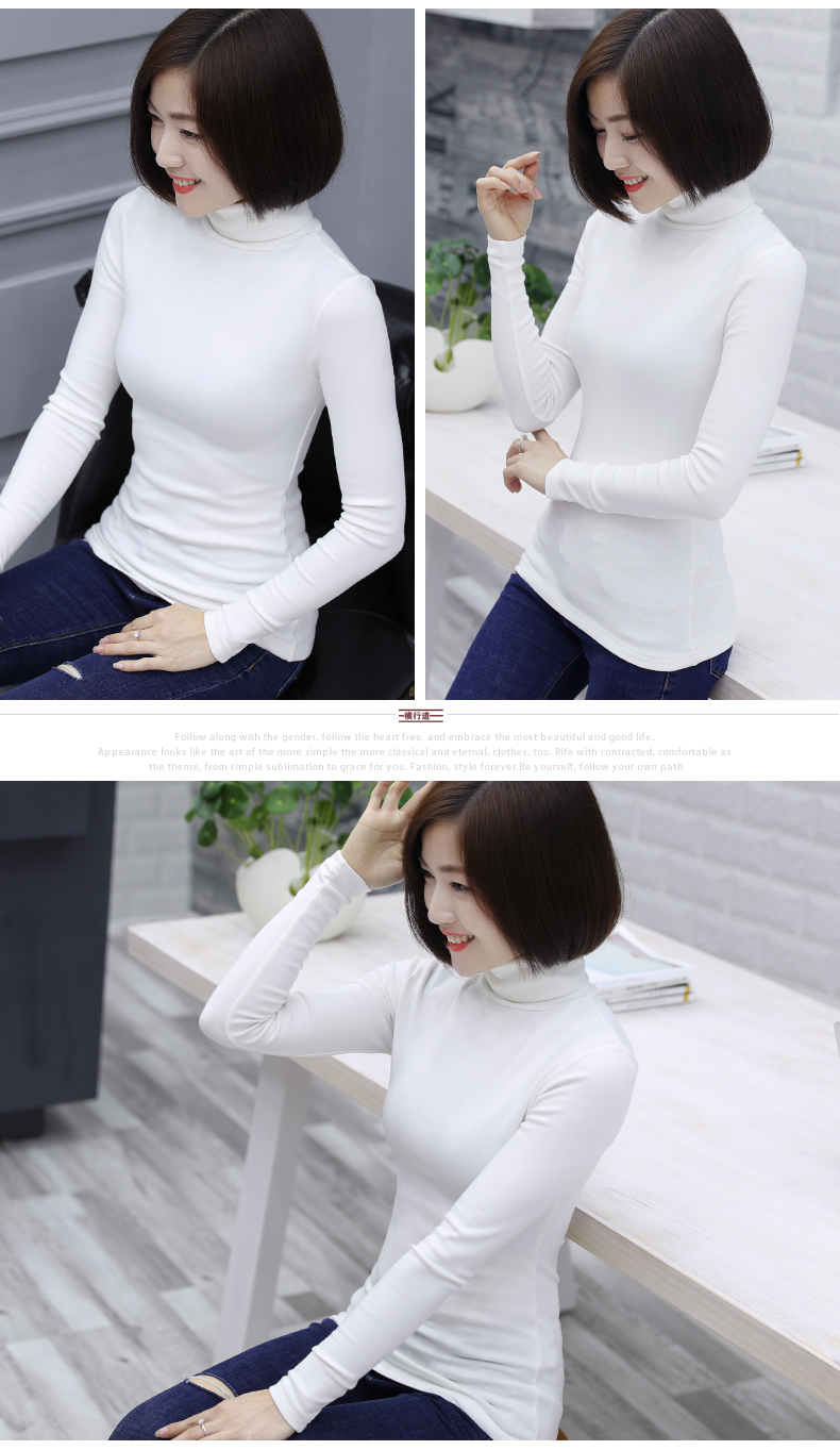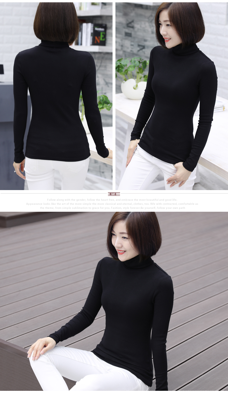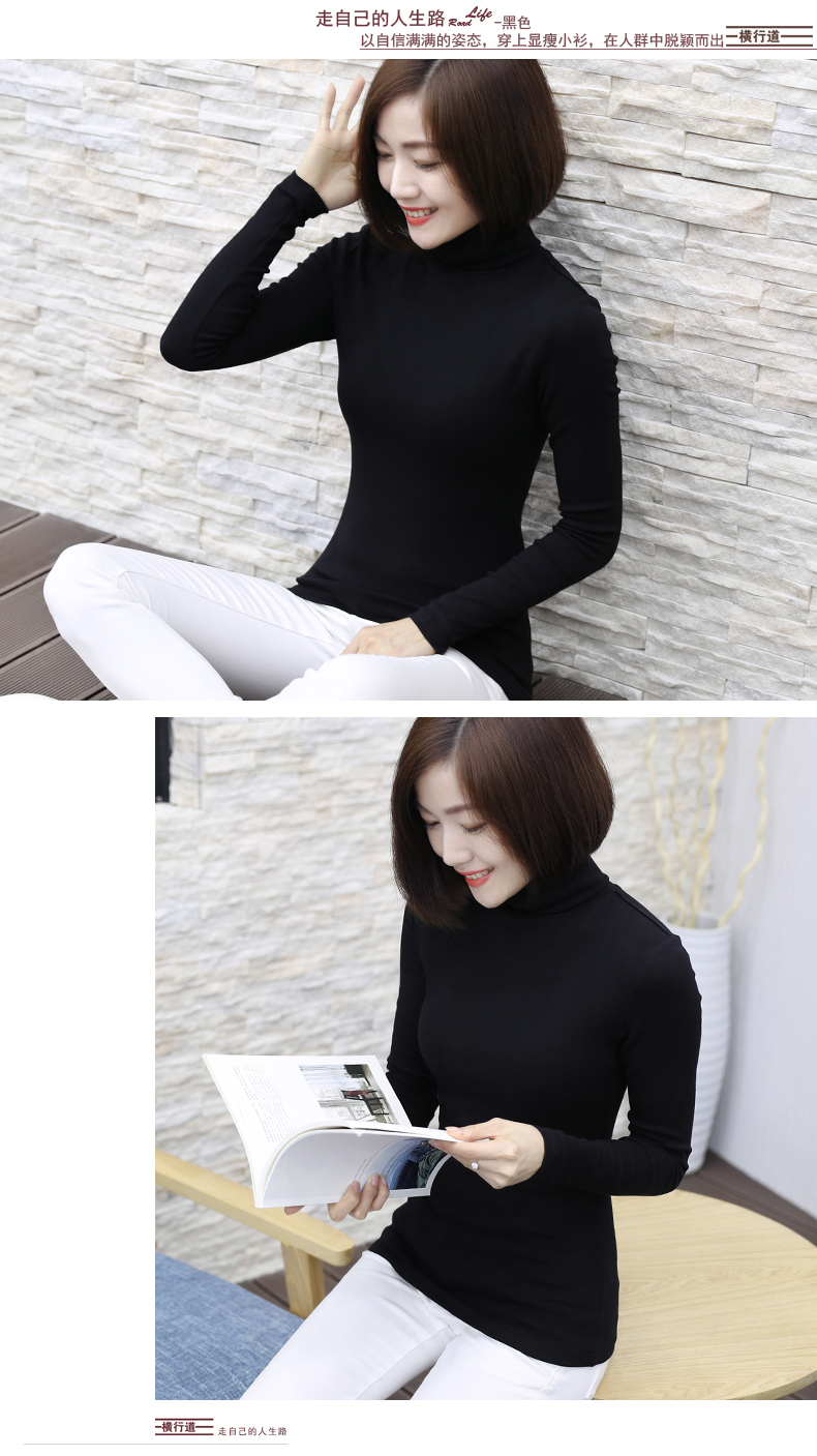 2019春秋裝新款大碼體恤韓版女裝純色高領上衣服厚打底衫長袖t恤1入