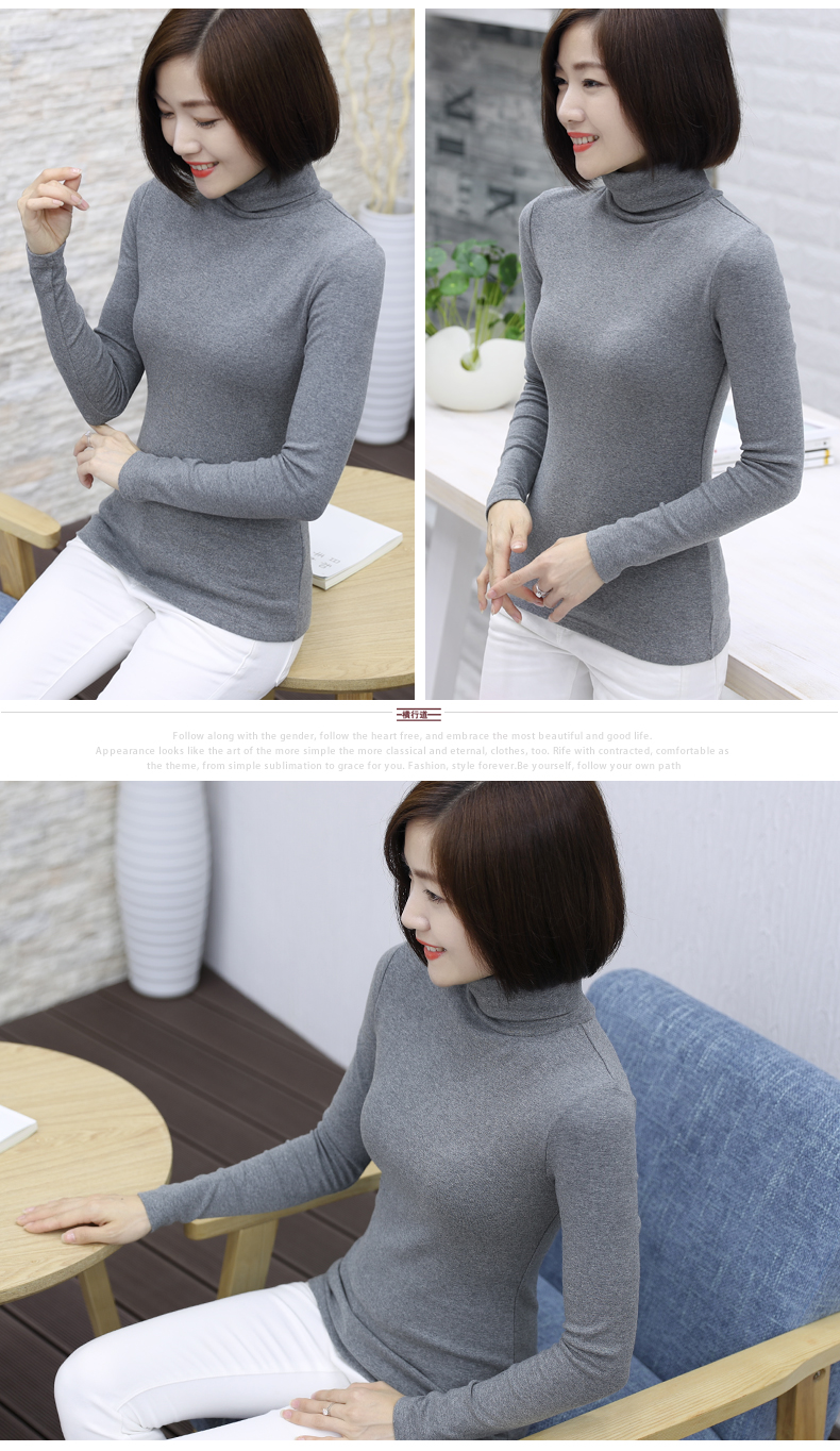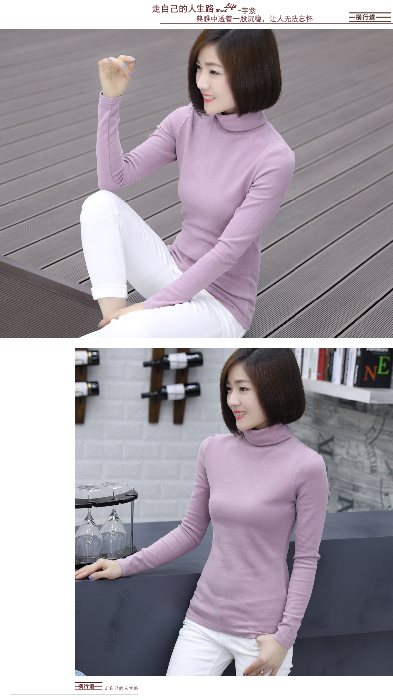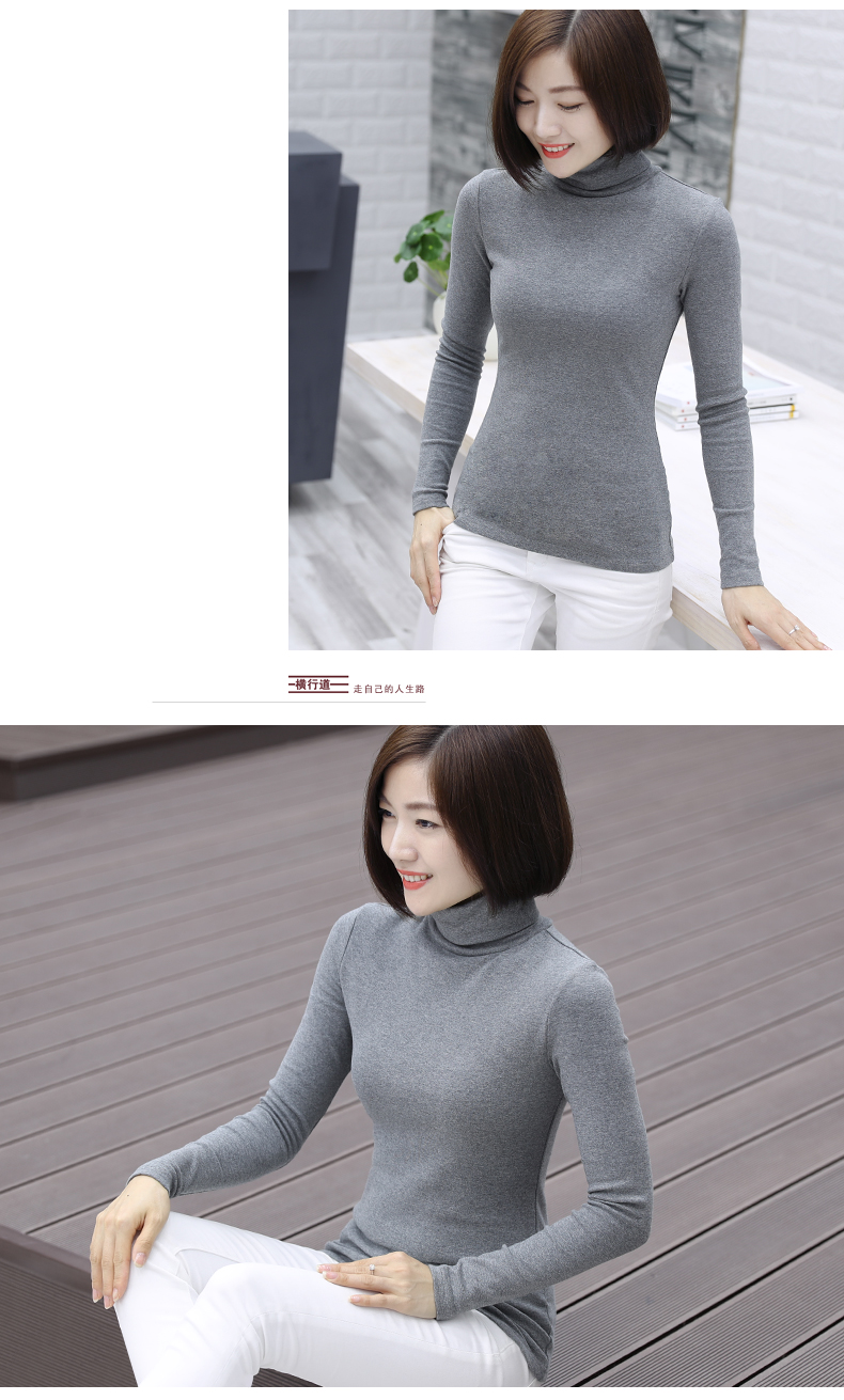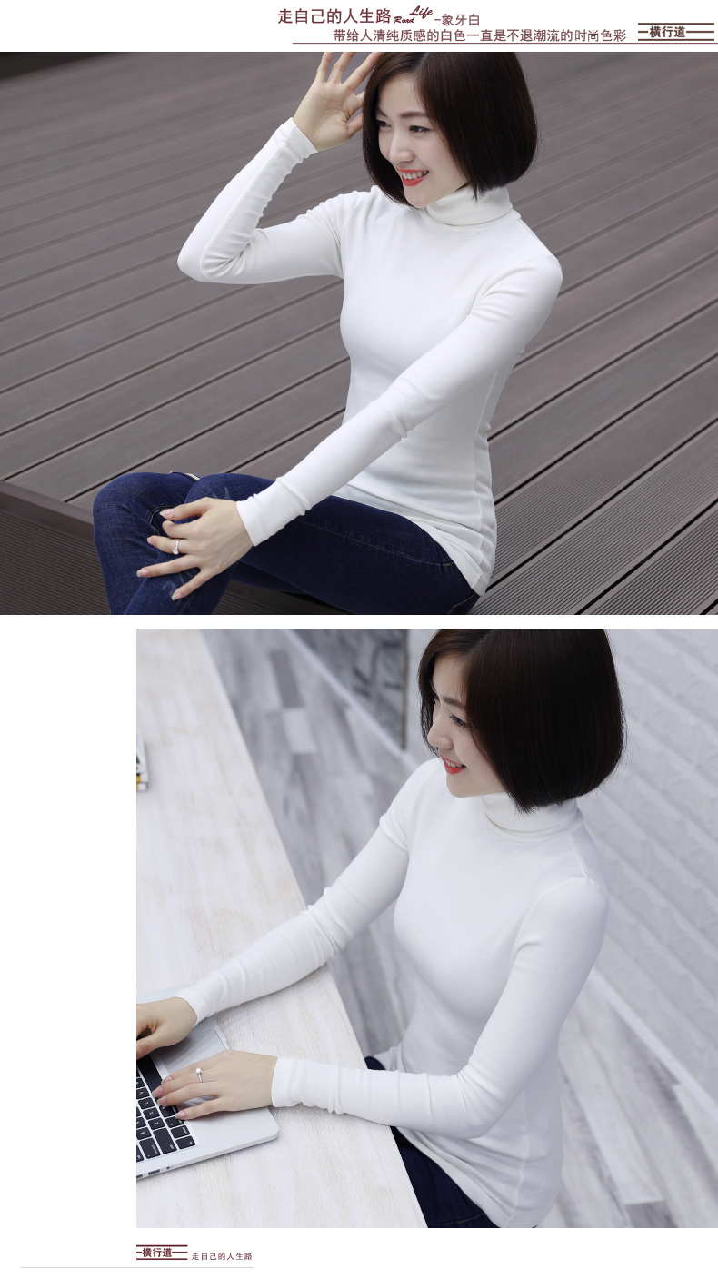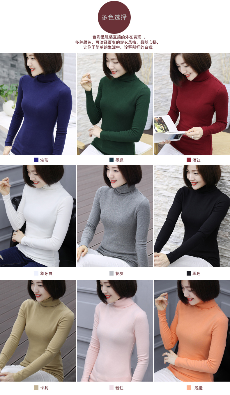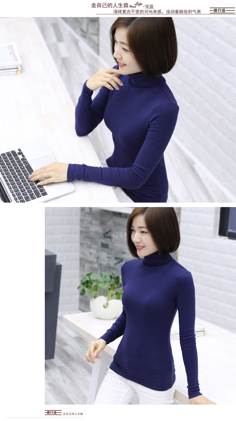 2019春秋裝新款大碼體恤韓版女裝純色高領上衣服厚打底衫長袖t恤1入