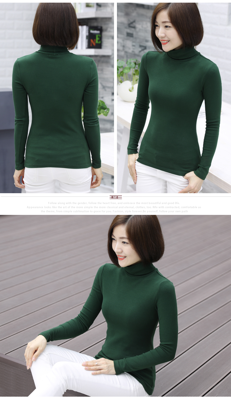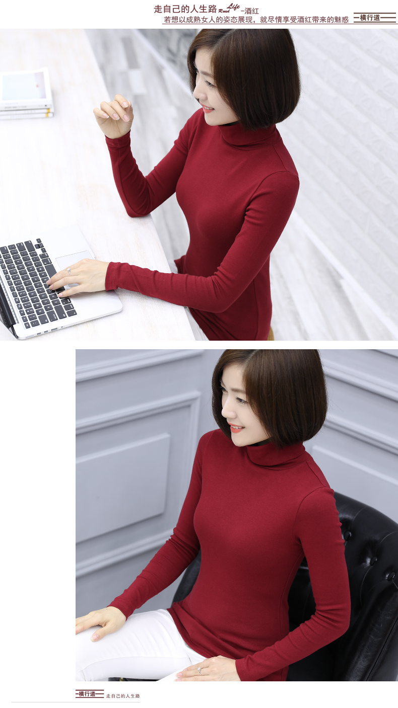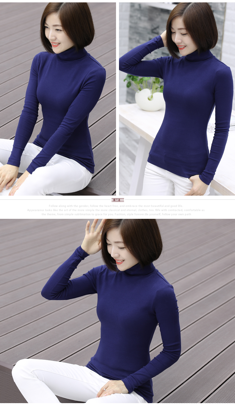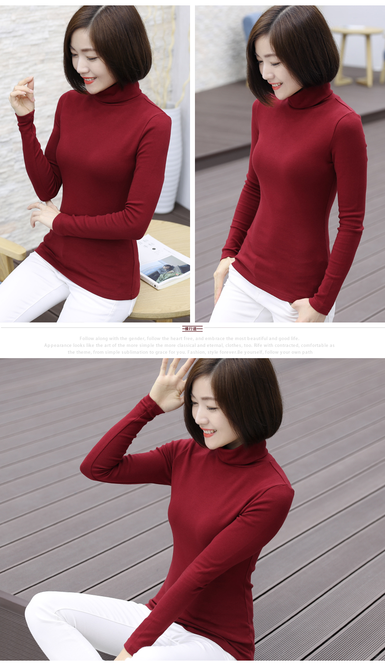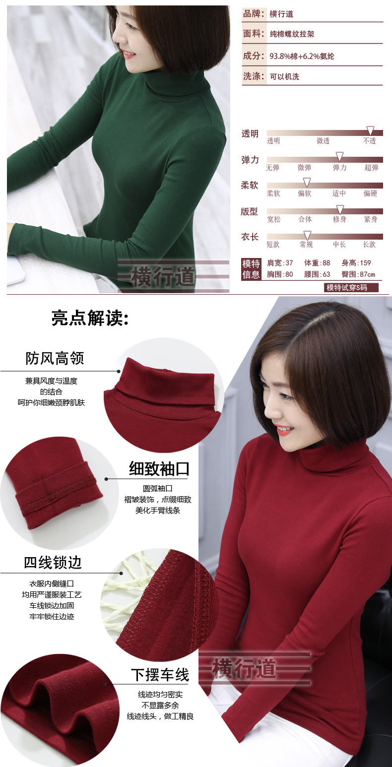 2019春秋裝新款大碼體恤韓版女裝純色高領上衣服厚打底衫長袖t恤1入