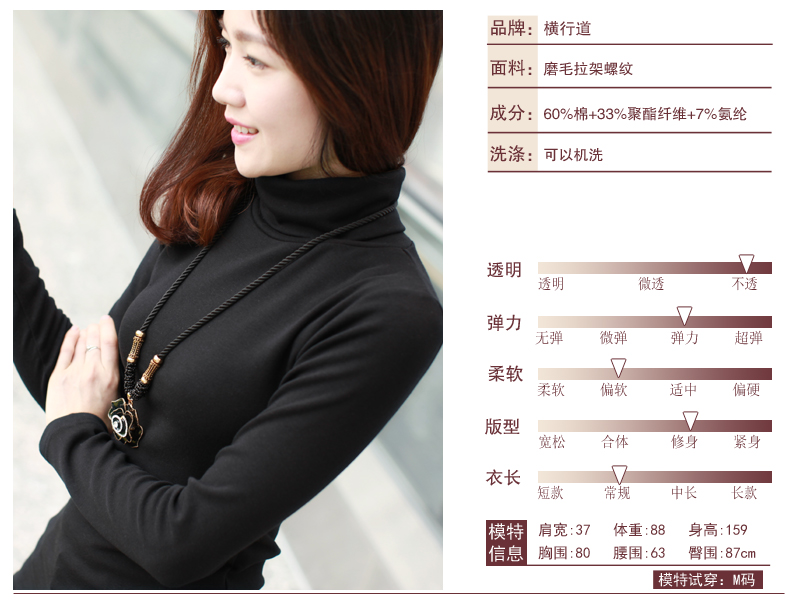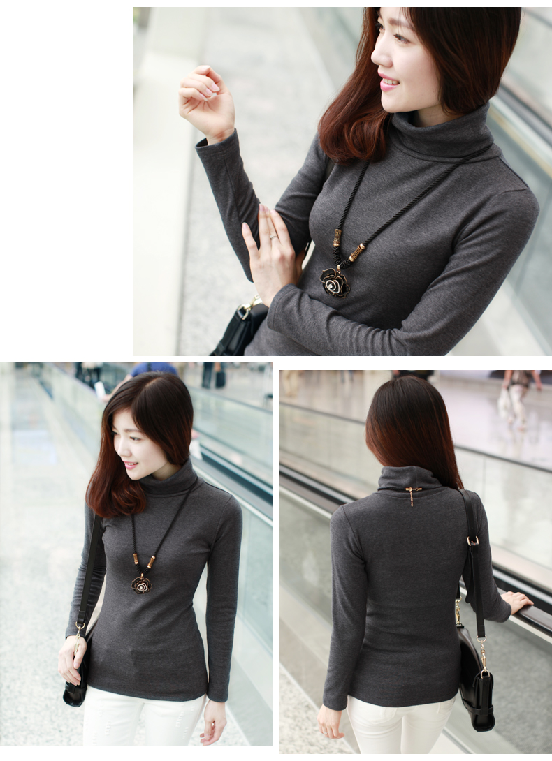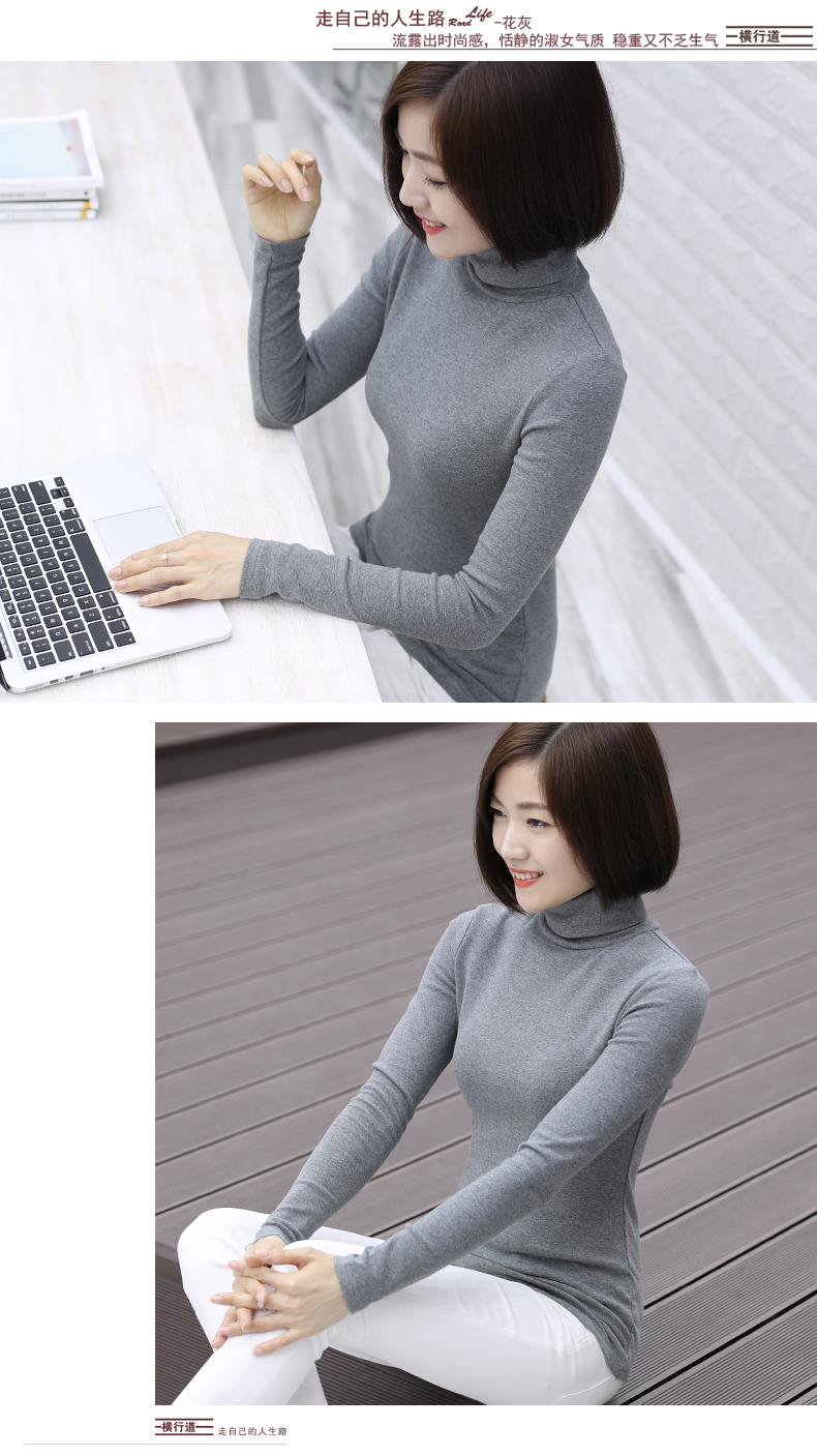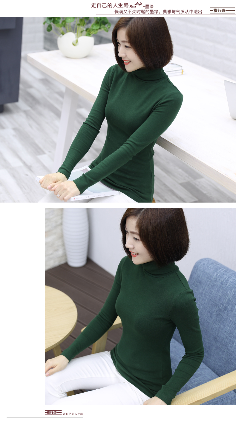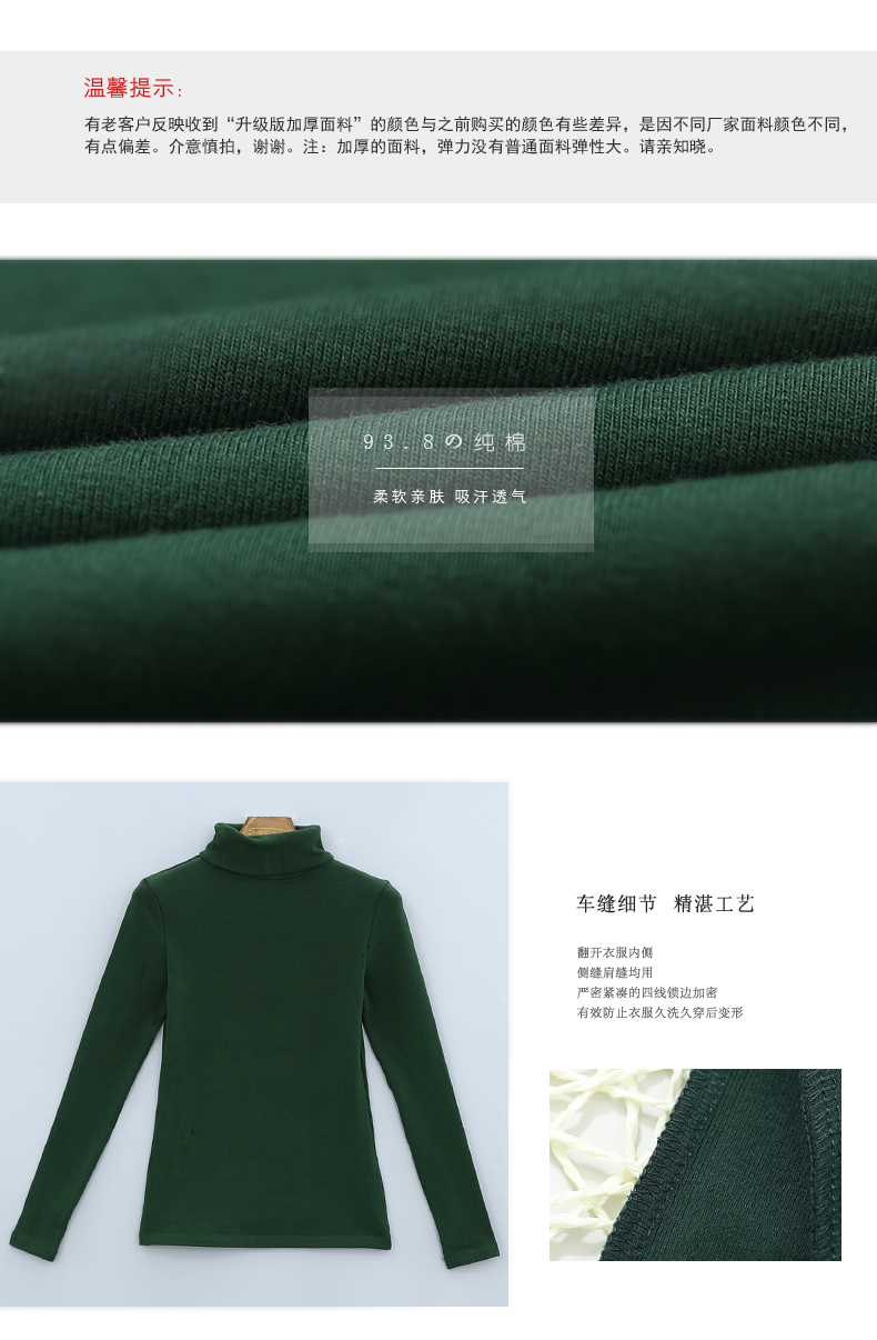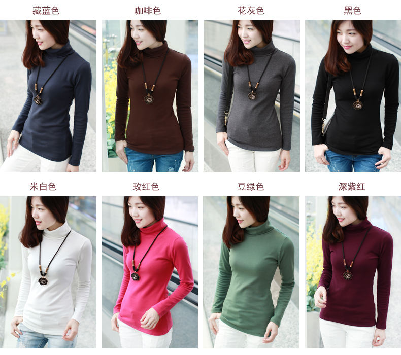 2019春秋裝新款大碼體恤韓版女裝純色高領上衣服厚打底衫長袖t恤1入