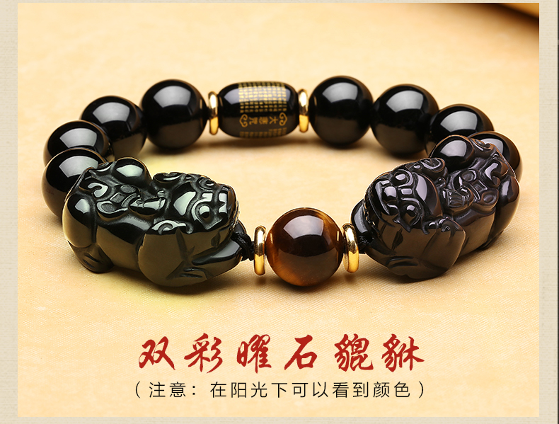 [2]開光天然黑曜石單雙貔貅手鏈男招財手串佛珠男士女金皮丘手飾首飾1入