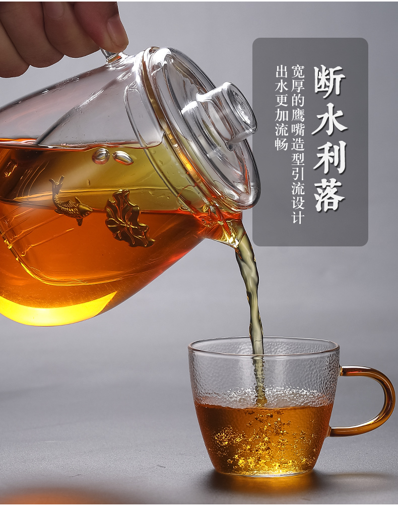 都挺好蘇明玉姚晨同款泡茶茶壺耐高溫玻璃過濾泡茶壺茶杯套裝茶具1入