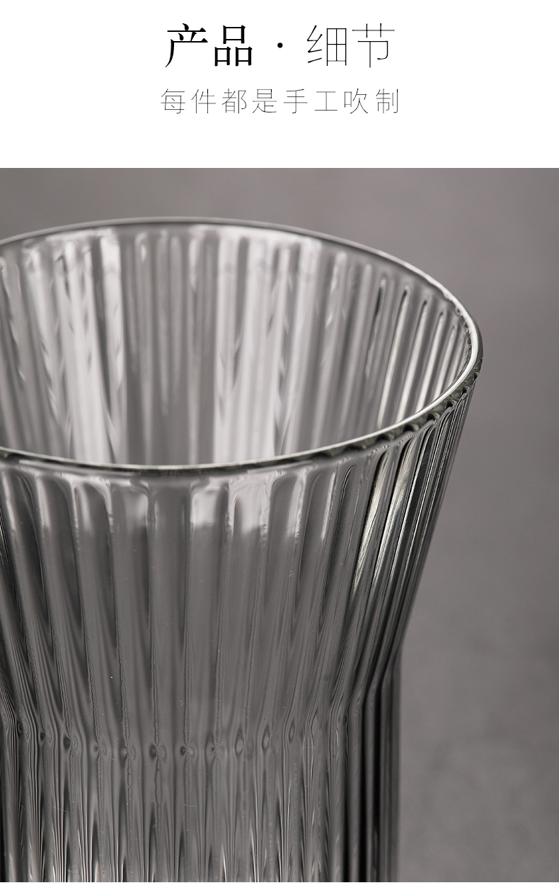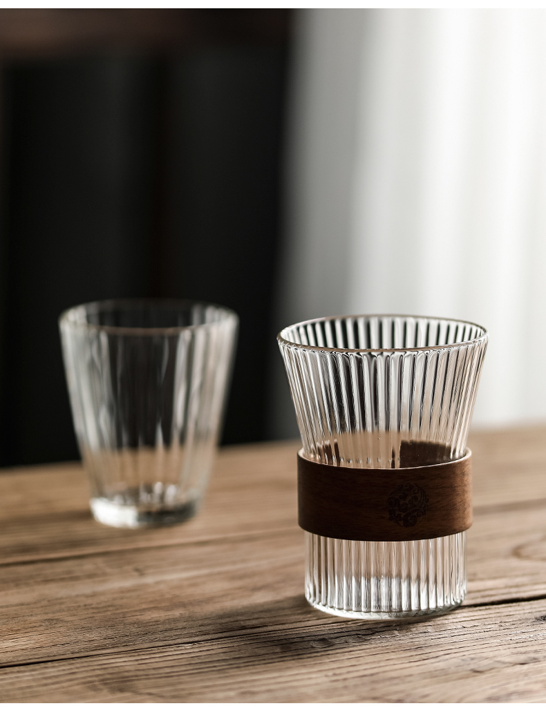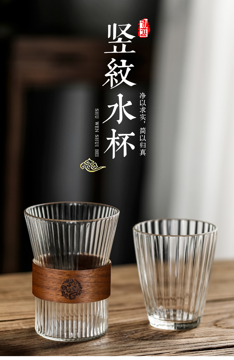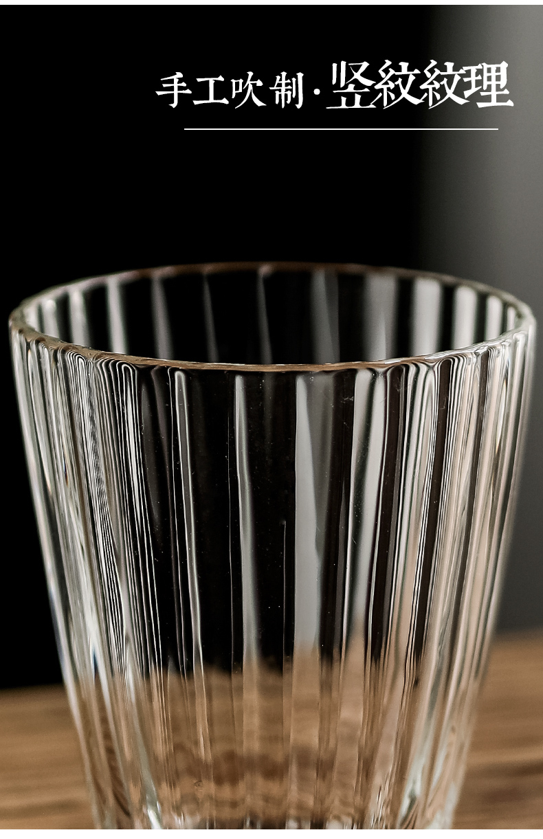 豎紋玻璃杯敞口歐式簡約ins風個性玻璃水杯家用耐熱防燙杯子茶杯1入