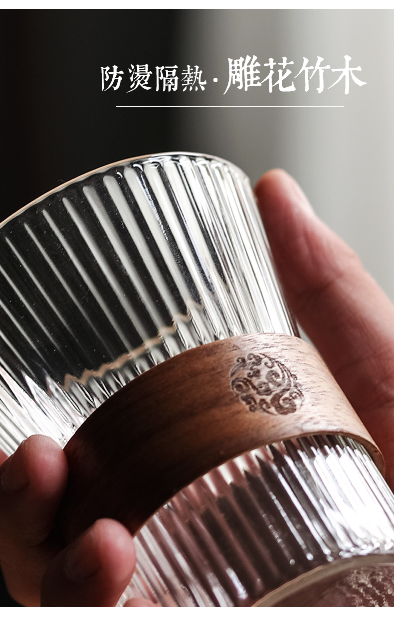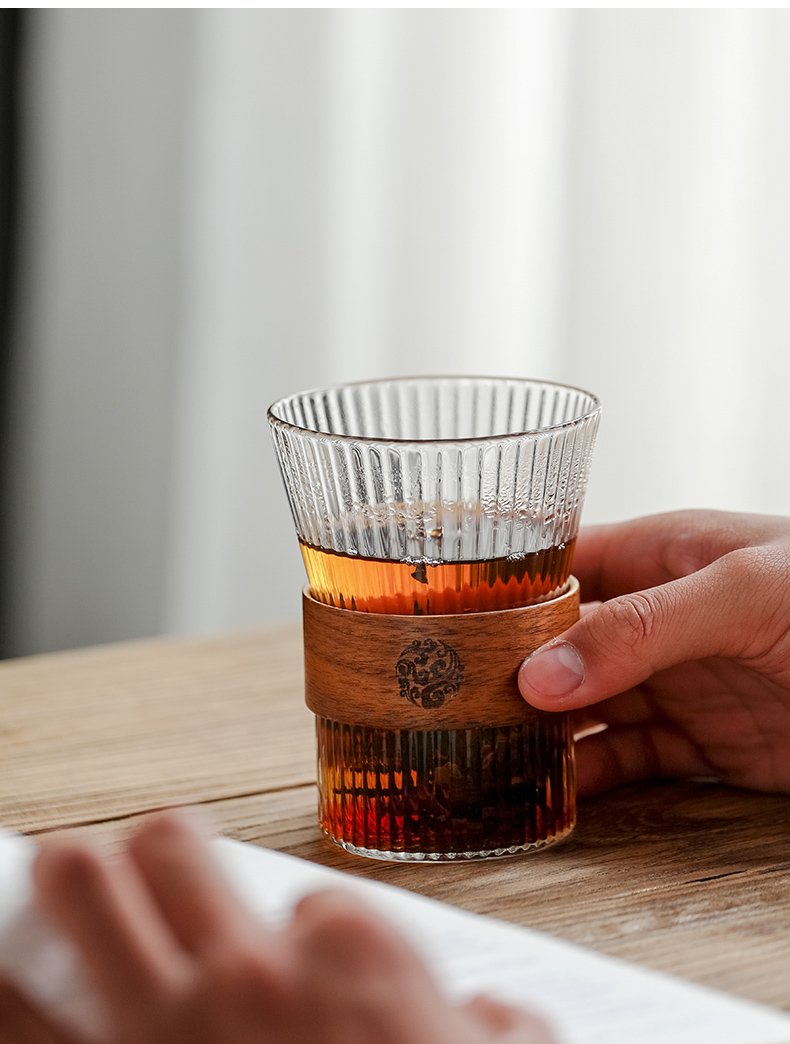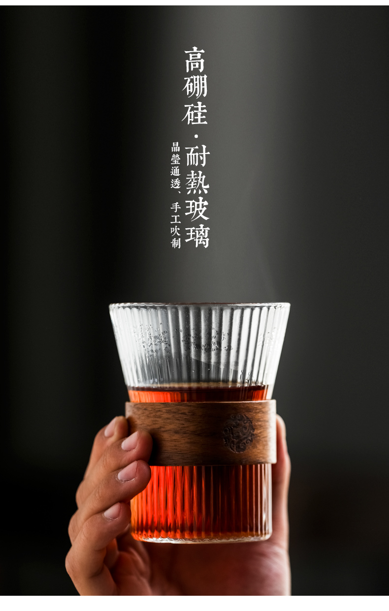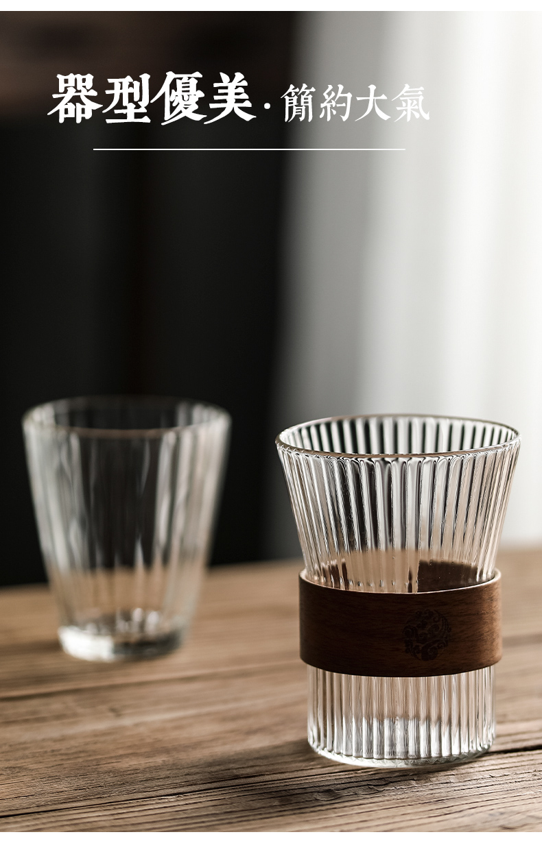 豎紋玻璃杯敞口歐式簡約ins風個性玻璃水杯家用耐熱防燙杯子茶杯1入