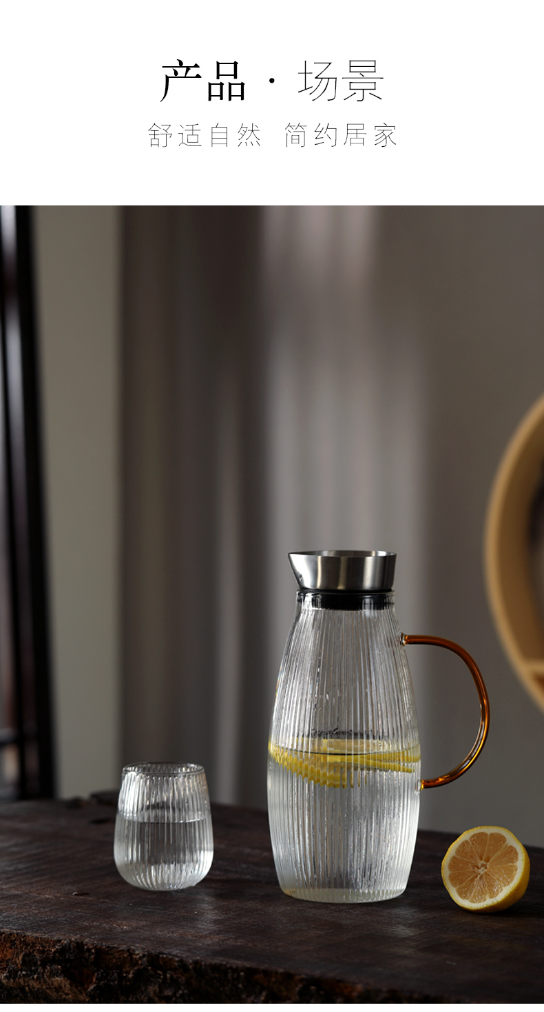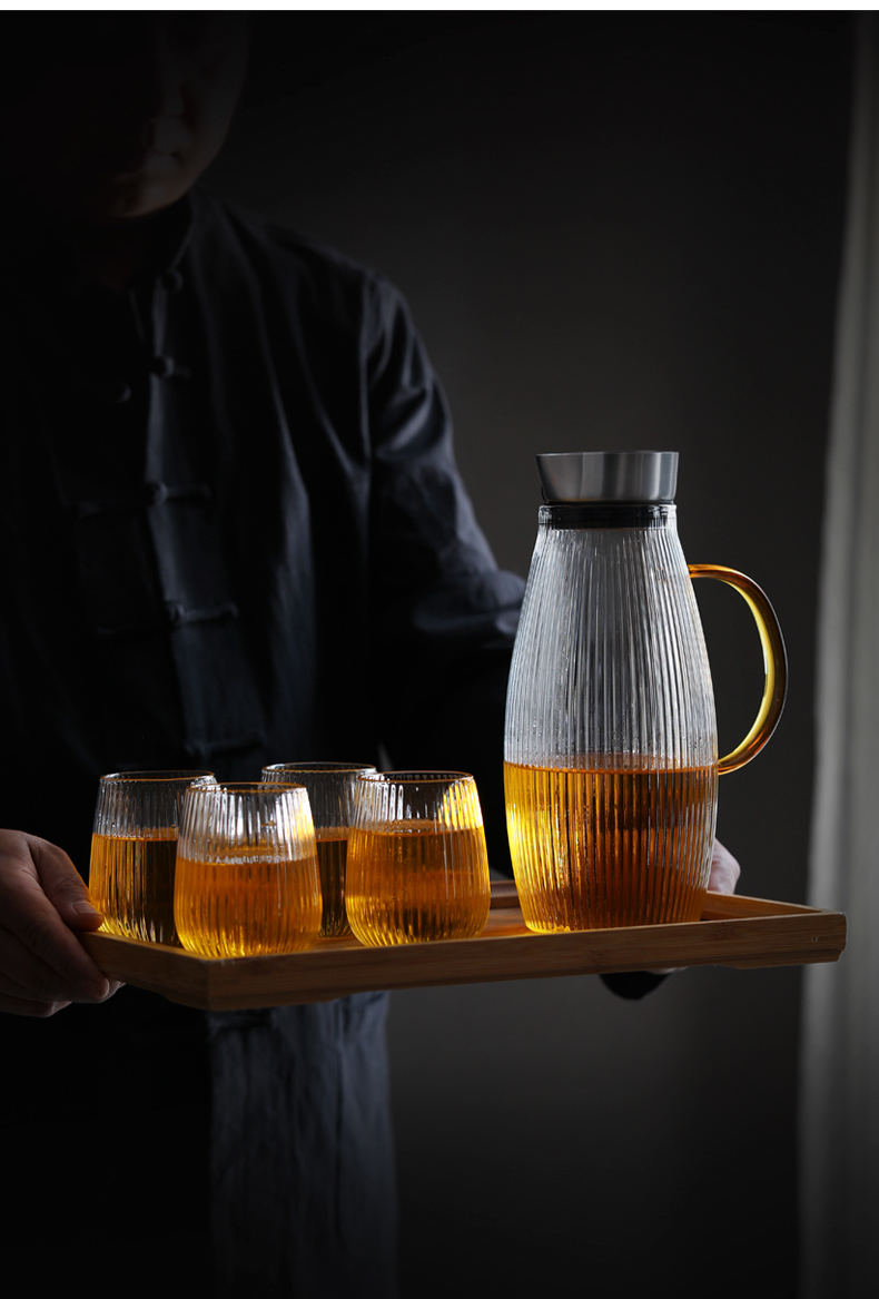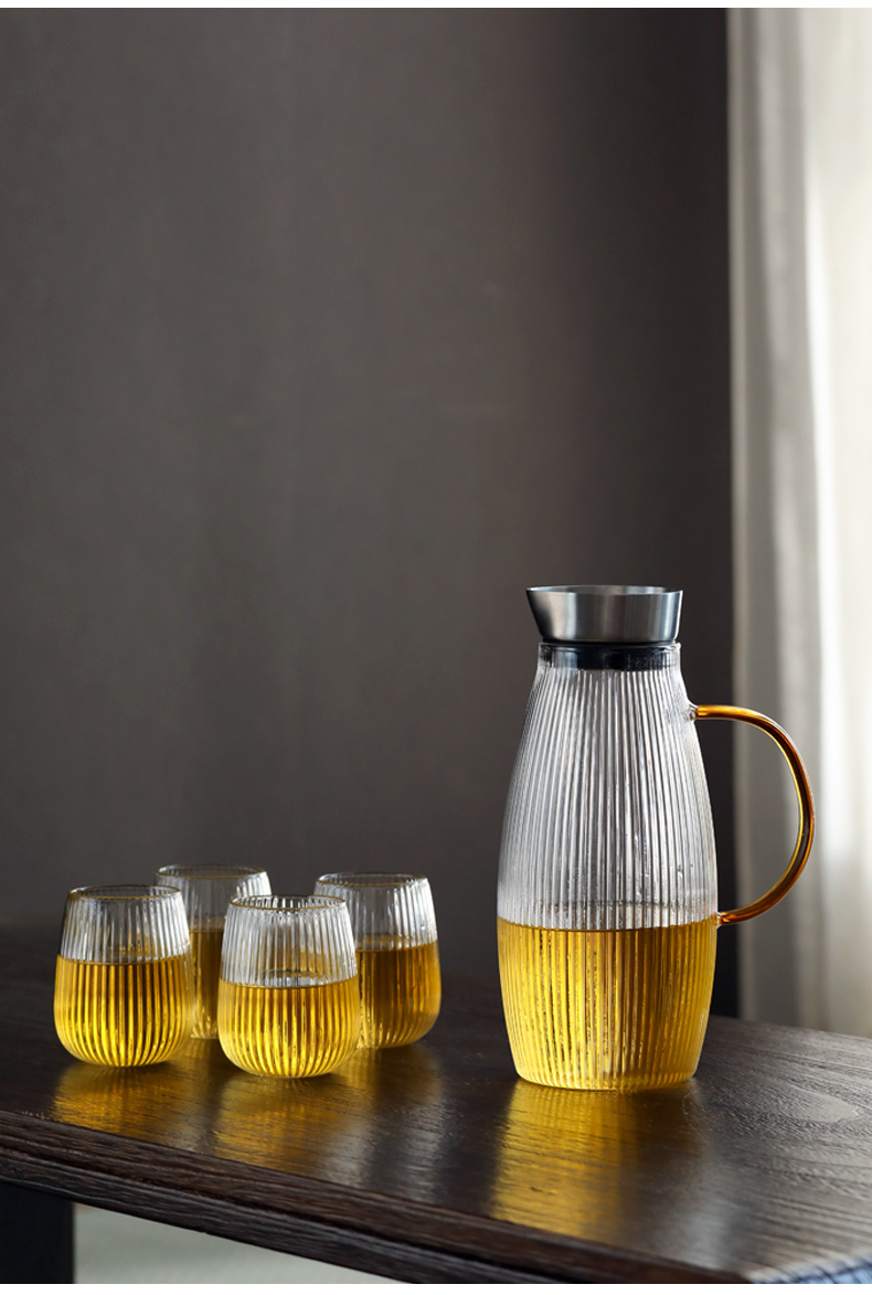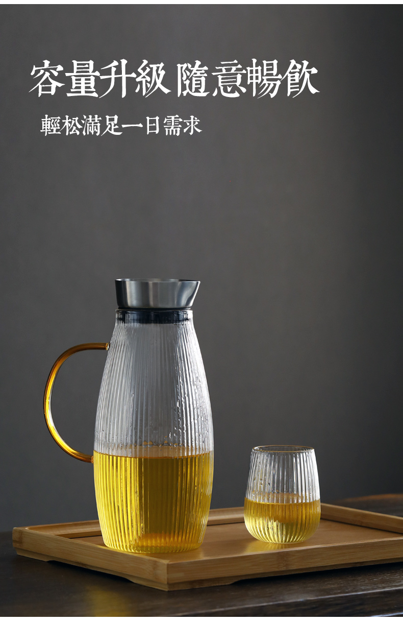 豎紋玻璃冷水壺套裝茶壺耐高溫防爆涼白開玻璃壺家用大容量涼水壺1入