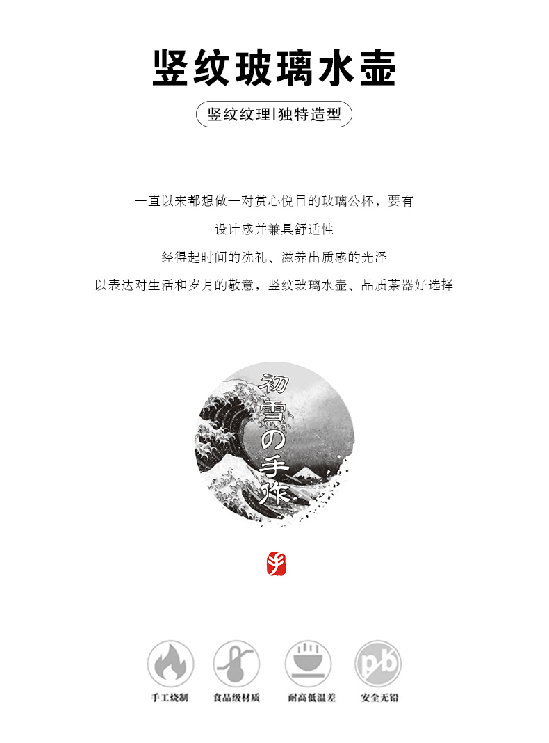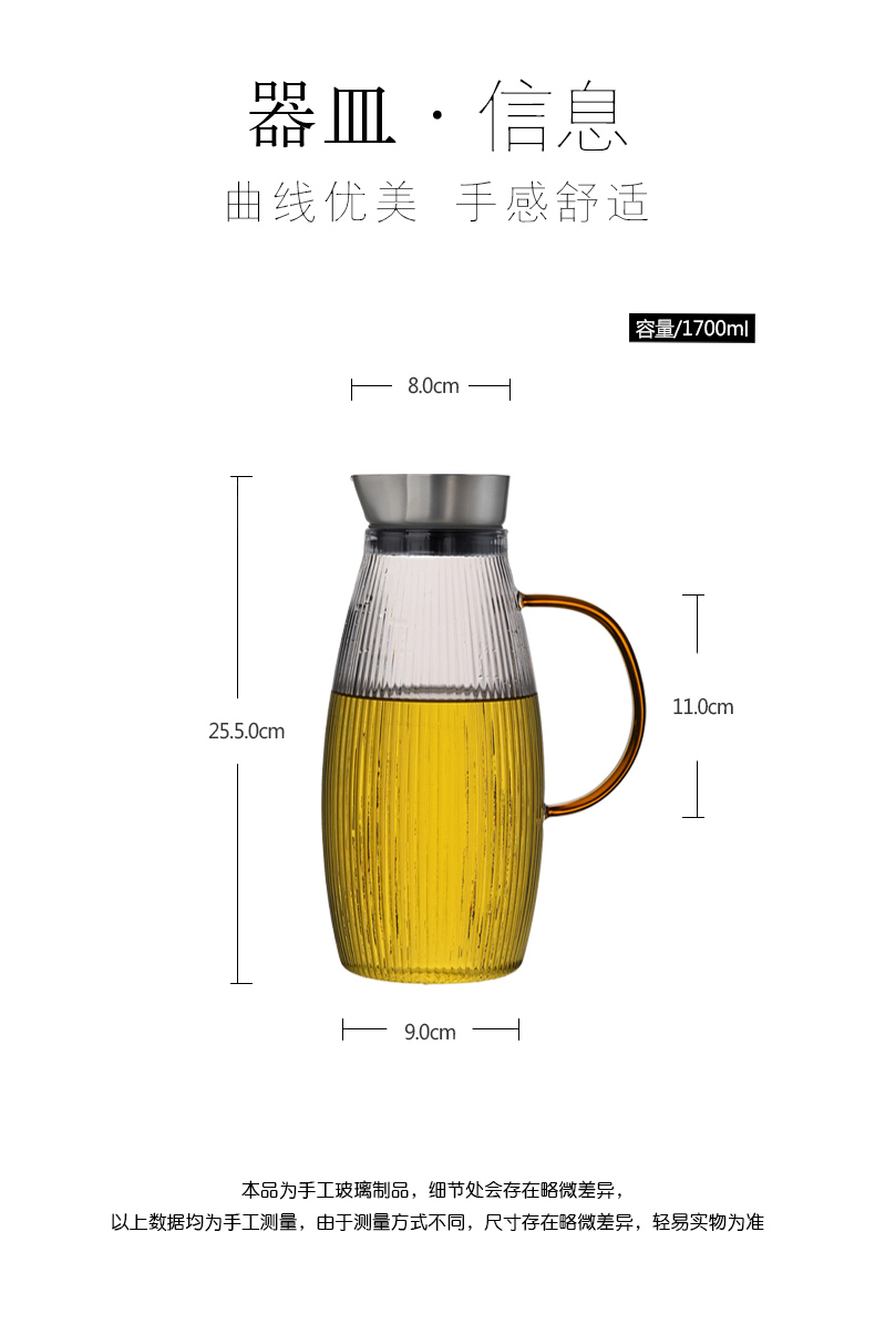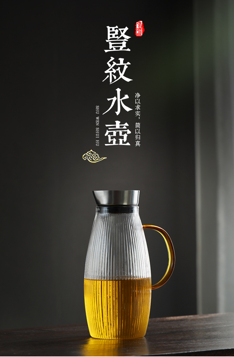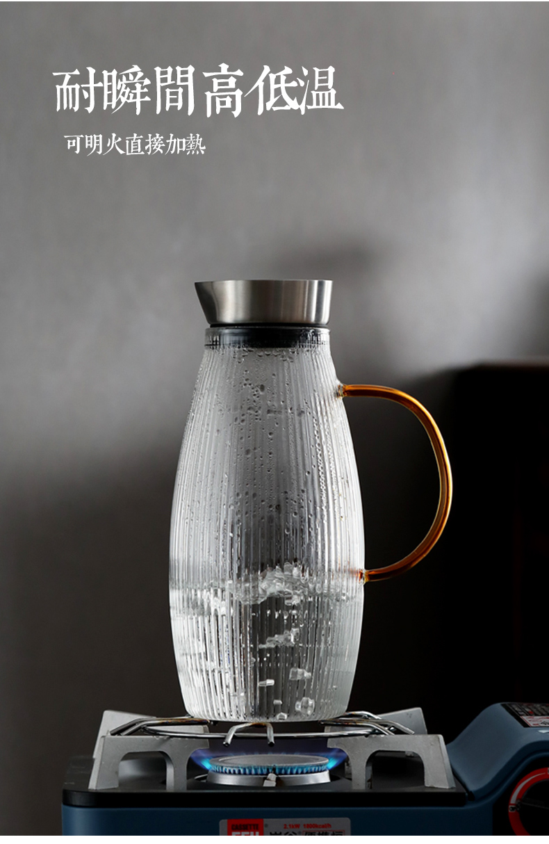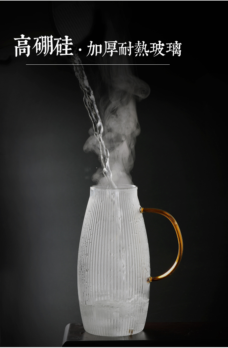 豎紋玻璃冷水壺套裝茶壺耐高溫防爆涼白開玻璃壺家用大容量涼水壺1入