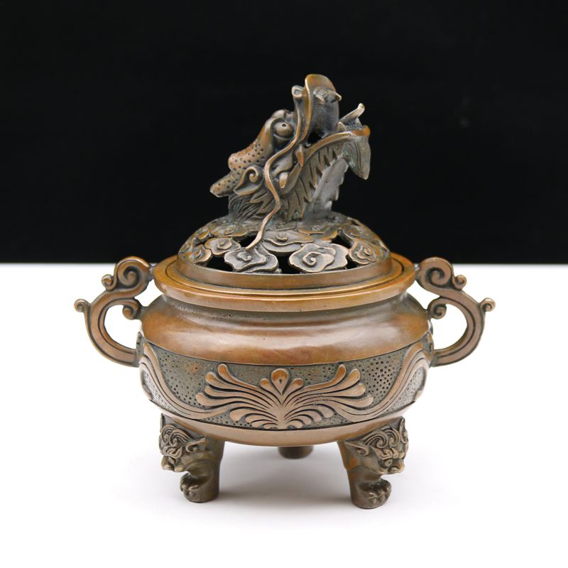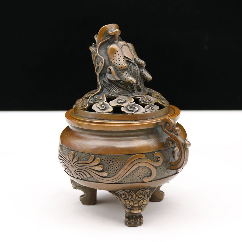 商品名稱:銅香爐純銅薰香爐蓋檀香粉盤香沉香銅爐買香爐送銅葫蘆香托一個
