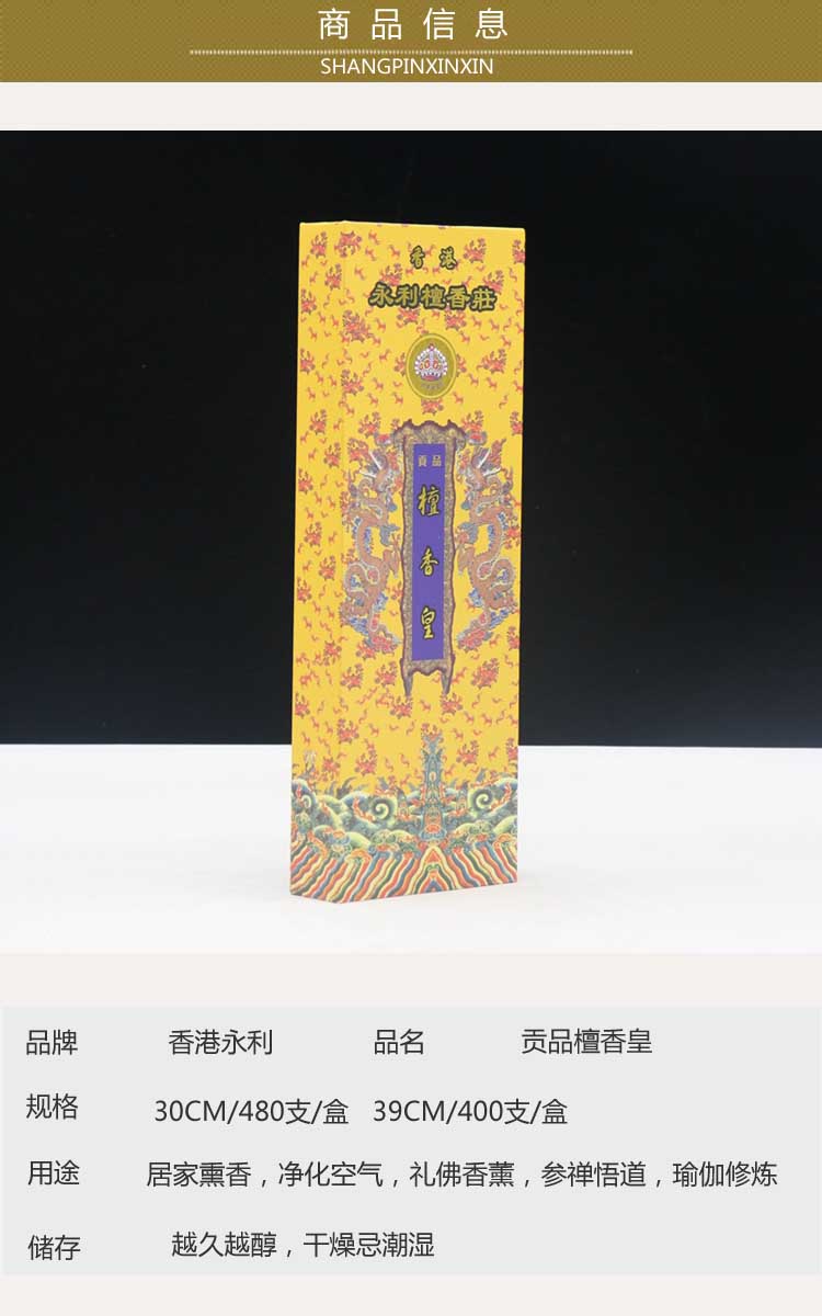 香港永利8寸貢品檀香皇 熏香天然檀香供佛香線香竹簽香香薰立香1入