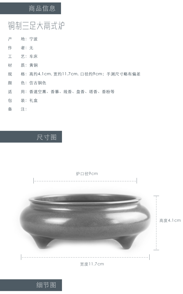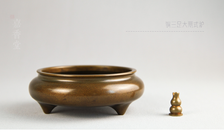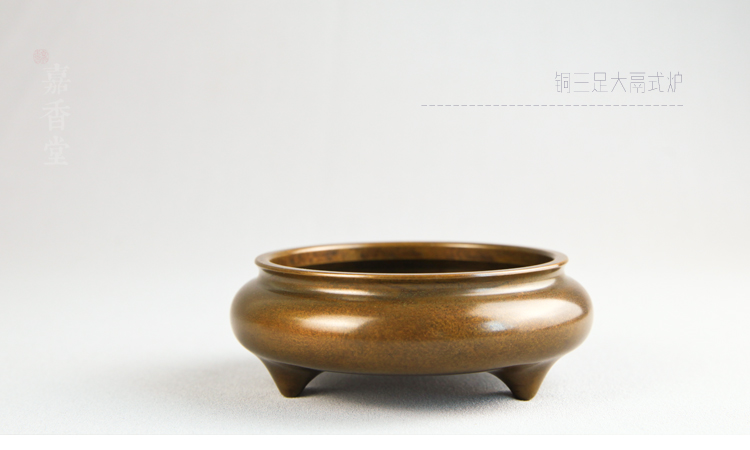 嘉香堂 純銅香爐 大號供奉家用仿古鬲式爐沉檀香線香盤香熏爐擺件1入