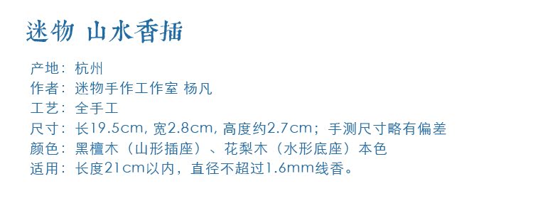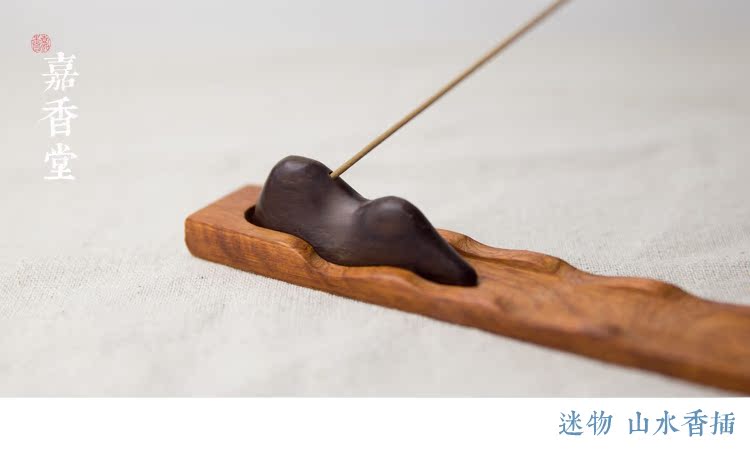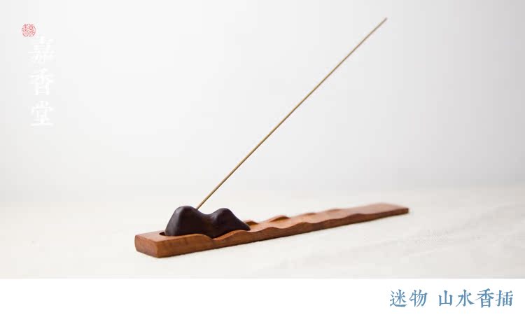 迷物手作 手工黑檀花梨木山水香插 木質線香插香爐香托 沉檀香插1入