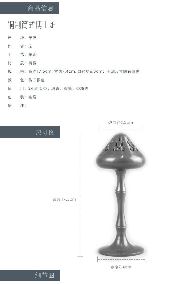 嘉香堂 純銅博山爐 簡式仿古盤香爐沉檀香線香熏爐琴爐家用擺件1入