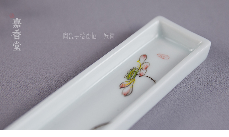 陶瓷香插香爐線香臥香爐 荷花線香插香座香托香架 熏香爐手繪1入