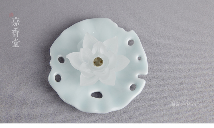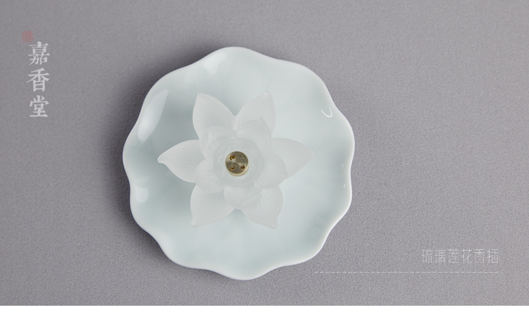 古法琉璃蓮花香插 線香插香座香爐家居擺件陶瓷香盤杯墊多孔銅件1入