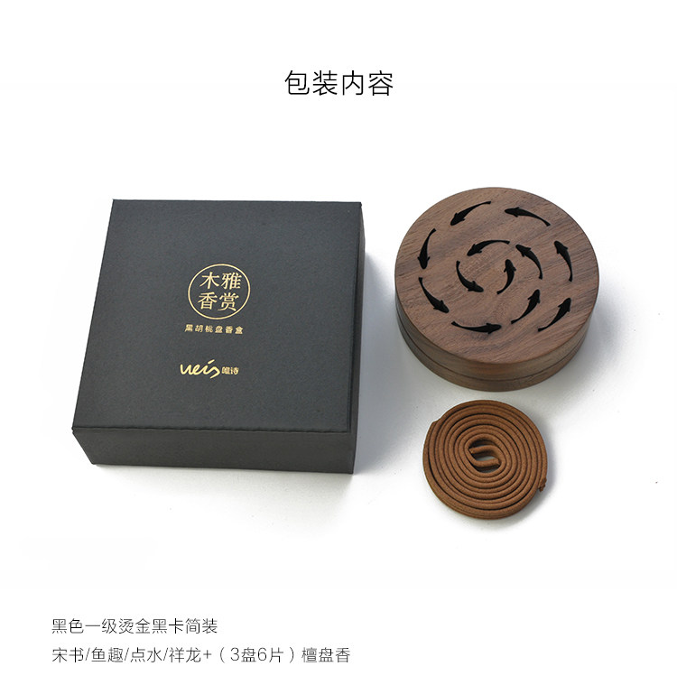 weis唯詩 黑胡桃木盤香盒 盤香爐檀香沉香仿古家用室內香熏爐禮盒1入