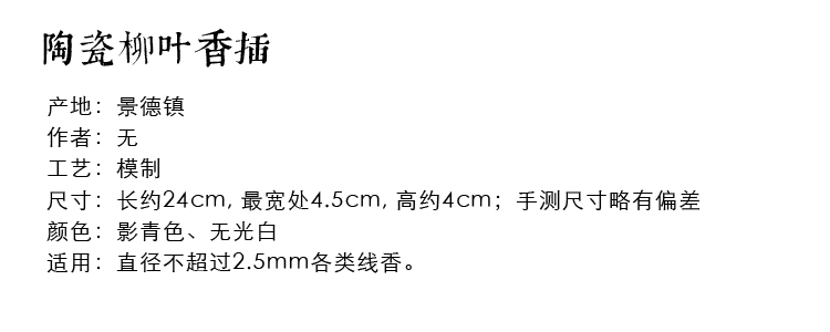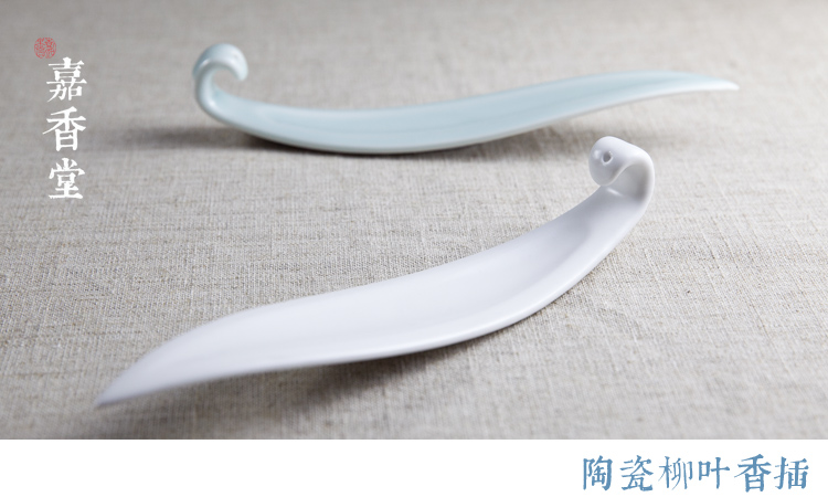陶瓷香插香爐 柳葉線香插香座 創意臥香爐香架香托熏香檀香沉香爐1入