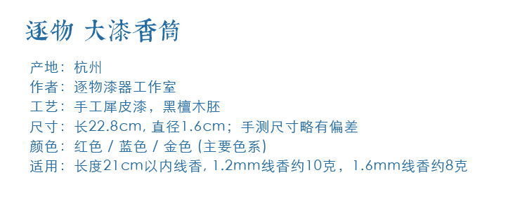 逐物漆器 大漆香筒 黑檀木胎底犀皮漆沉香檀香線香筒文玩收藏香道1入